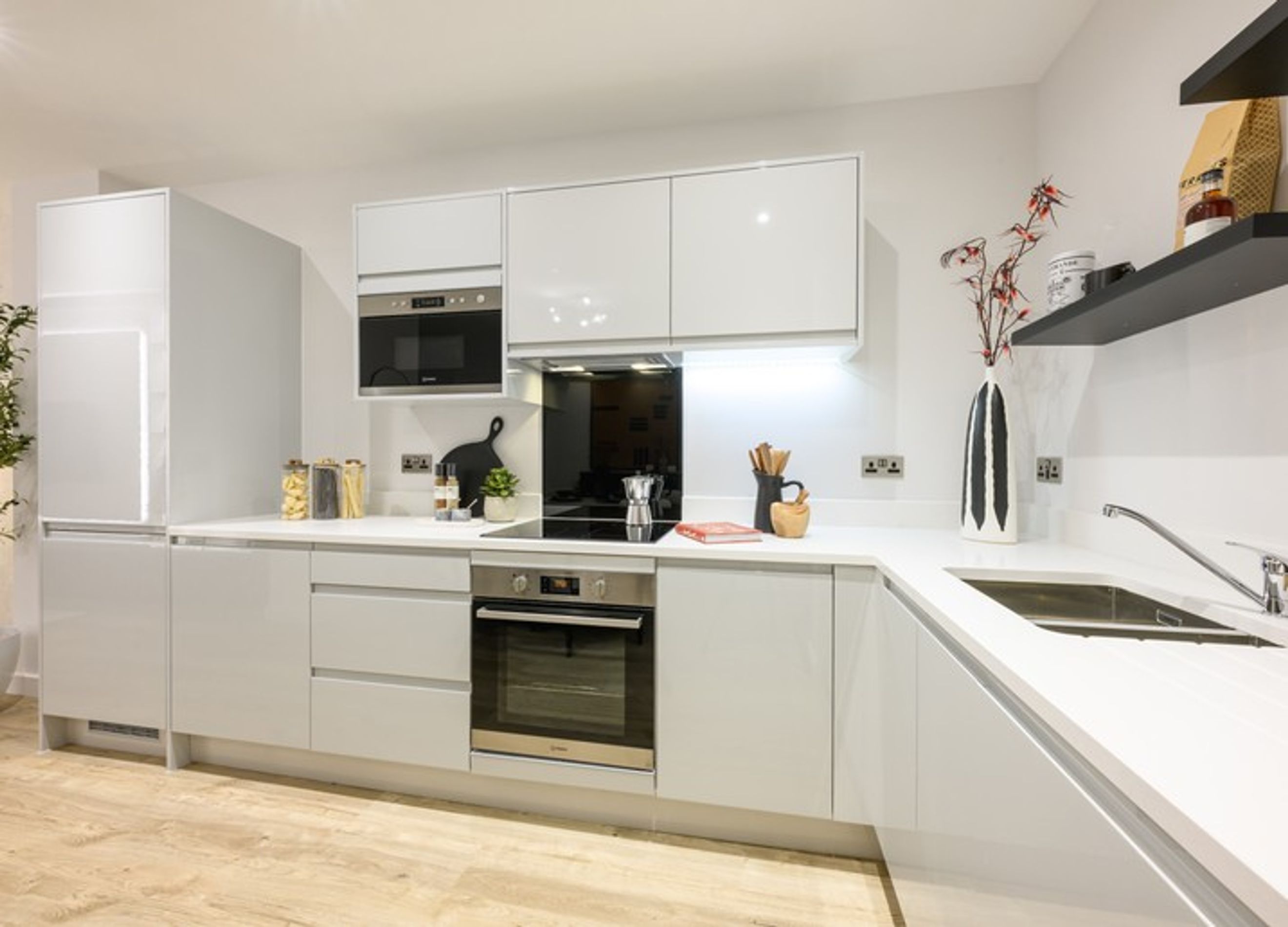 Introducing 'The Cherry' - A 756 sq ft two-bedroom apartment on the fifth floor at Southall Grove. It features a spacious open-plan living, kitchen, and dining area, with an L-shaped kitchen finished in Quartz 'Salt & Pepper' worktops and integrated appliances. Amtico Spacia 'Sun Bleached Oak' flooring runs throughout the main space with lots of natural light.