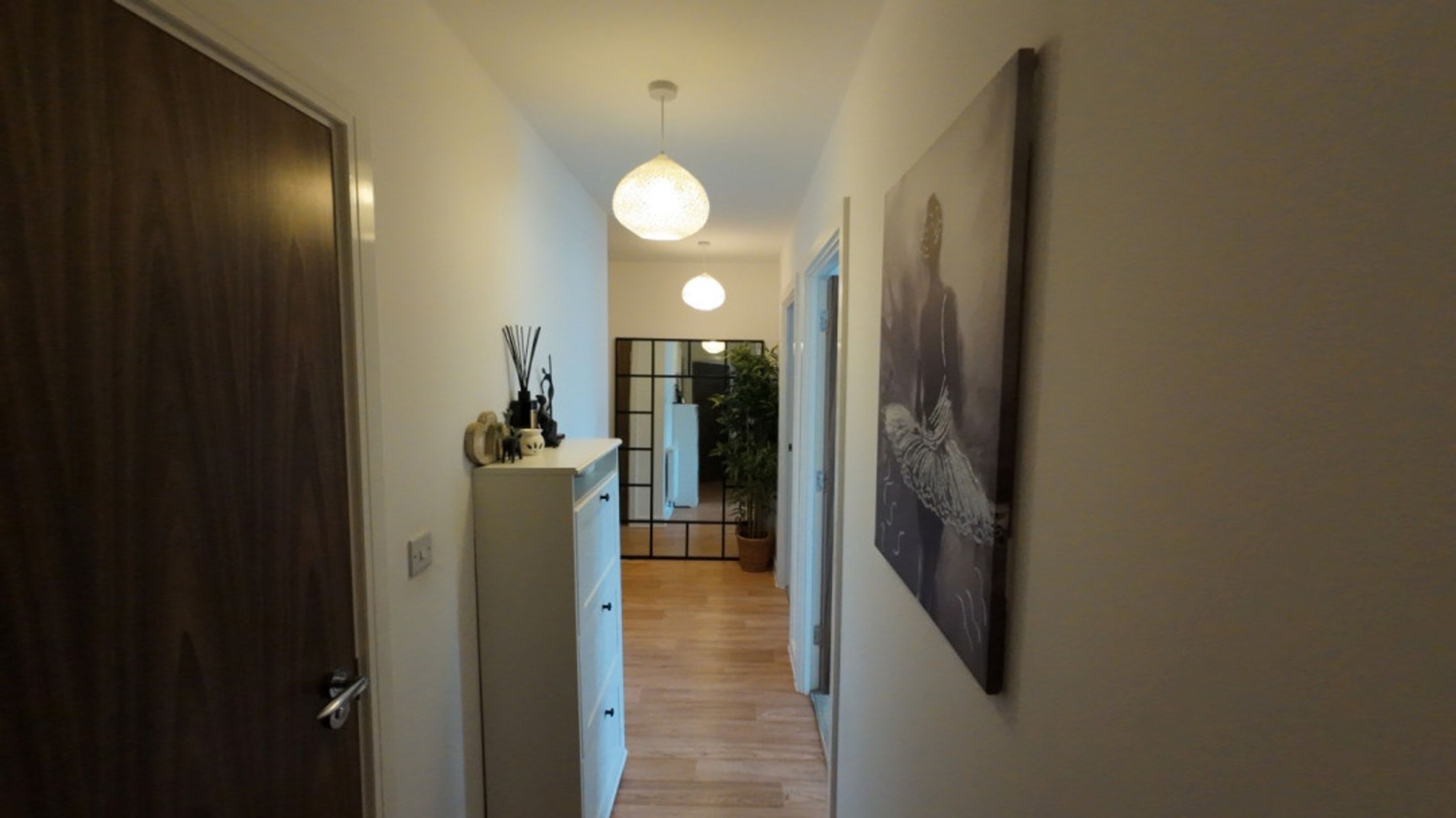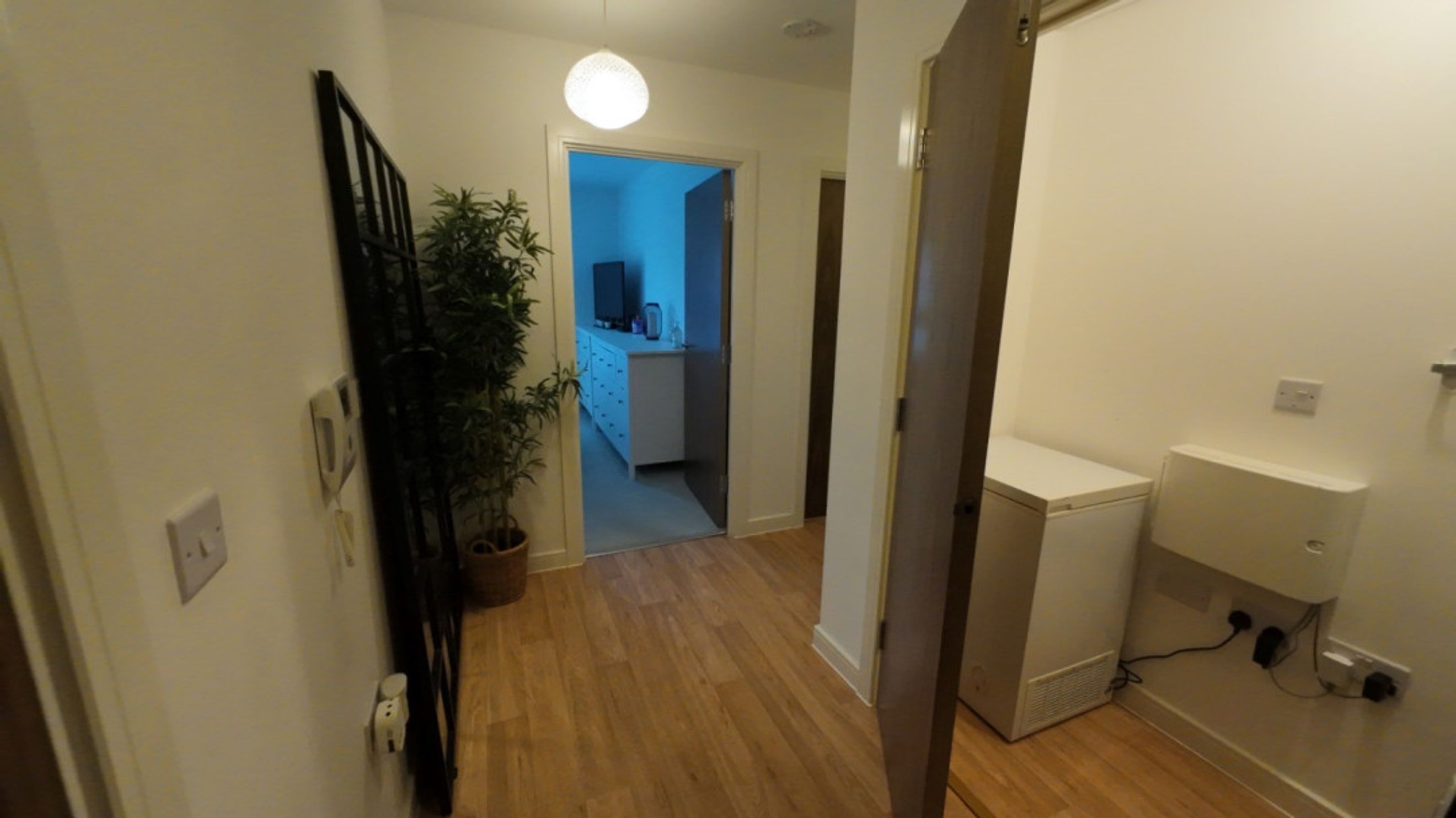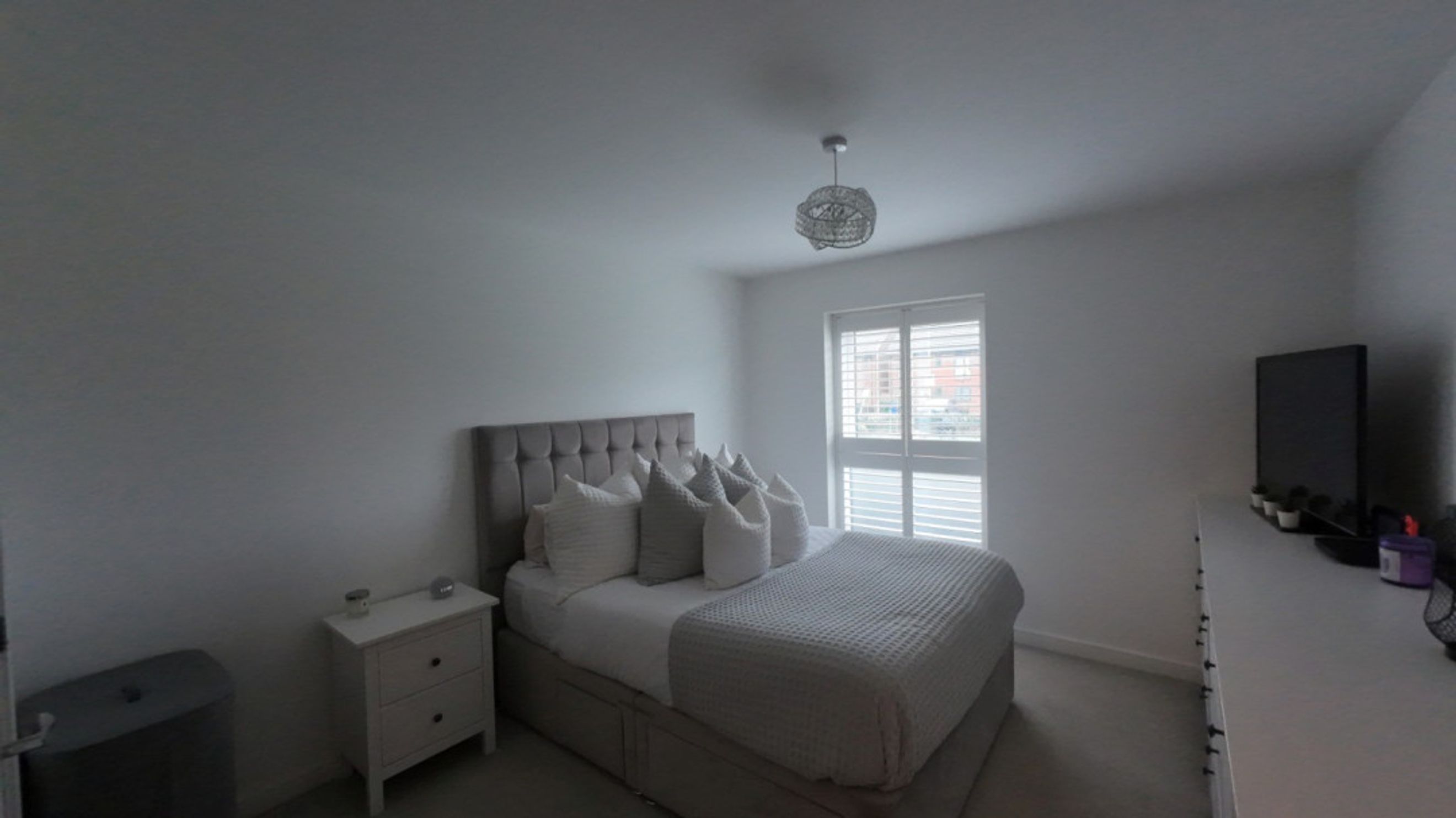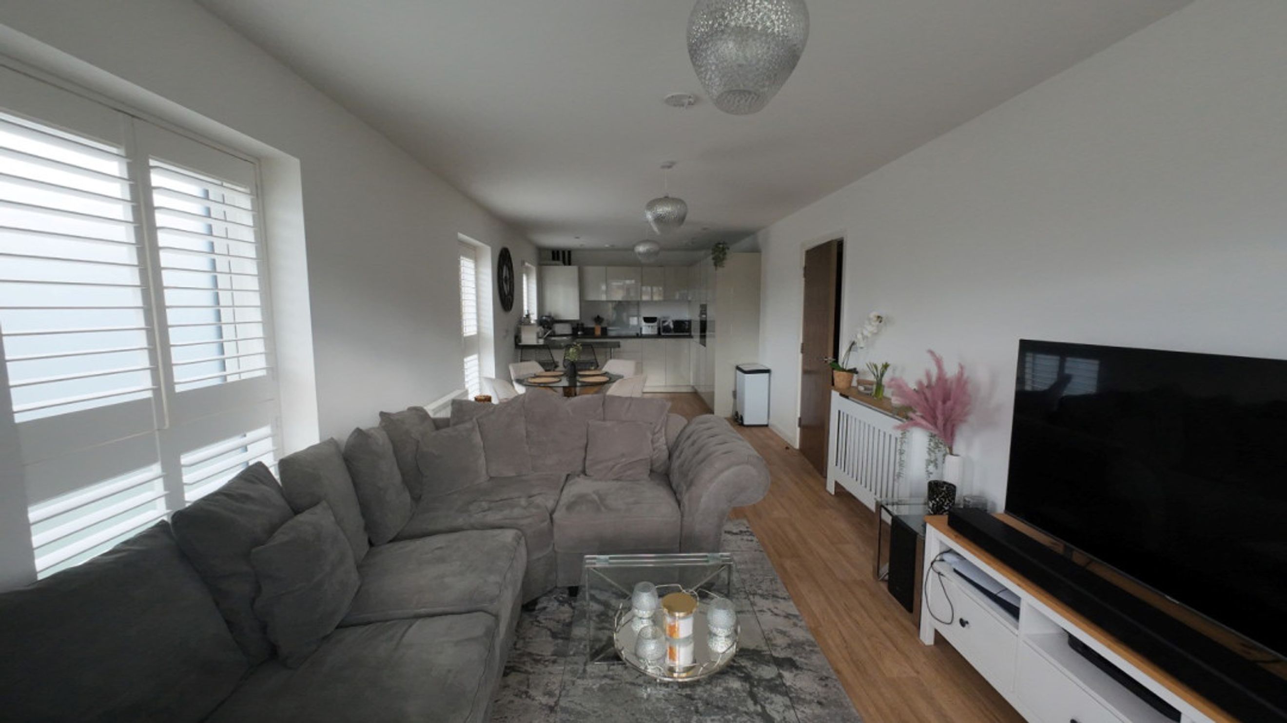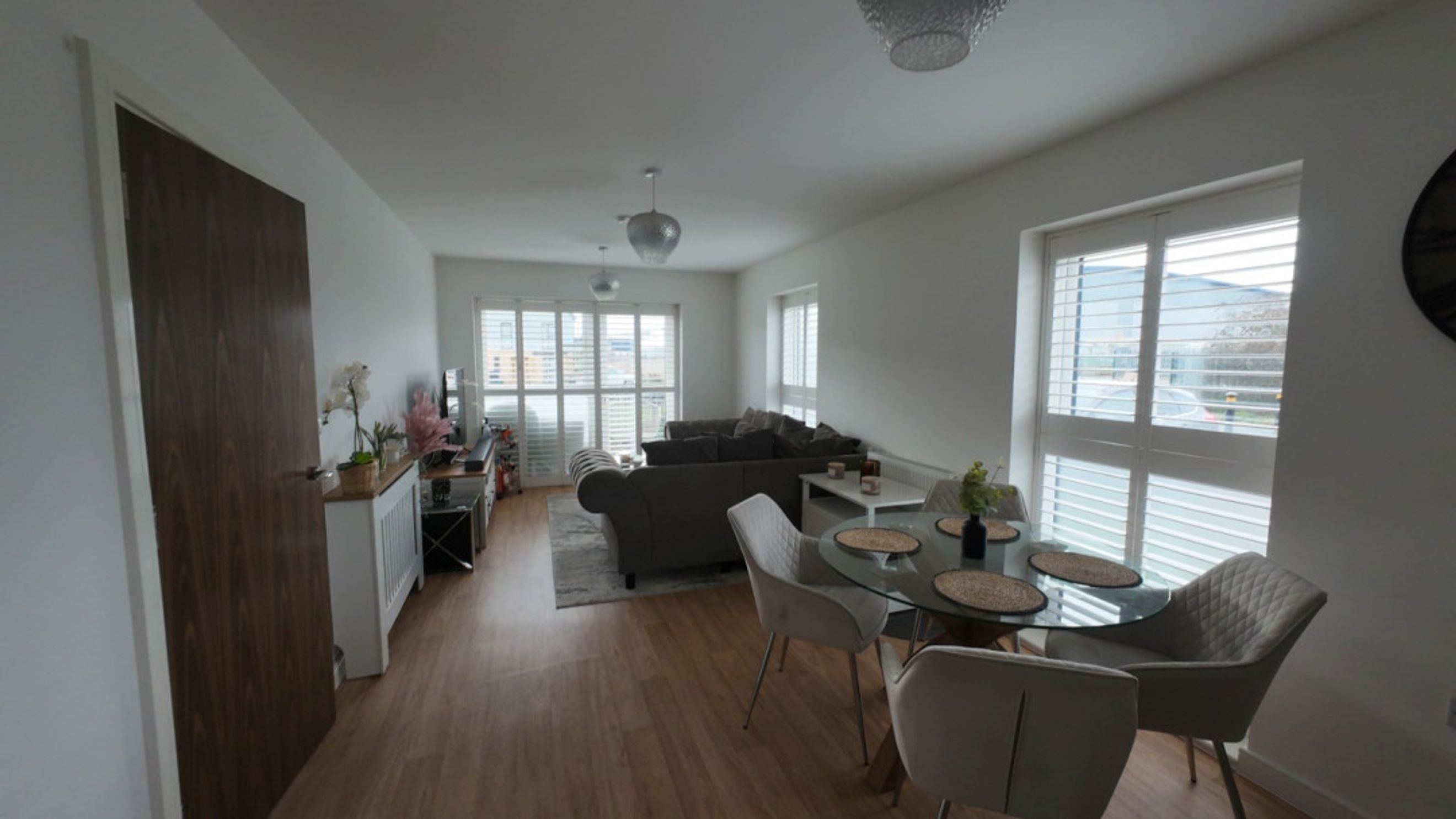 Large triple glazed windows fitted with shutters, television point and laminate flooring.