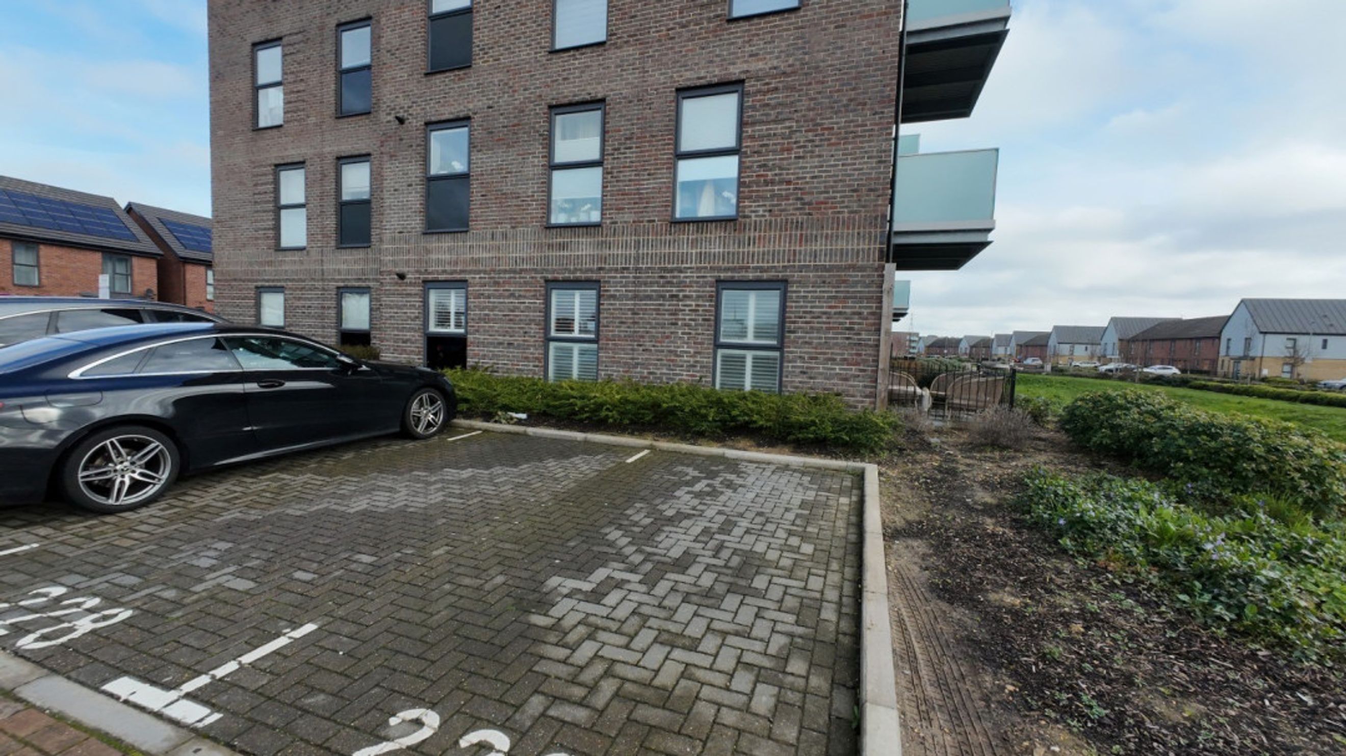 One allocated parking space, right next to balcony.