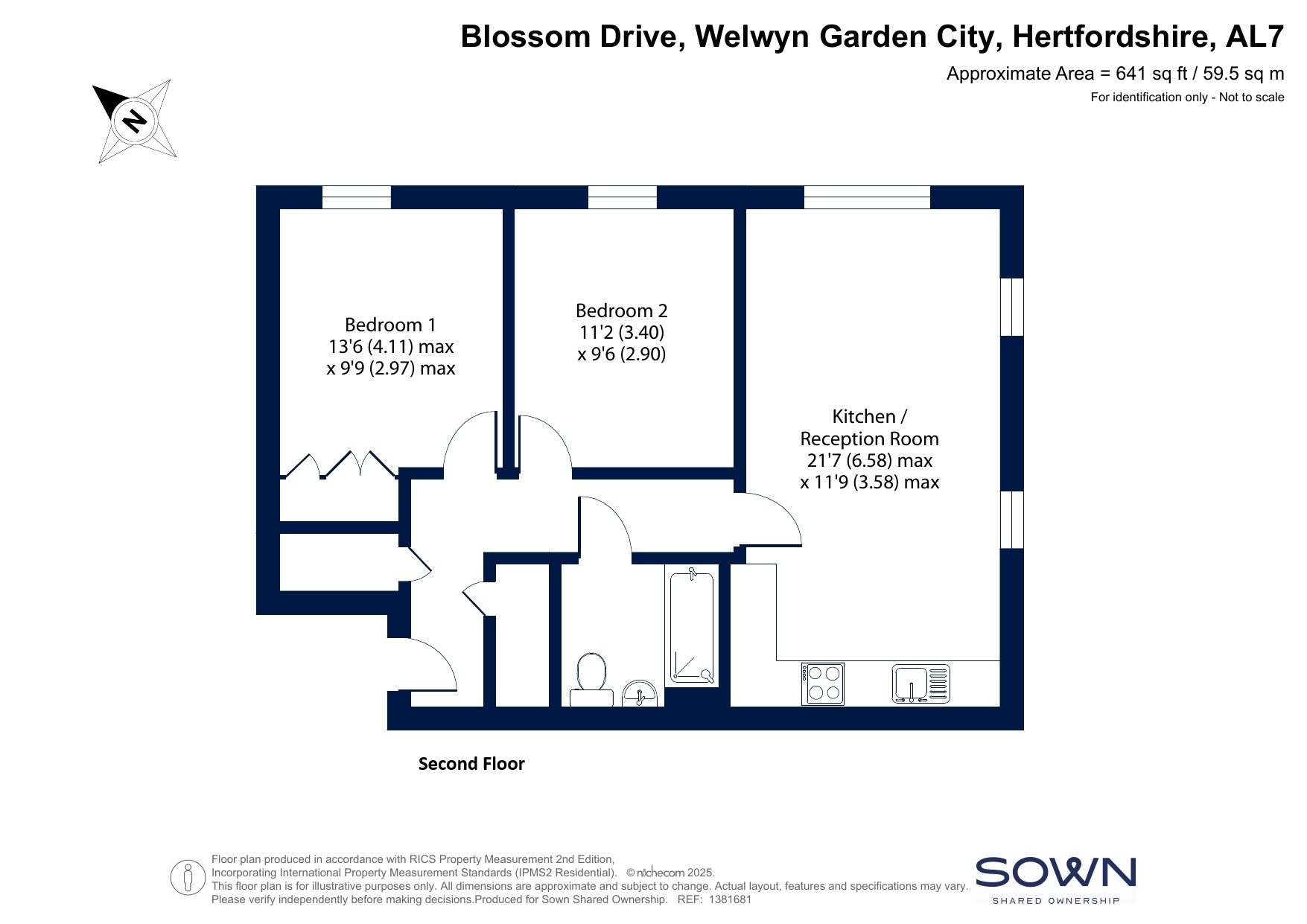 Conveniently located close to Welwyn Garden City Railway Station is this second floor apartment. The property is well presented throughout and provides bright and spacious accommodation. There is an entrance hall, two double bedrooms, a modern bathroom and an open plan kitchen/dining/living room. The property benefits from an allocated parking space and a long lease.