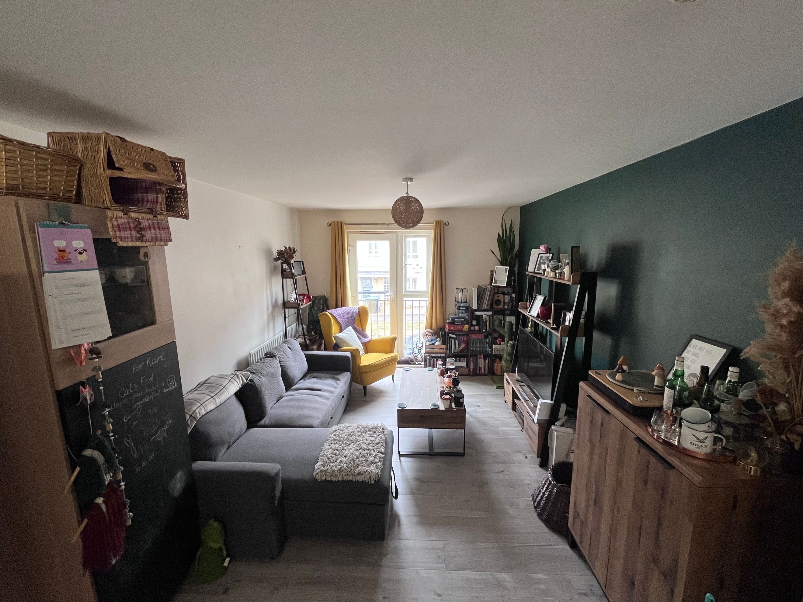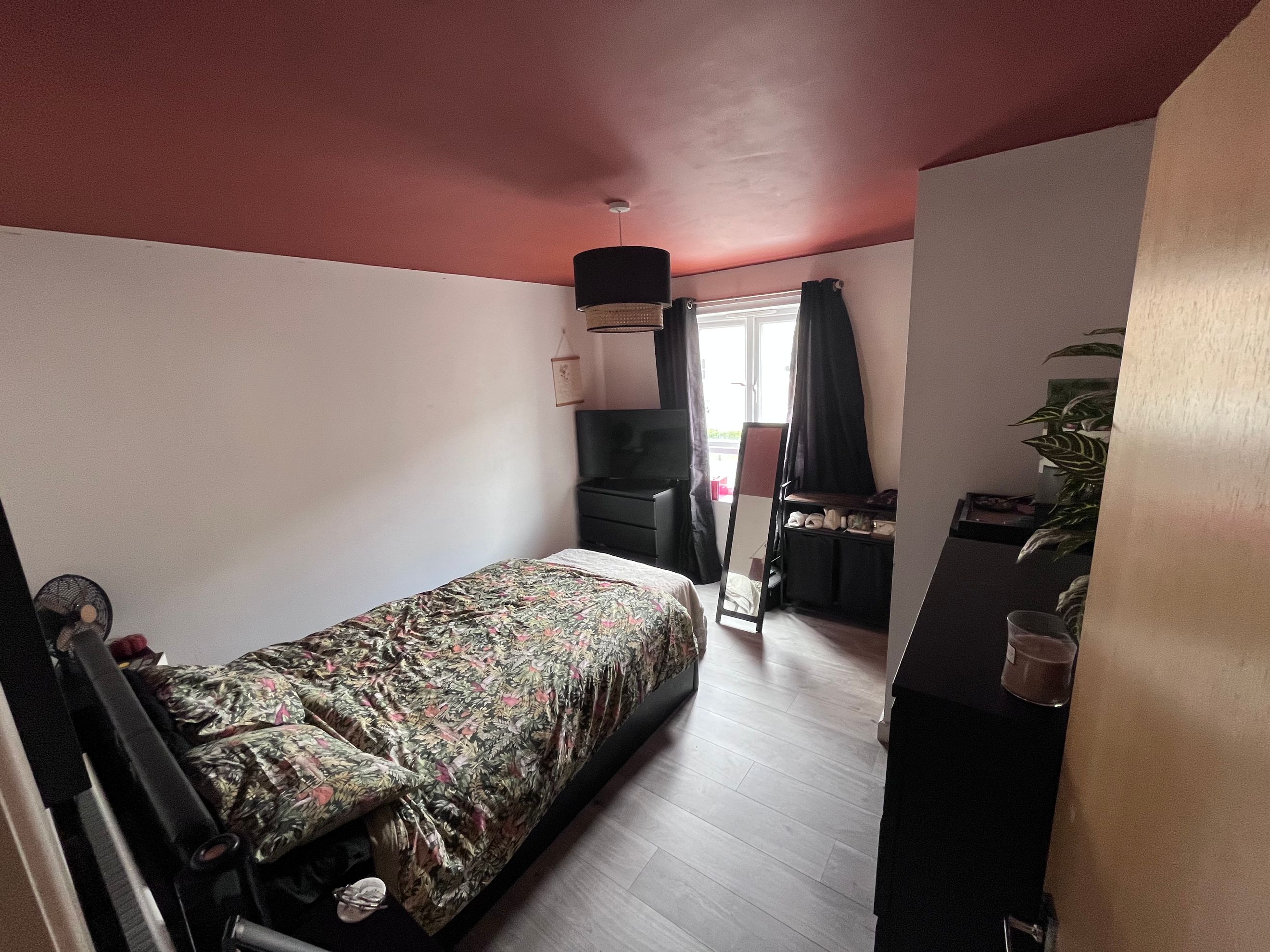 Inside, the apartment has a bright and airy feel, featuring open-plan living with space for both lounge and dining areas. The generous bedroom includes a built-in wardrobe, and the bathroom comes with a bath and overhead shower. Additional storage can be found in the hallway, and the property benefits from gas central heating throughout.