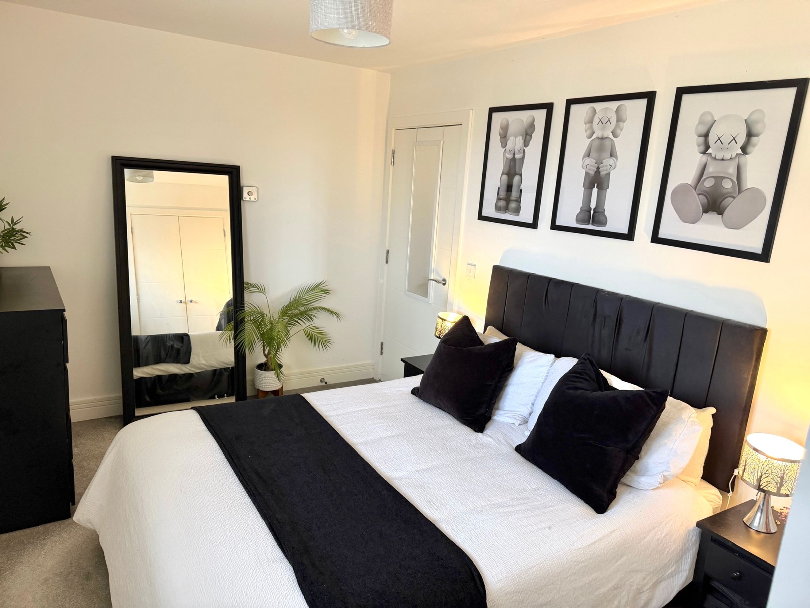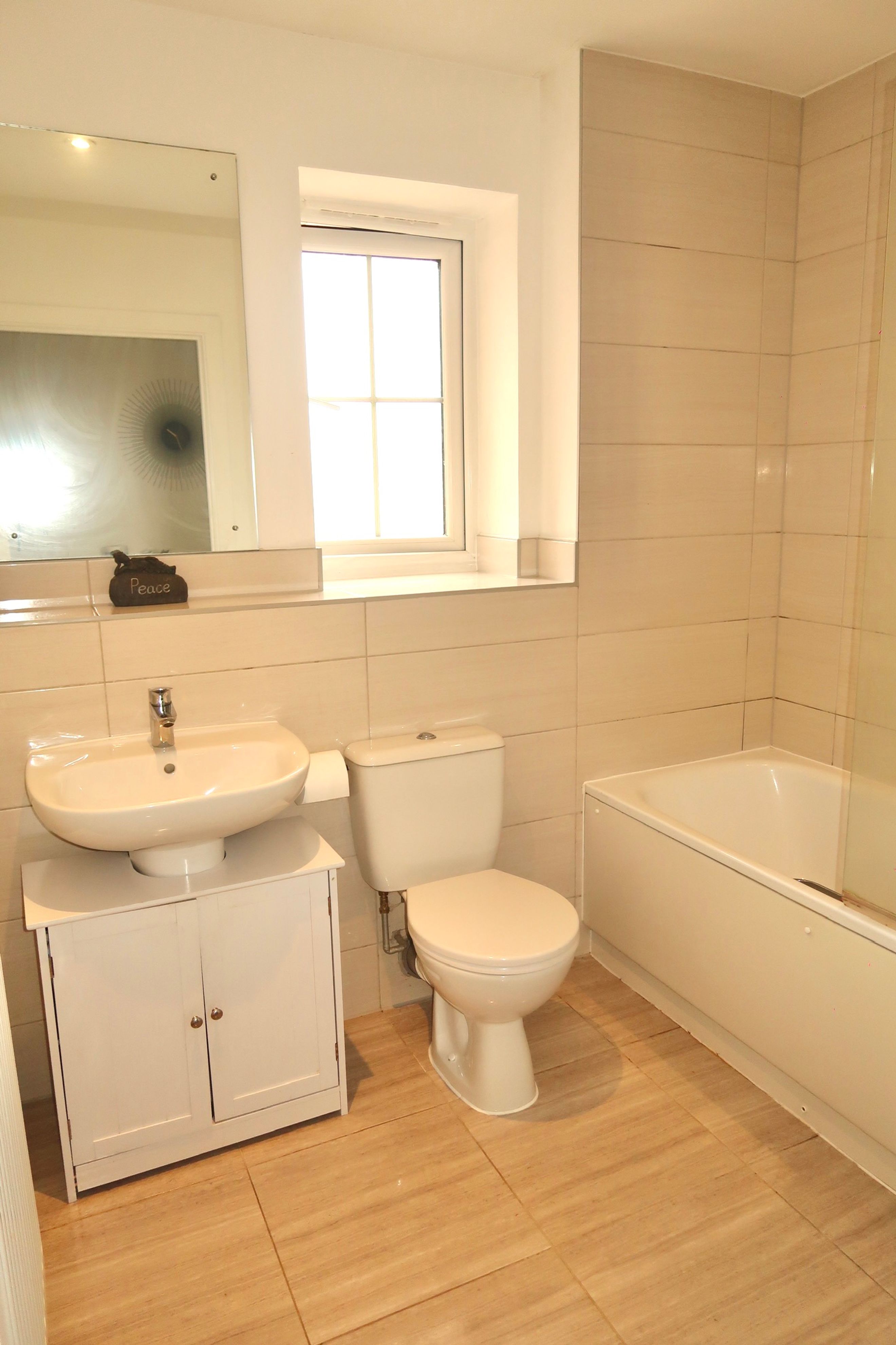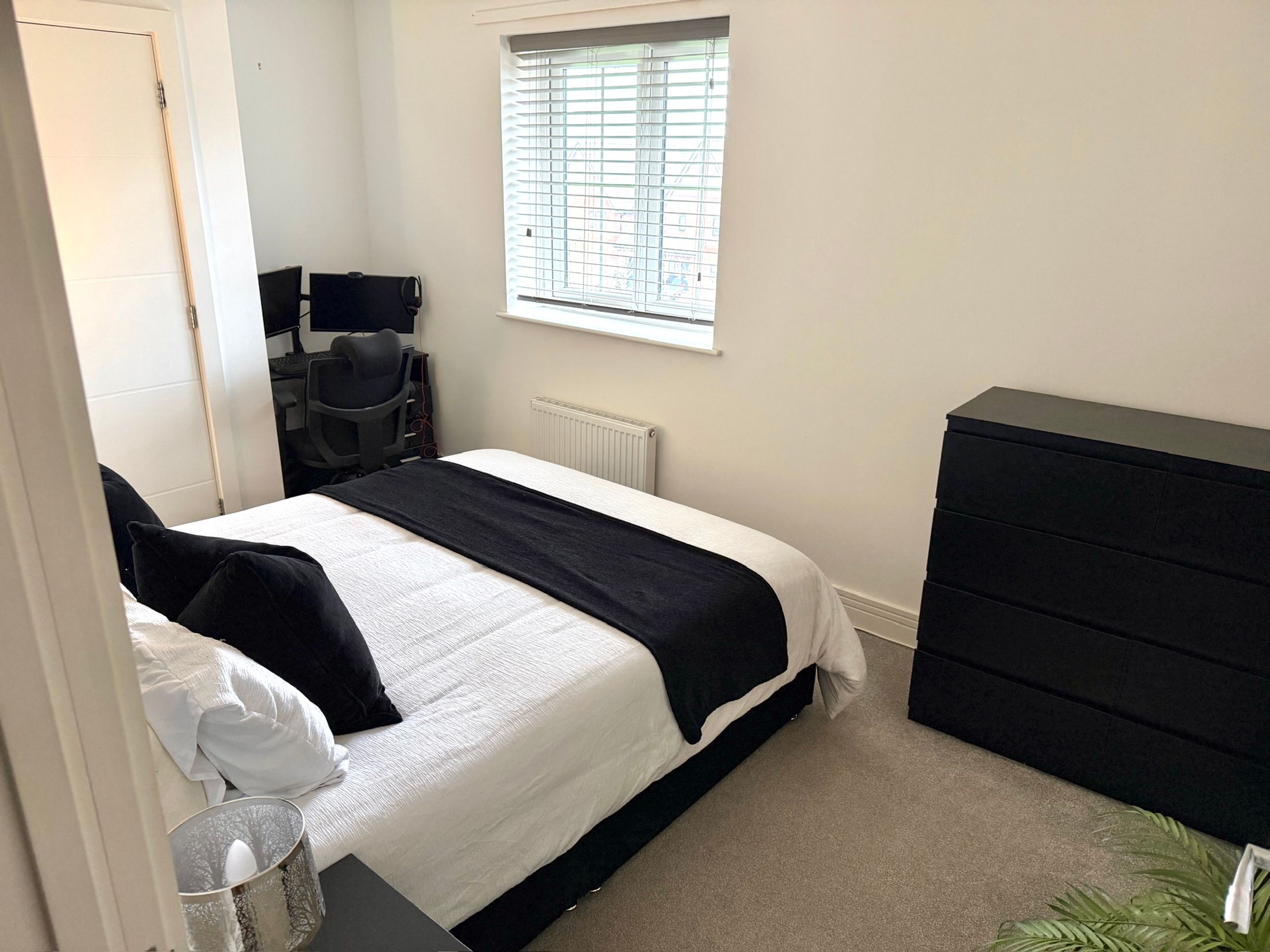 The bedroom includes a built‑in wardrobe, and there is an additional built‑in cupboard in the hallway. The bathroom is well presented, and the décor throughout is modern and neutral. The apartment comes with one allocated parking space, along with access to communal bin and bike stores.