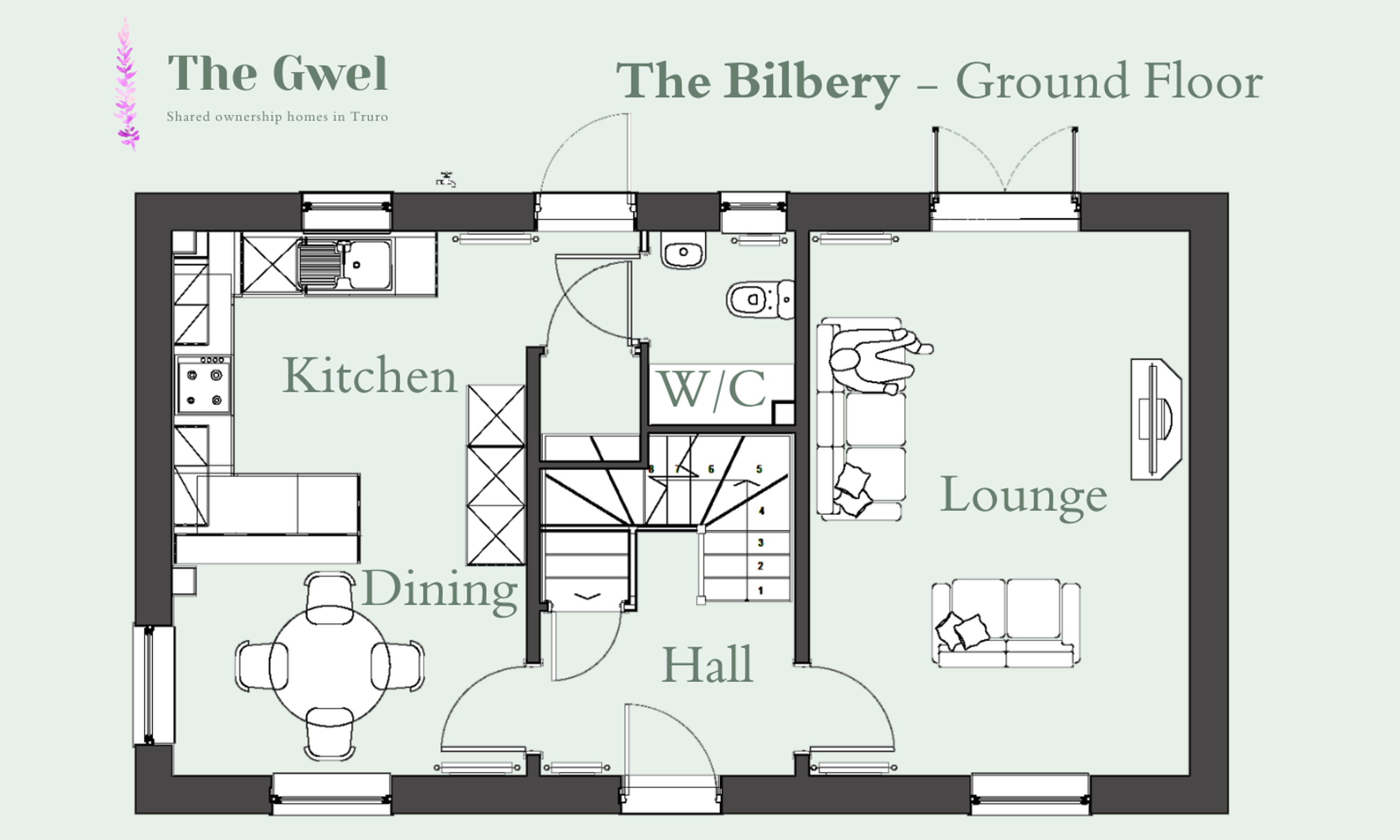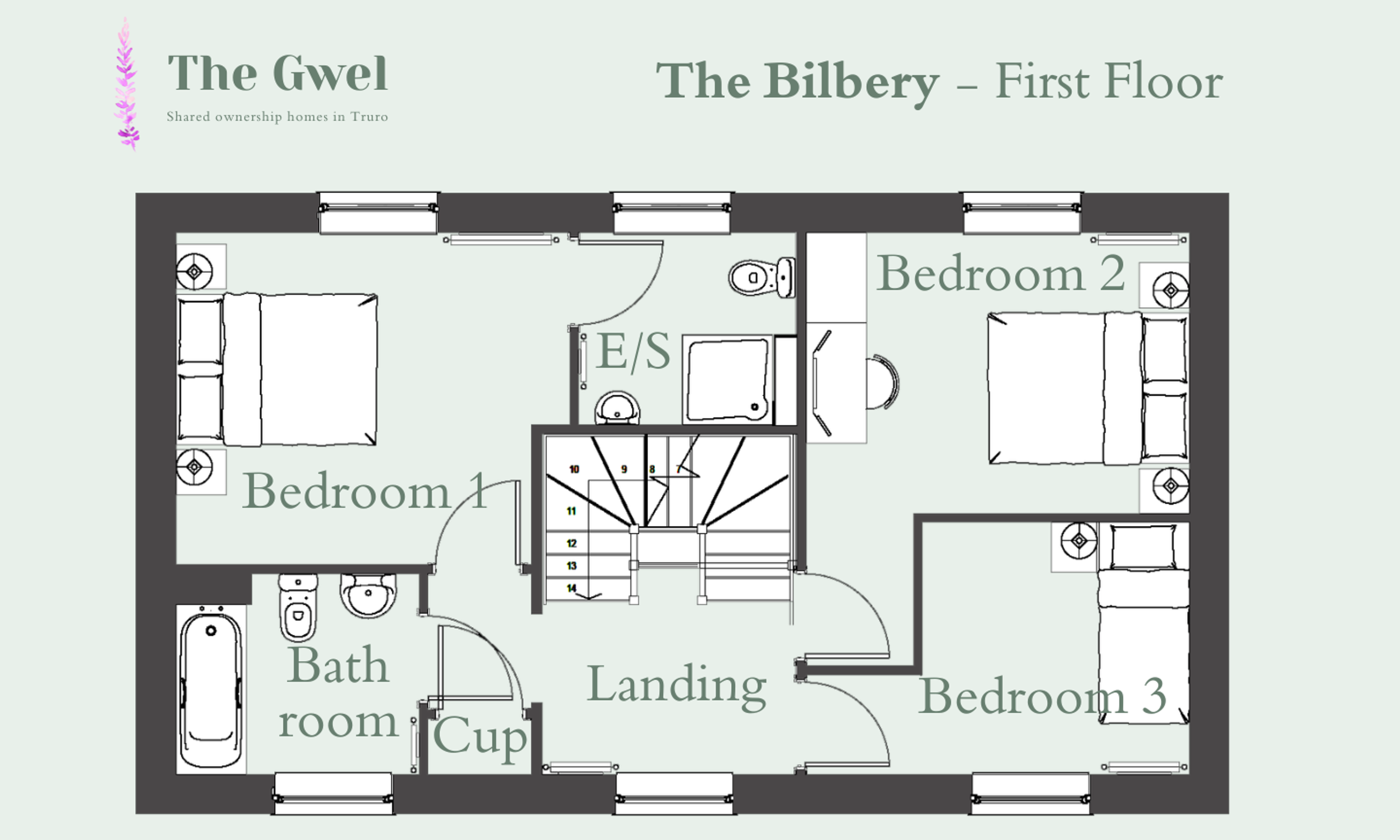 The Gwel 10 three-bedroom houses, all equipped with an air source heat pump, a private rear garden and parking. Please note that some plots will have a separate lease for their parking.