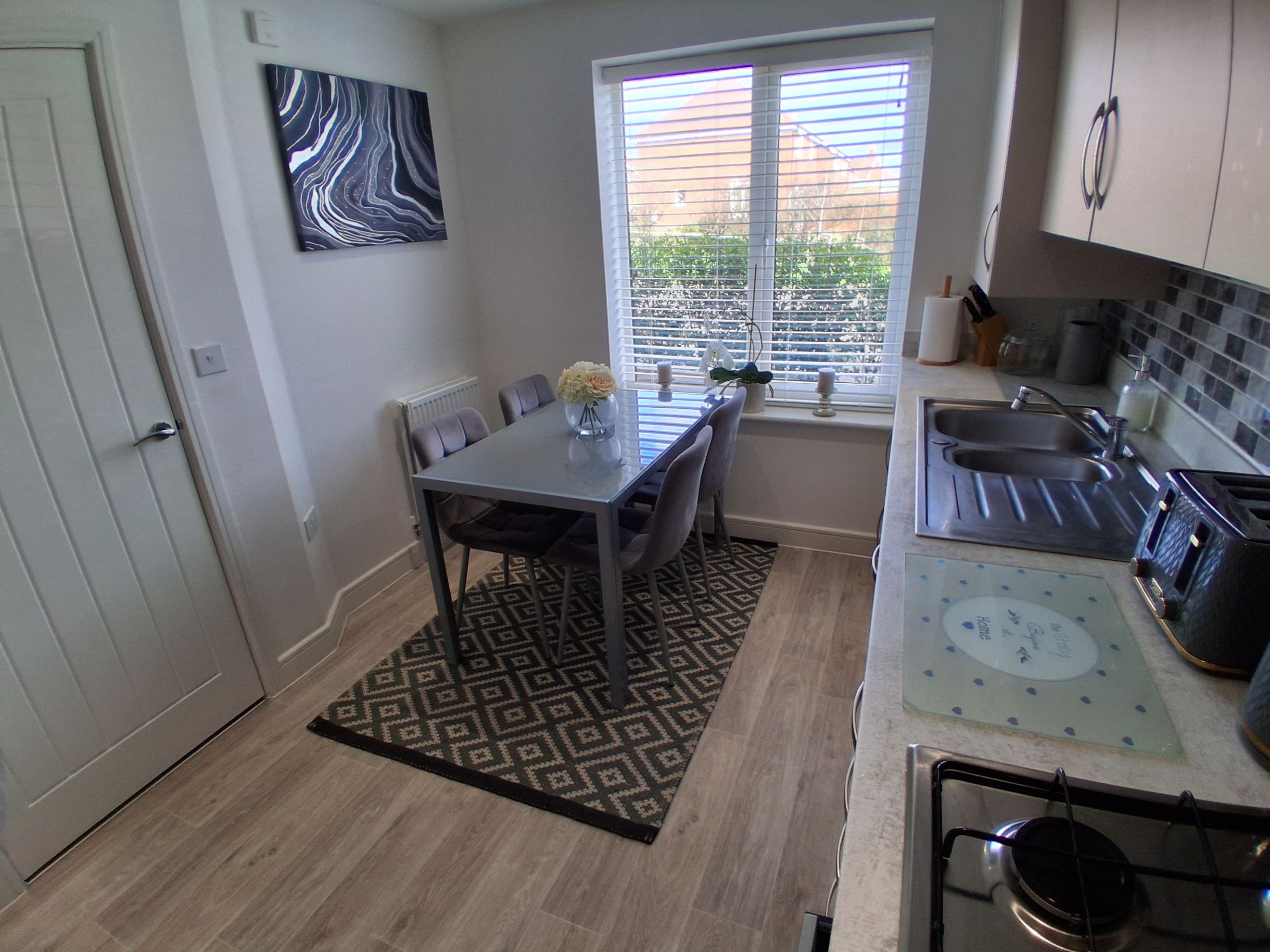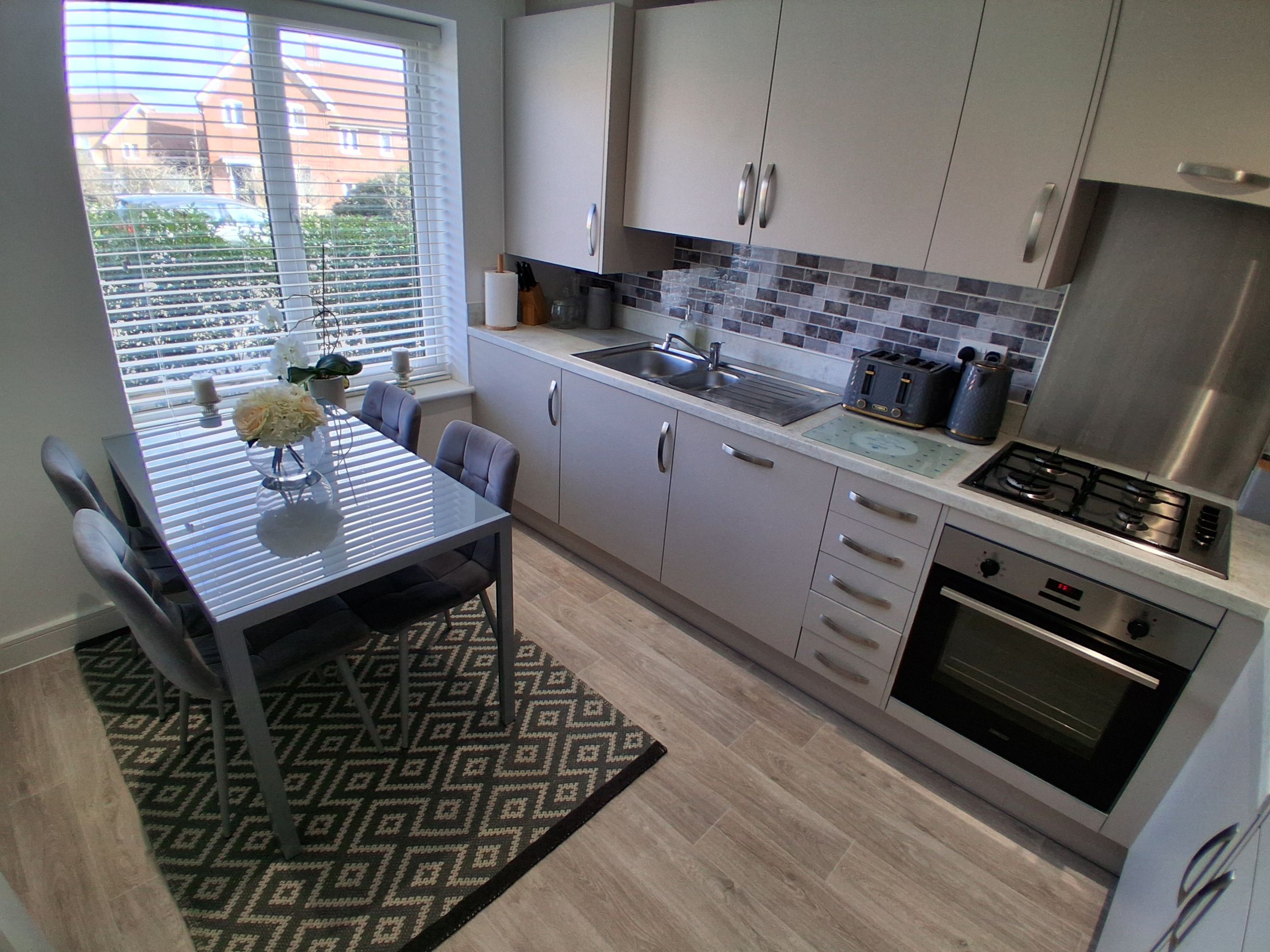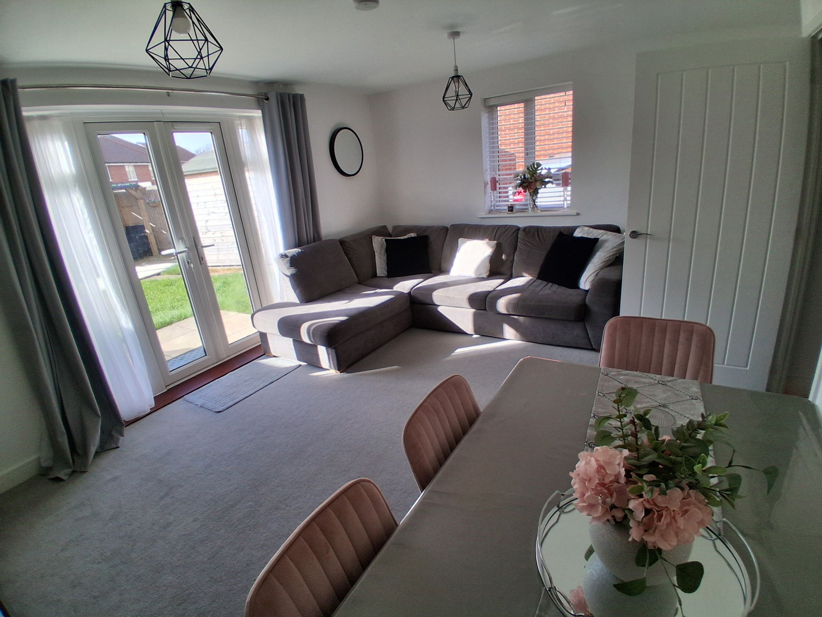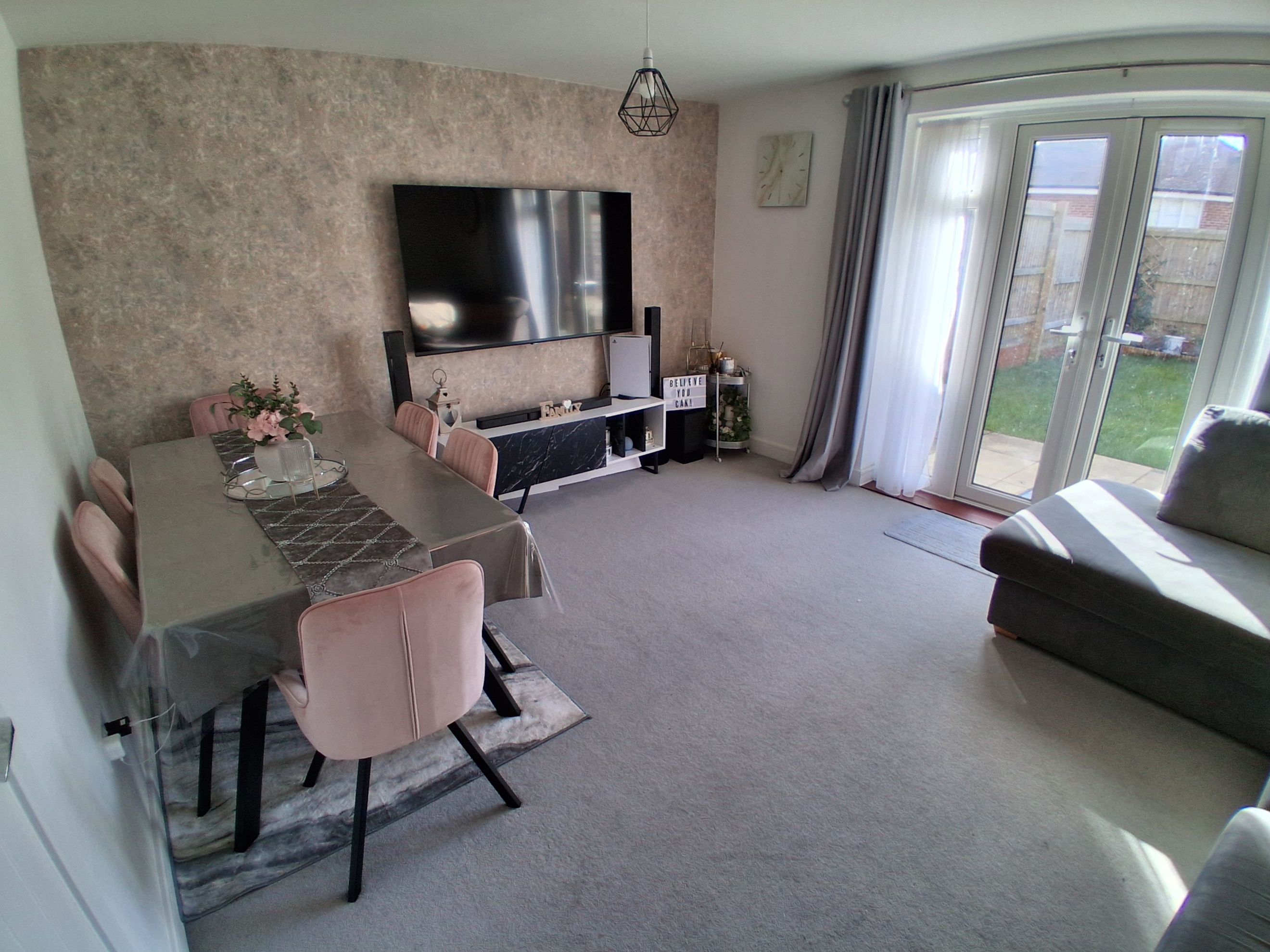 This attractive three‑bedroom home offers generous living space throughout and is ideal for families or anyone looking for comfort and convenience. The spacious lounge easily accommodates a dining table and includes an additional area that works perfectly as a home‑office space. Double French doors open directly onto the rear garden, allowing plenty of natural light to fill the room. The kitchen is equally impressive, large enough for dining and fully equipped with an integrated fridge‑freezer, washer/dryer, dishwasher, electric fan oven and a four‑burner gas hob.