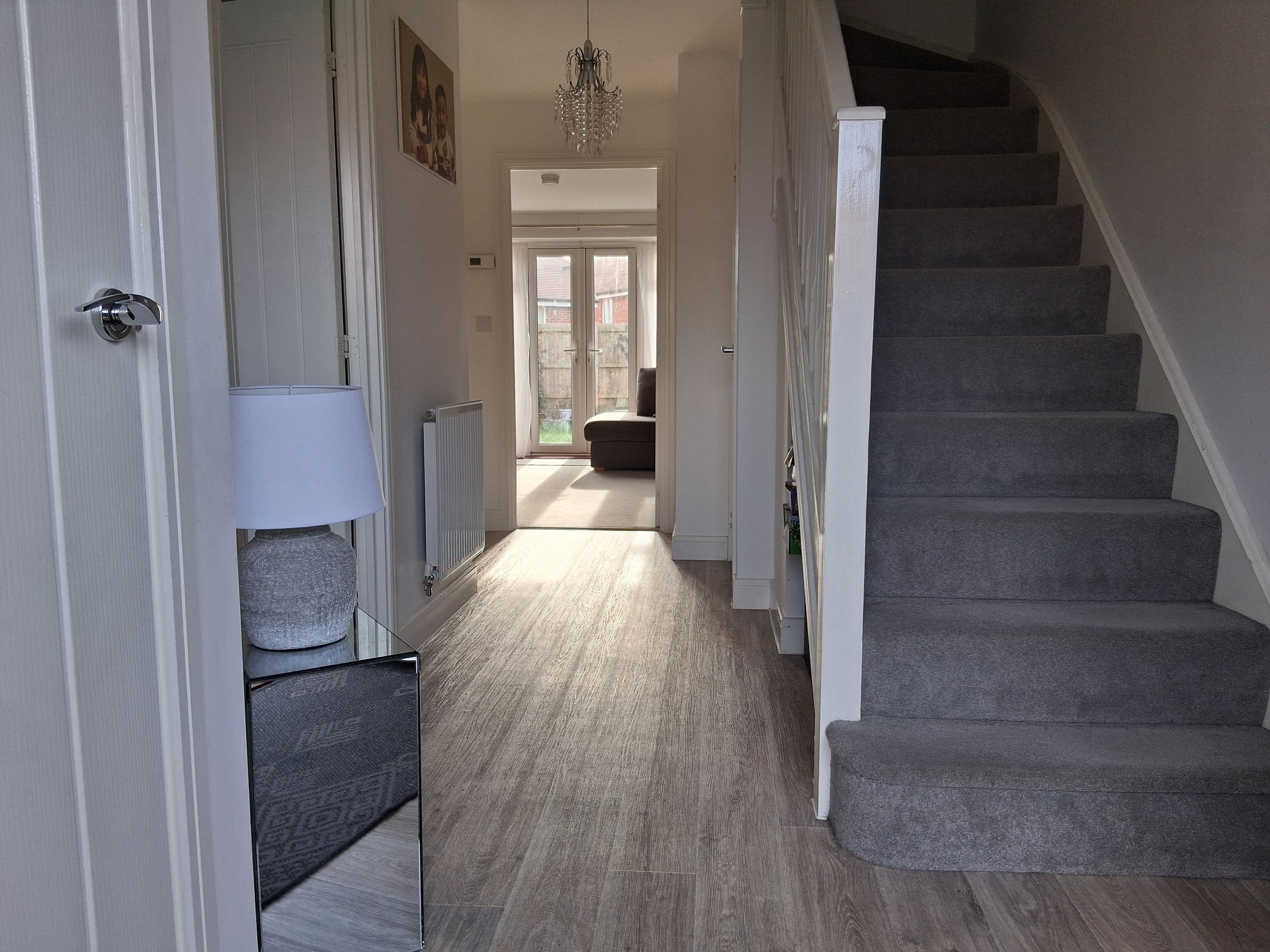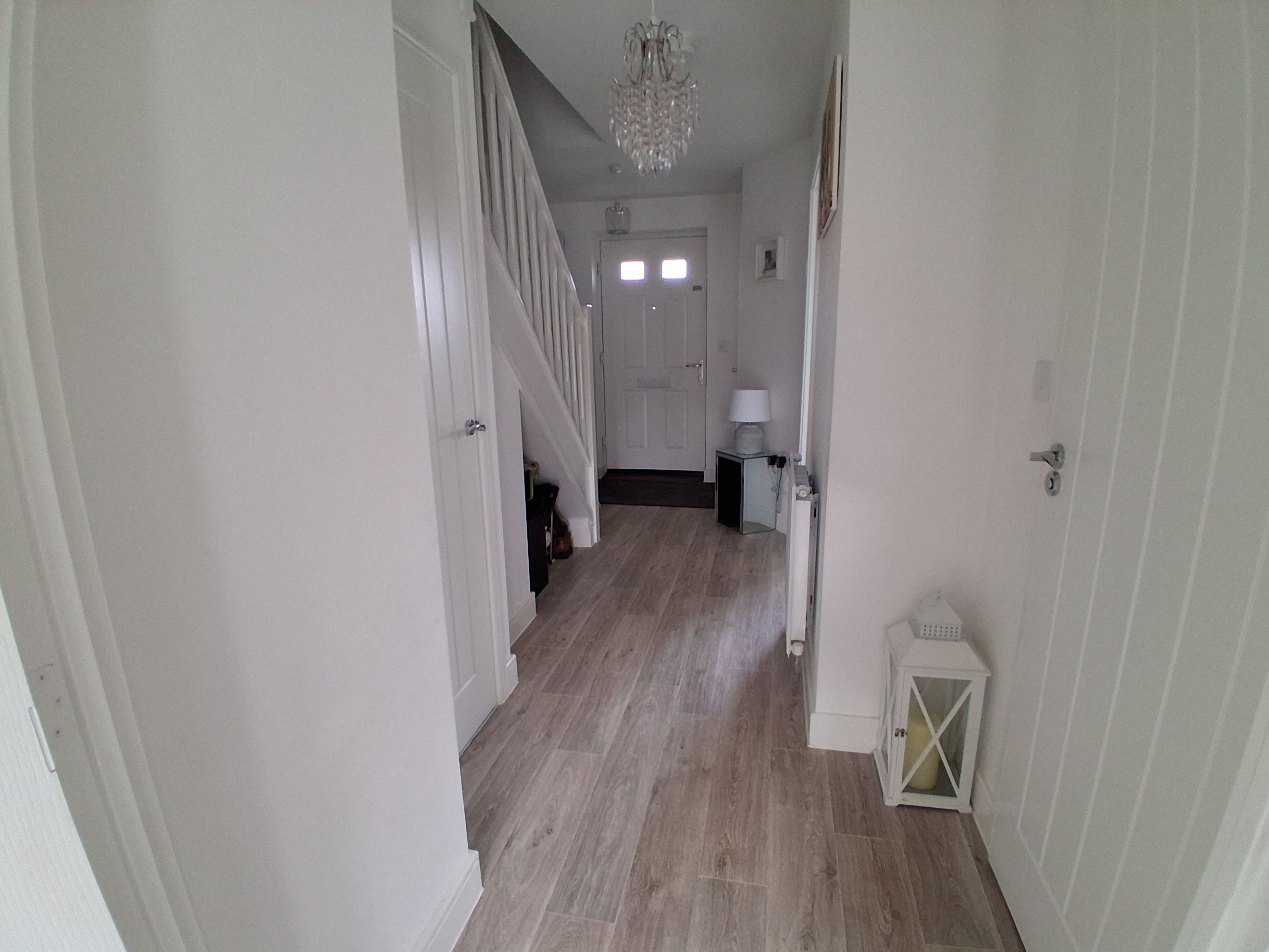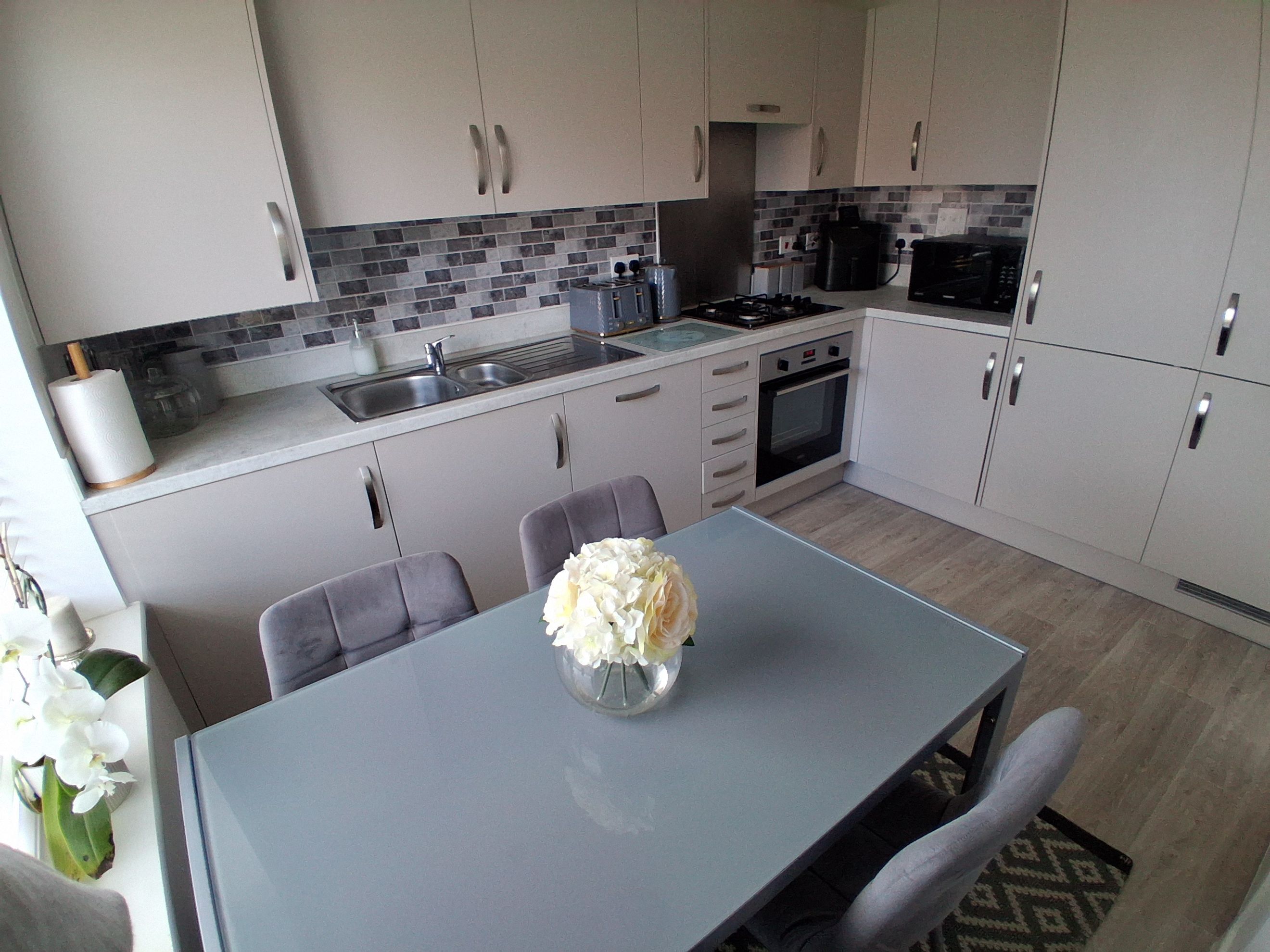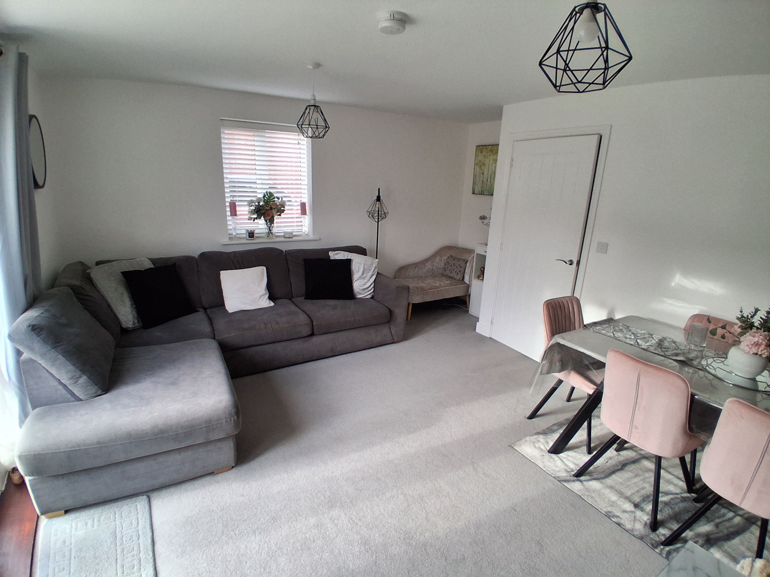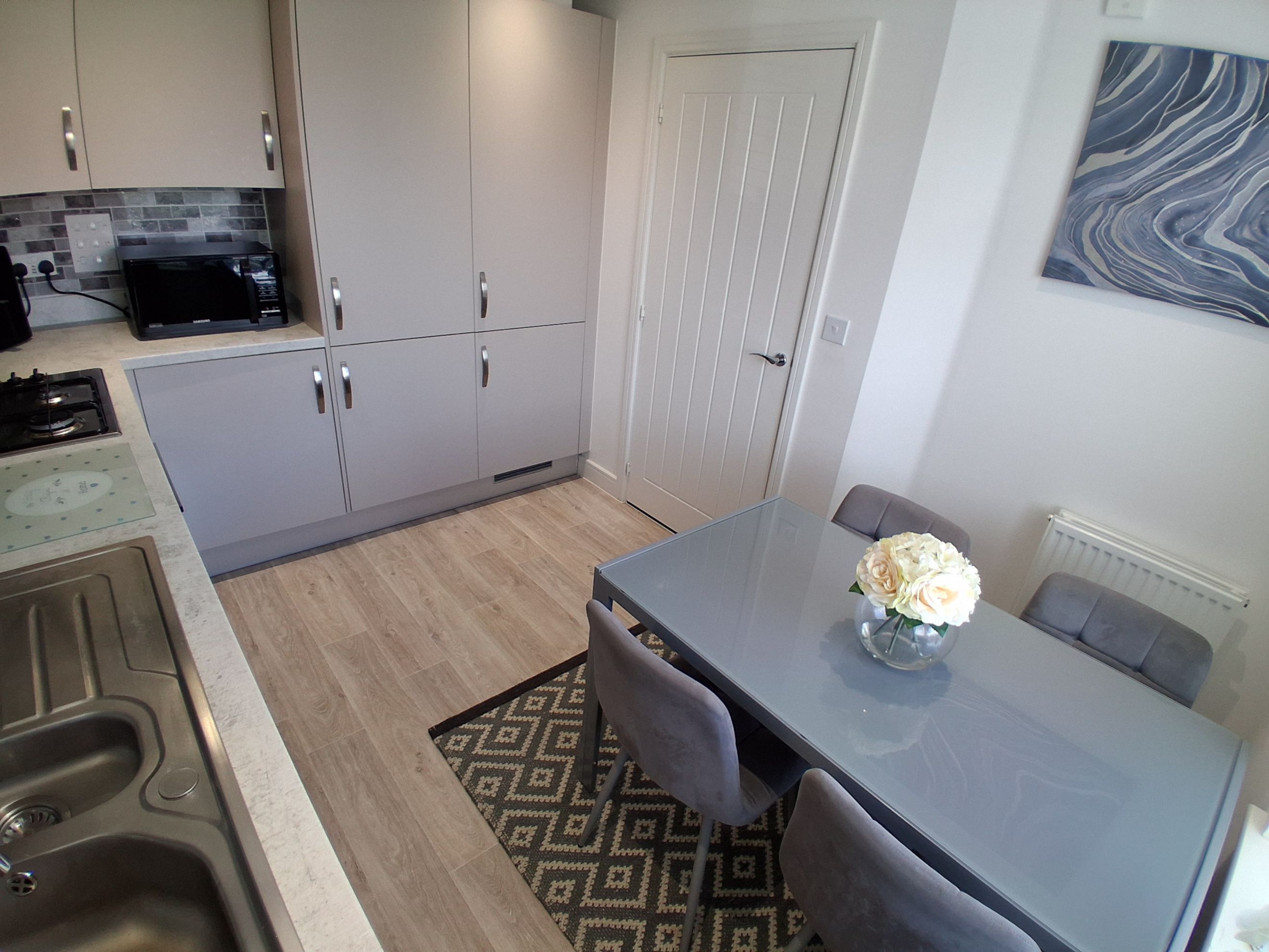 This attractive three‑bedroom home offers generous living space throughout and is ideal for families or anyone looking for comfort and convenience. The spacious lounge easily accommodates a dining table and includes an additional area that works perfectly as a home‑office space. Double French doors open directly onto the rear garden, allowing plenty of natural light to fill the room. The kitchen is equally impressive, large enough for dining and fully equipped with an integrated fridge‑freezer, washer/dryer, dishwasher, electric fan oven and a four‑burner gas hob.