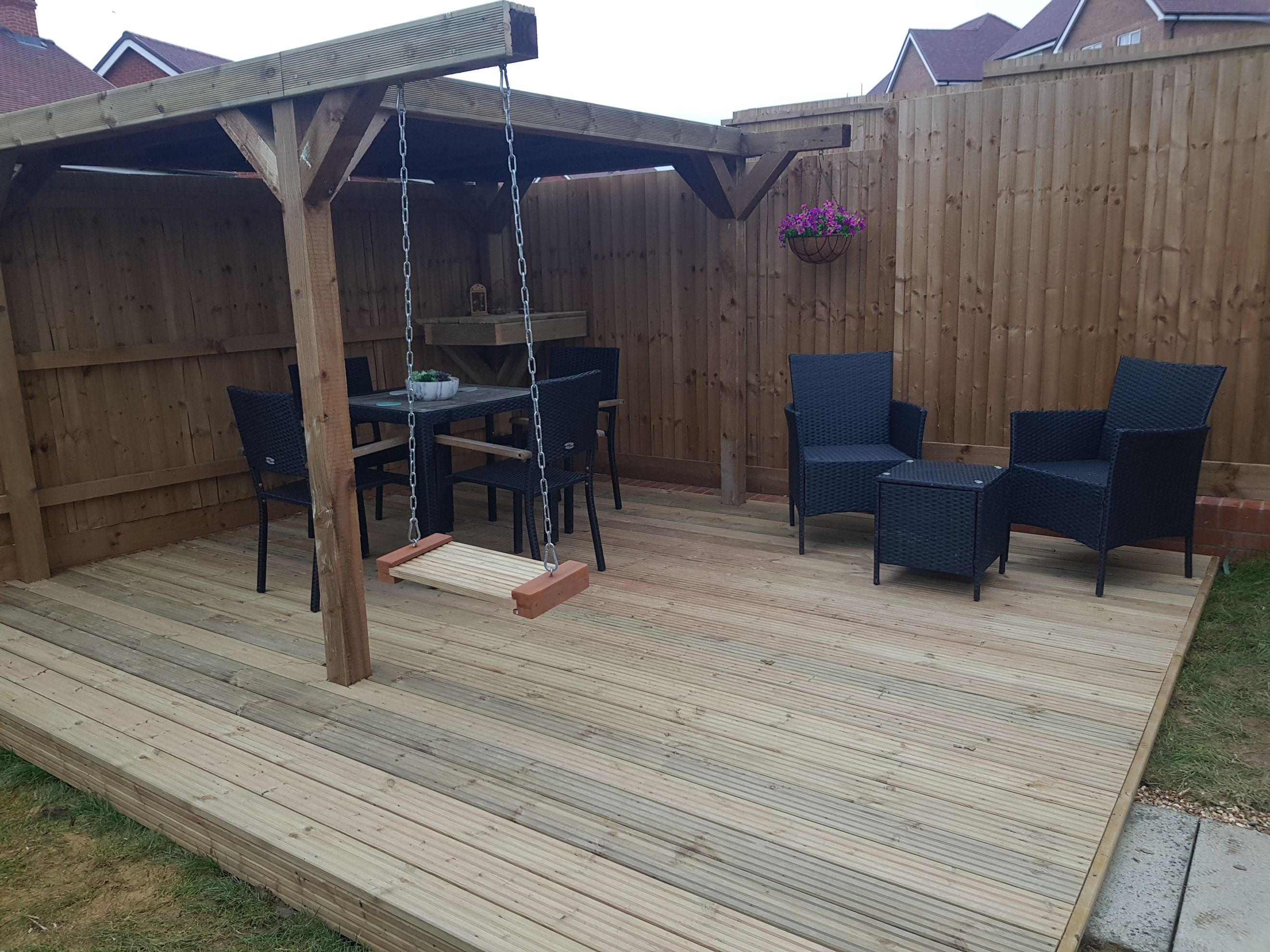 The rear garden is a standout feature, offering a large shed, extended patio area, custom‑built decking and a roofed gazebo, creating an excellent space for entertaining or relaxing outdoors.