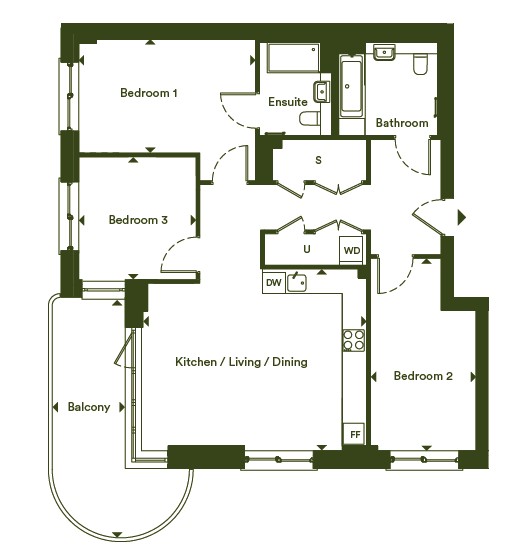 This home is a 3 bedroom - 3rd floor apartment offering 98.6 m2 of internal floor area with a balcony. Register your interest now!