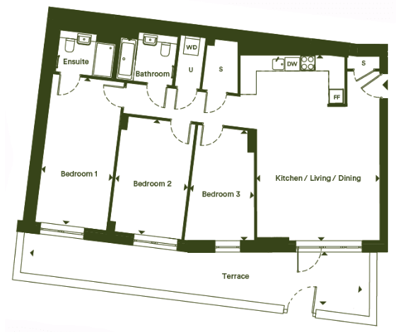 This home is a 3 bedroom - ground-floor apartment offering 108 m2 of internal floor area with a private terrace. Register your interest now!