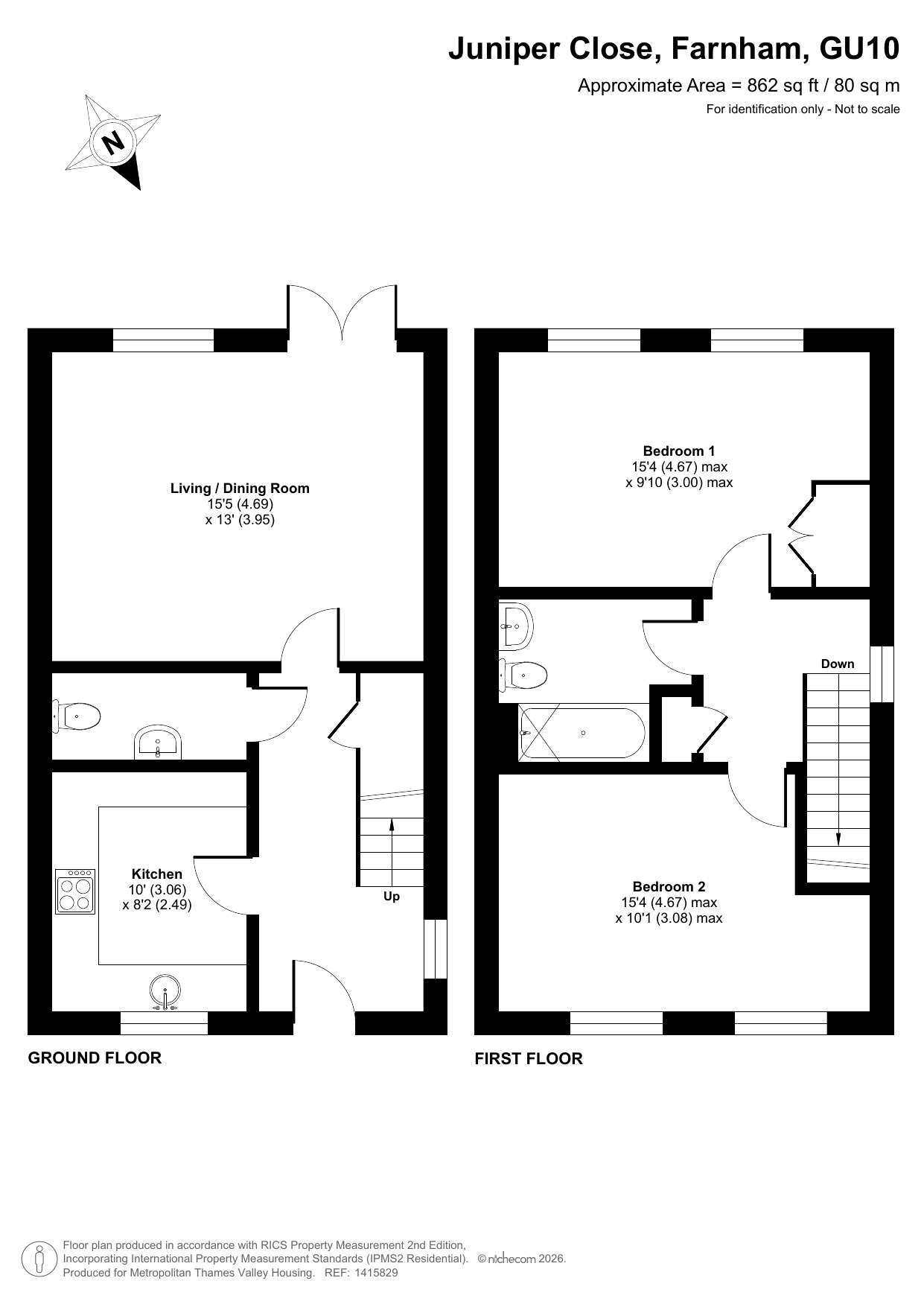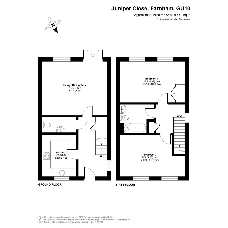 The property on the ground floor comprises an entrance hall with fitted under-stairs storage, a fitted kitchen, a living room and a separate WC. The first floor has a landing with a fitted storage cupboard, two well‑sized bedrooms, and a bathroom. Ideal for couples or small families.