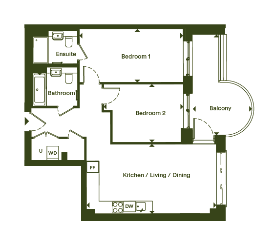 This home is a modern 2 bedroom first floor apartment offering 72.9 m2 of internal floor area with a balcony. Register your interest now!