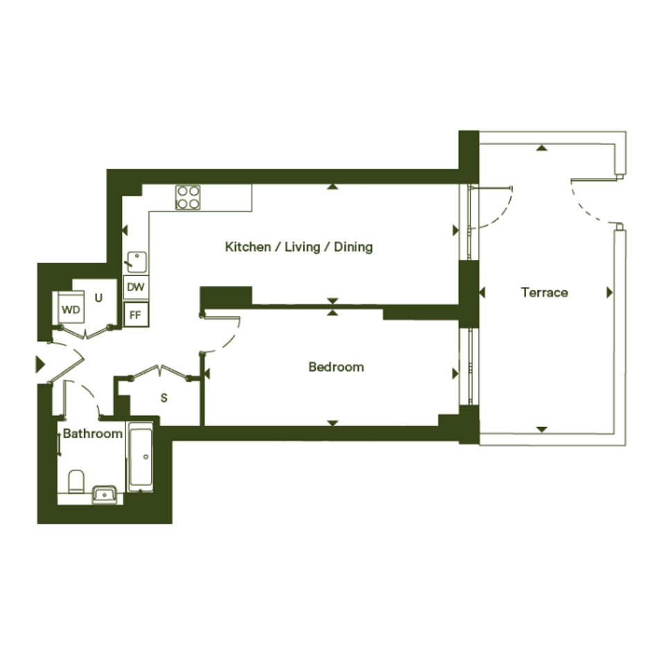 This home is a 1 bedroom ground-floor apartment offering 54 m2 of internal floor area with a terrace. Register your interest now!