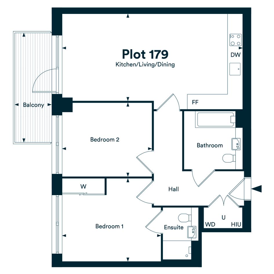 Plot 179 is a 2nd floor 2-bedroom Shared Ownership apartment with a private balcony. Bedroom one includes a fitted wardrobe and an ensuite. A short 2 minute walk from Kew...