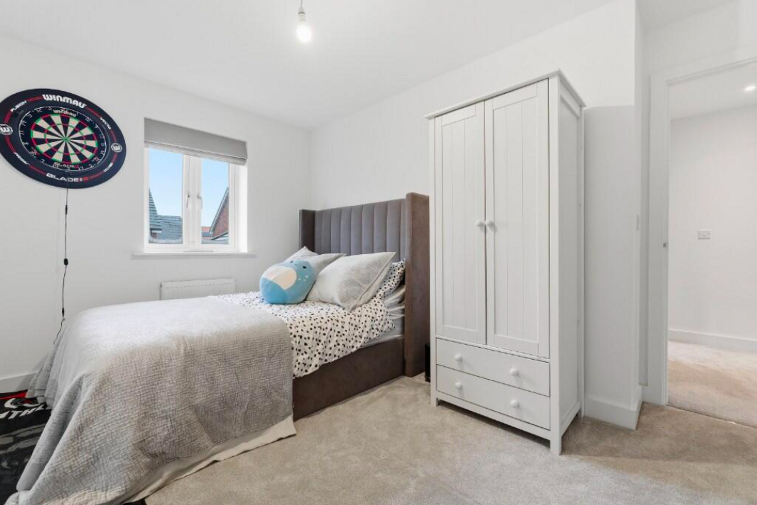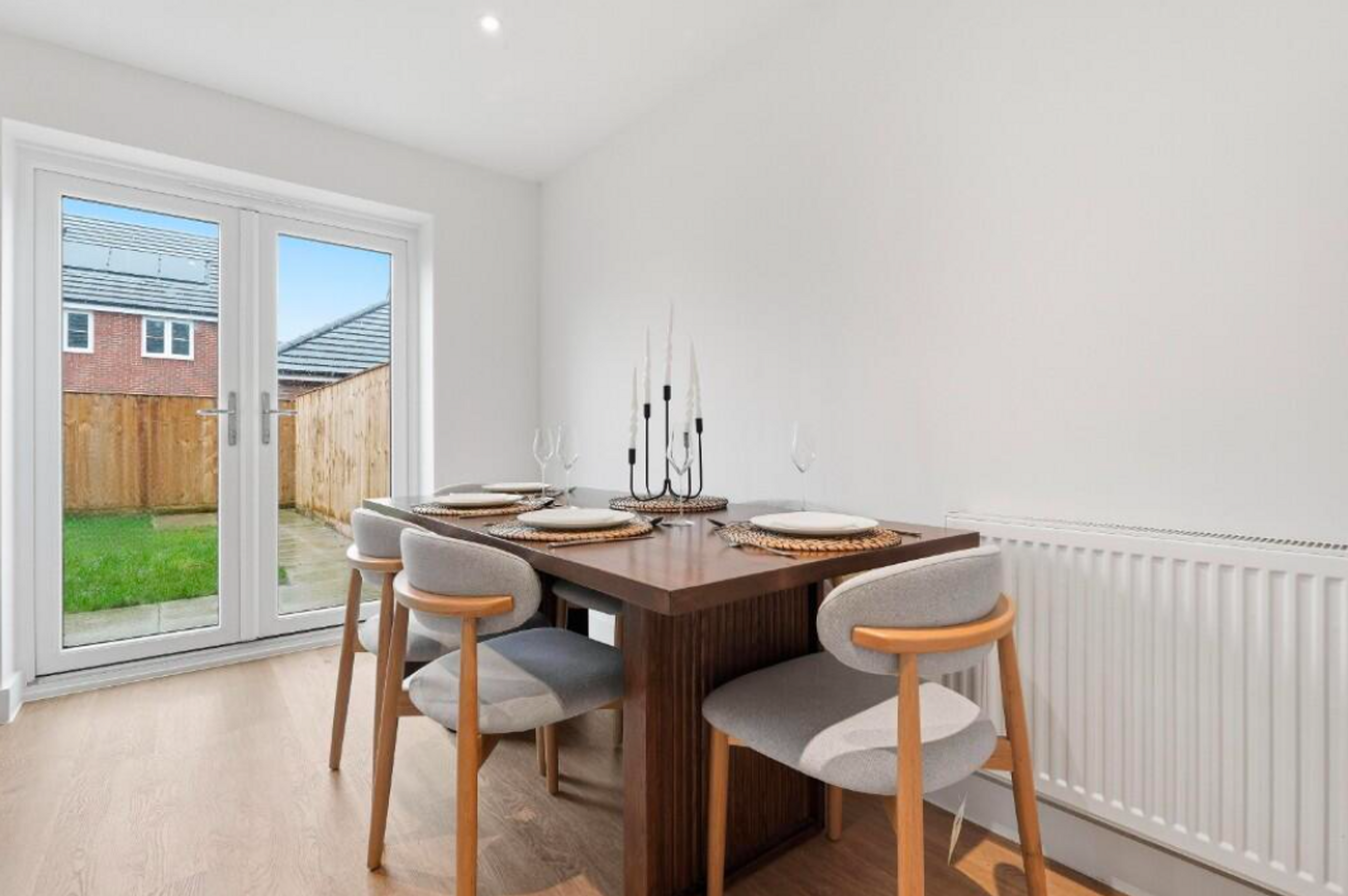 Immaculately presented throughout, this property was built in 2025 by Orbit Homes and benefits from the remainder of the new homes warranty until 2035. The internal accommodation comprises an entrance hall with built-in storage, a downstairs WC, a living room, and a spacious kitchen/dining room featuring integrated appliances and French doors opening onto the rear garden. To the first floor, the landing provides access to the master bedroom, two further bedrooms, a family bathroom, and additional built-in storage. Externally, the property benefits from an enclosed rear garden with a rear access gate, along with two parking spaces located to the front of the property.