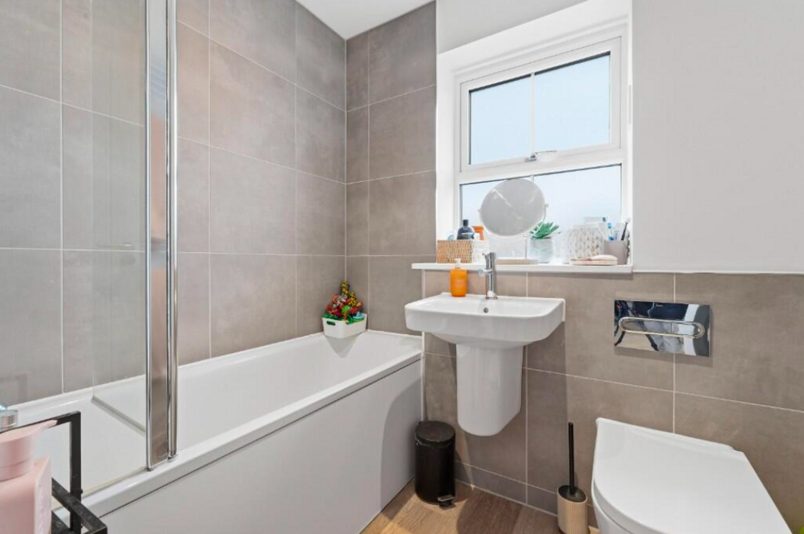 Bathroom - Window to front aspect. Bath with shower over, WC and was hand basin. Heated towel rail.