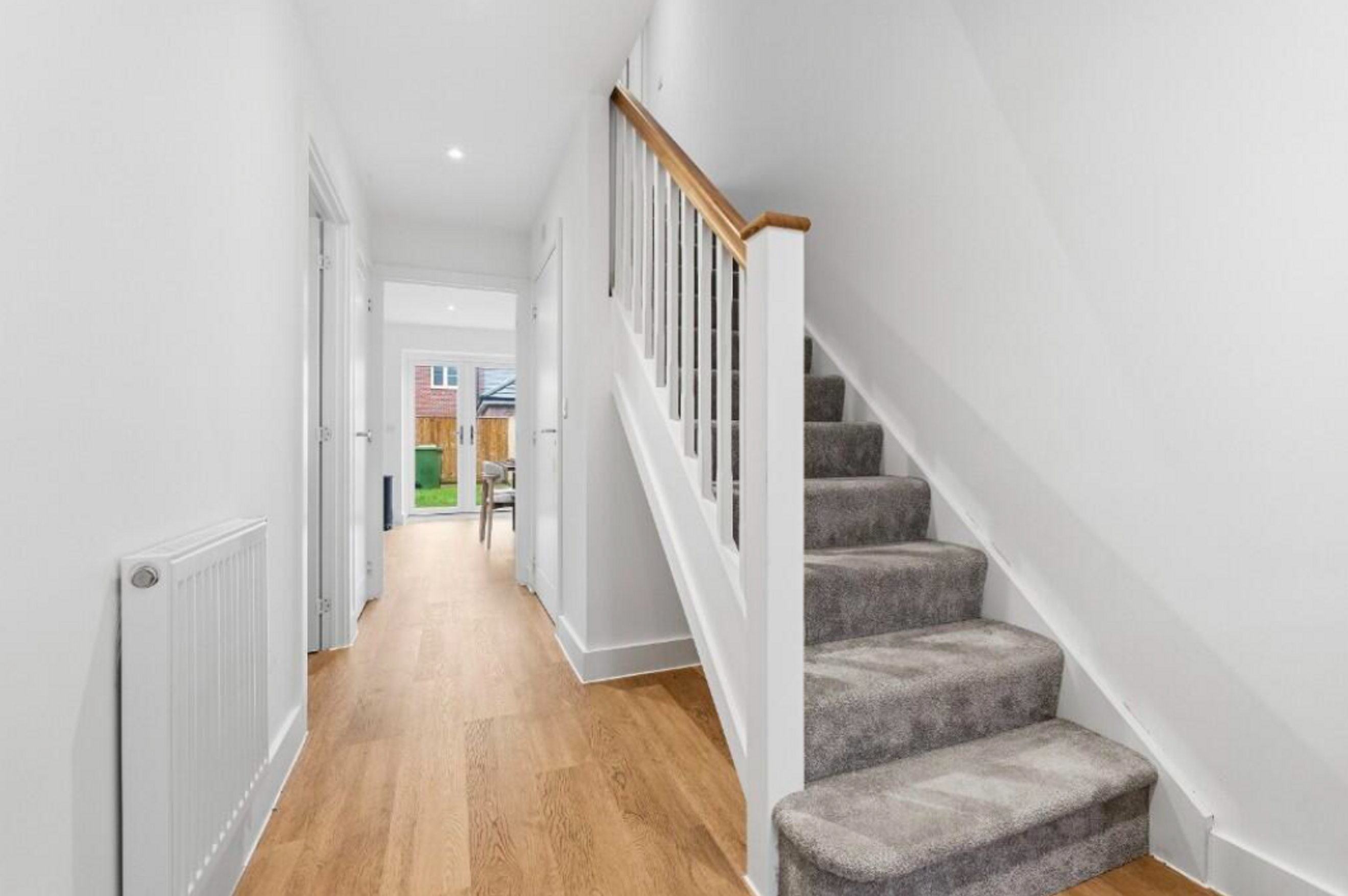 Entrance Hall - Door to front aspect. Amtico flooring, radiator, spotlights and storage cupboard.