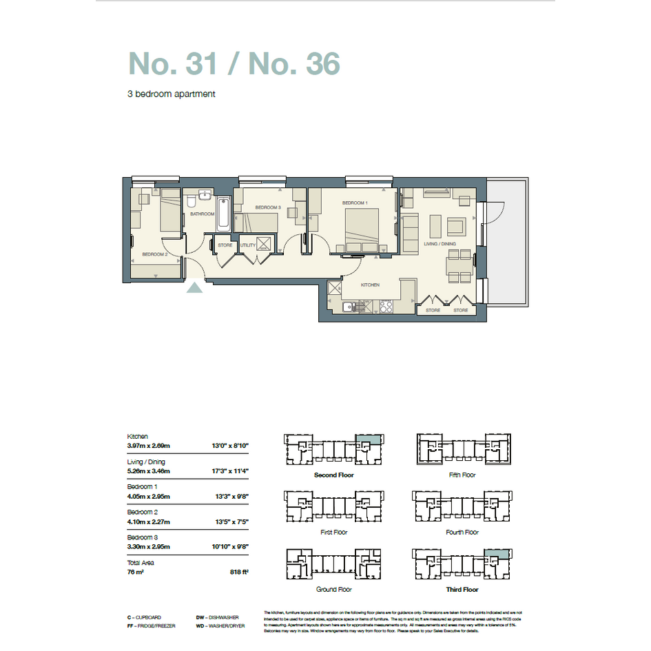 Plot 3.10 / Flat 30 is a stylish third-floor apartment measuring 76m². The property features a welcoming entrance hall with a convenient storage cupboard and washer, a modern L-shaped fitted kitchen with integrated appliances, and a bright open-plan living area leading onto a private balcony, accessible from both the lounge and bedroom. The spacious bedroom benefits from built-in wardrobes, while the contemporary bathroom is finished to a high standard with full tiling, a shower-over-bath, and a chrome heated towel rail.