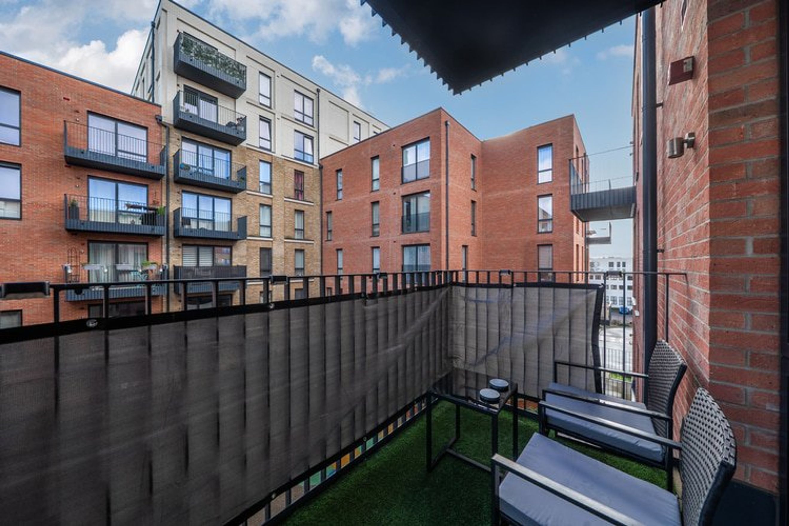 Outside, there is a private balcony and a shared garden area. Perfect for couples and singles.