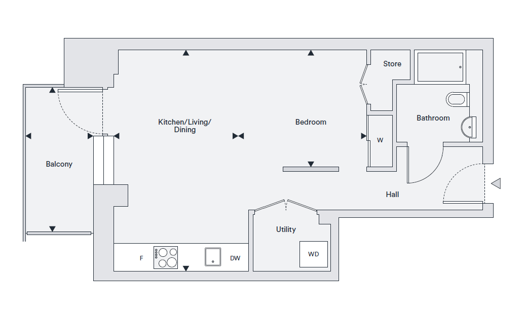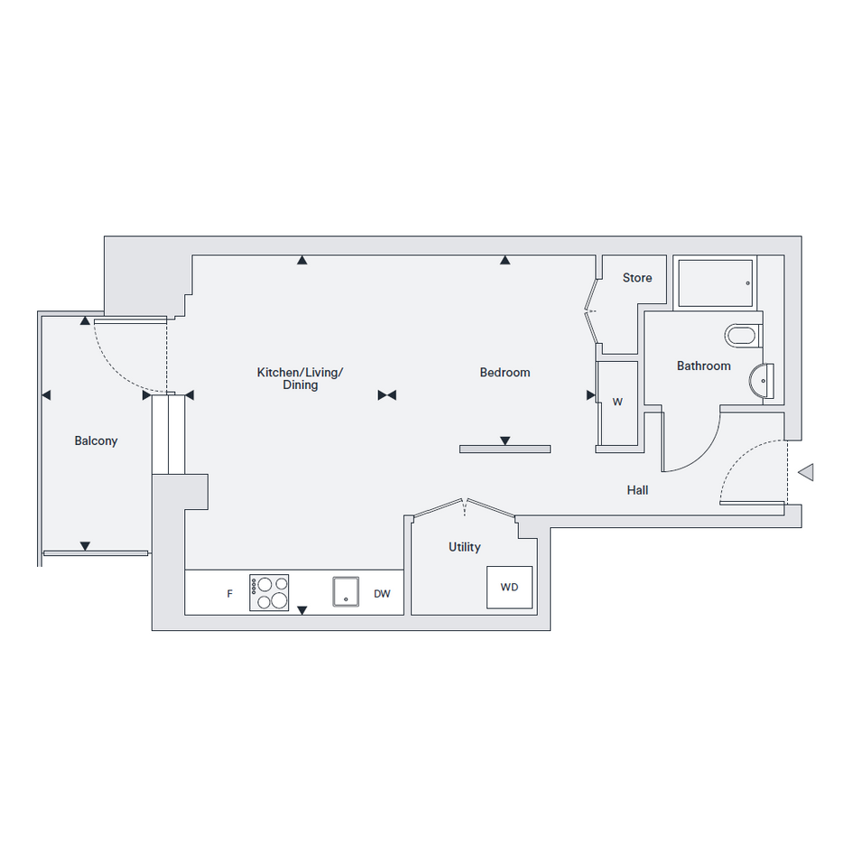 Manhattan Studio, 1 bathroom, 4th floor apartment offering 38.8 sq.m of internal floor area with outdoor space. Bosch integrated appliances and ample storage available.