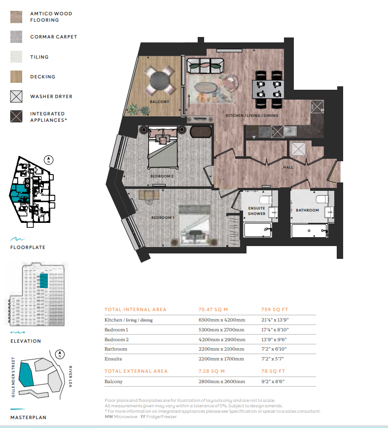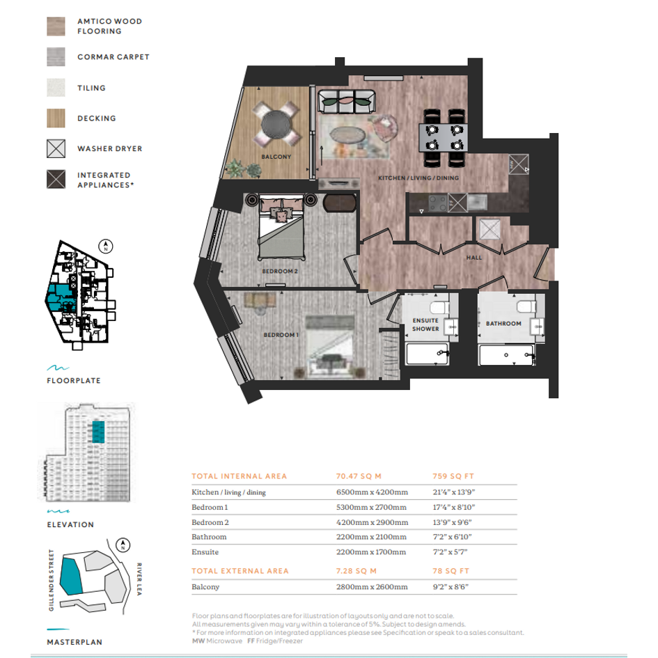 A modern 2‑bedroom apartment with a private balcony in Bromley‑by‑Bow, east London.