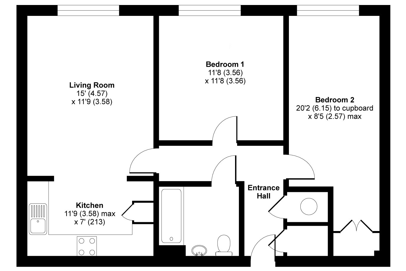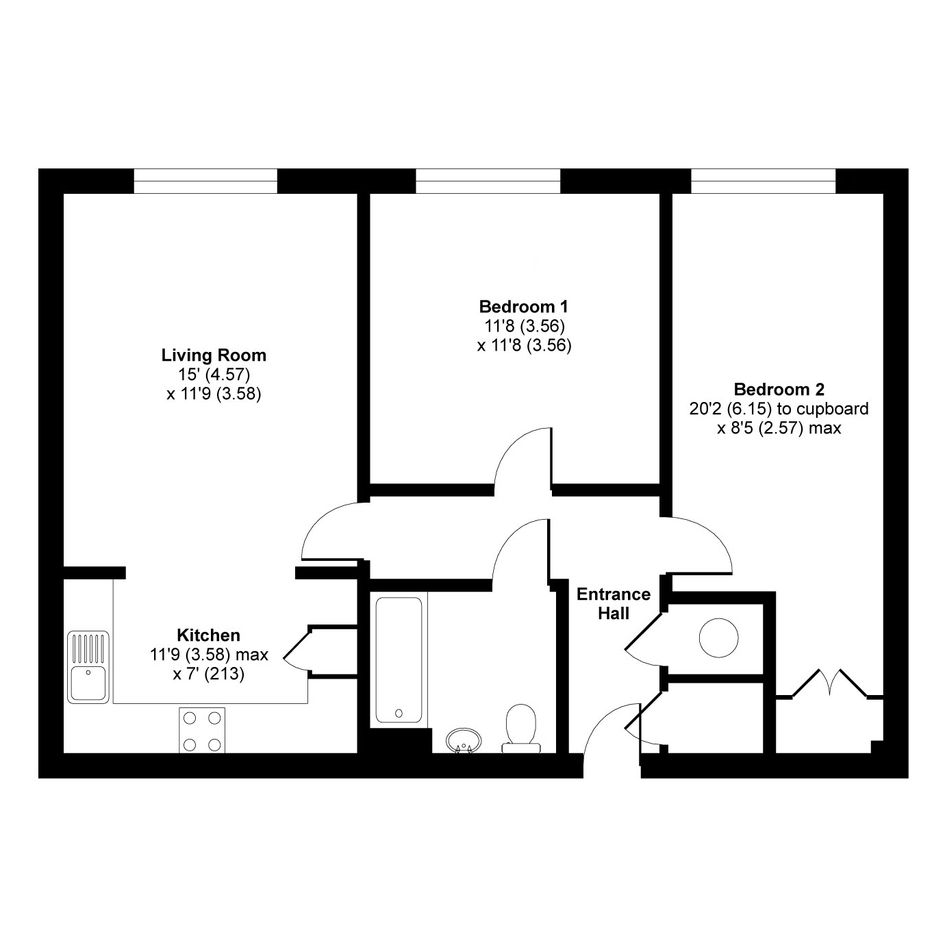 This top floor apartment has a good-sized reception room with semi-open-plan kitchen featuring attractive, walnut-style units. Both bedrooms are generously-sized doubles and one includes a fitted wardrobe. There is a bathroom with combined overhead/hand-held shower and a pair of storage/utility cupboards have been provided in the entrance hall. Well insulated walls and modern double glazing make for a good energy-efficiency rating. Bell Court is close to the centre of town where a wide variety of shops can be found. The property comes with use of a parking space plus Farnborough Station (for trains to Basingstoke, Portsmouth Harbour or London Waterloo) is within comfortable walking distance or can be reached via a brief bus/bike ride. In addition, Farnborough North Station offers services to Reading and Gatwick Airport.
