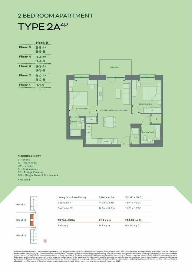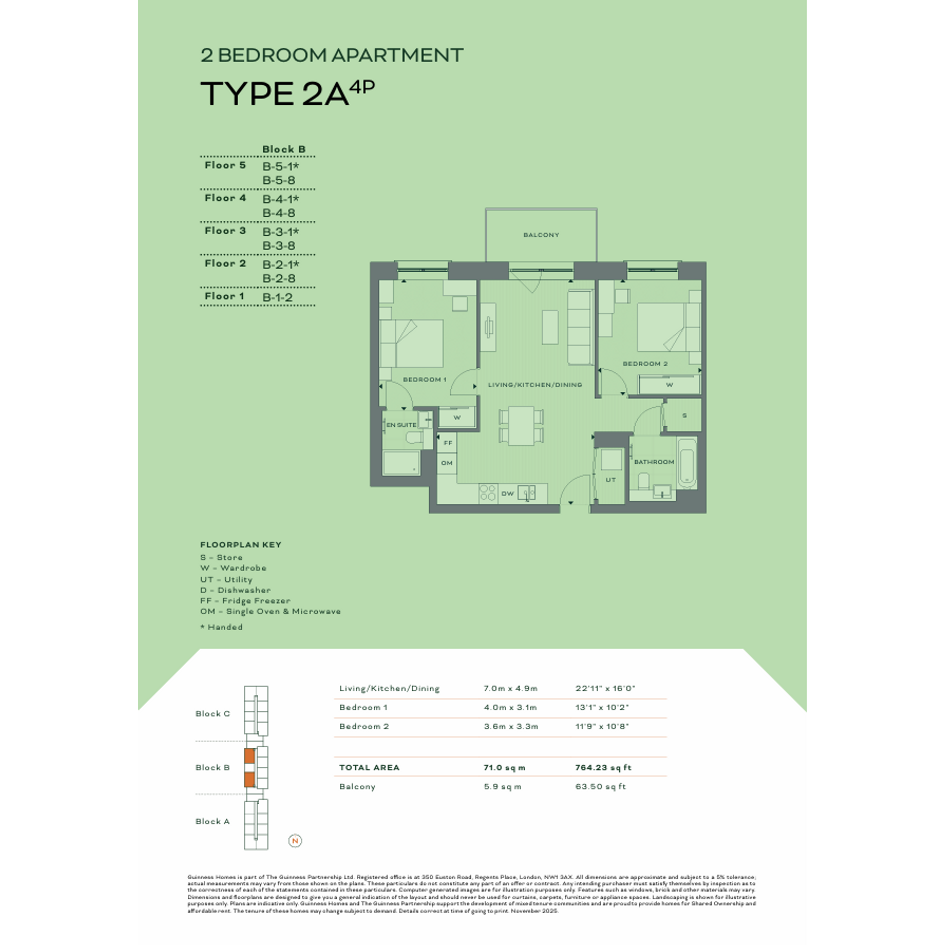 - Total area: 71.0 sqm / 764.23 sq.ft (excluding balcony)
