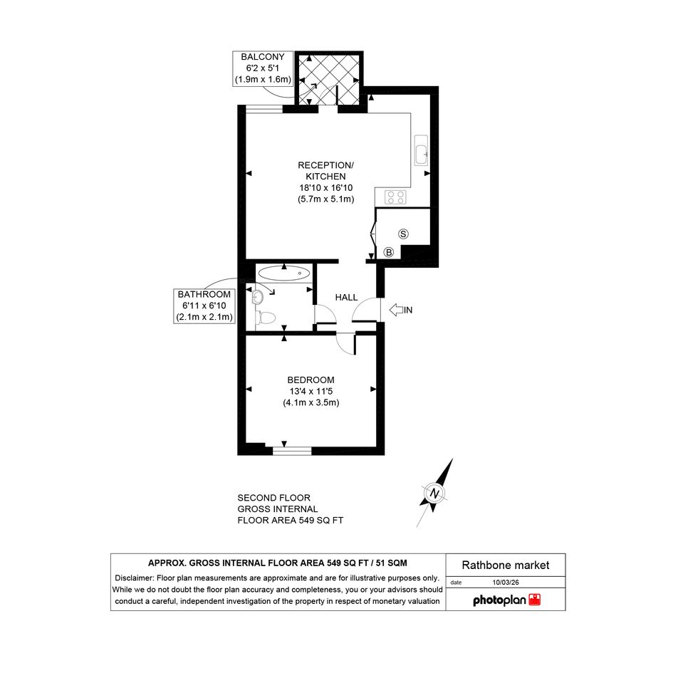 Hallway: 2m x 1.8m