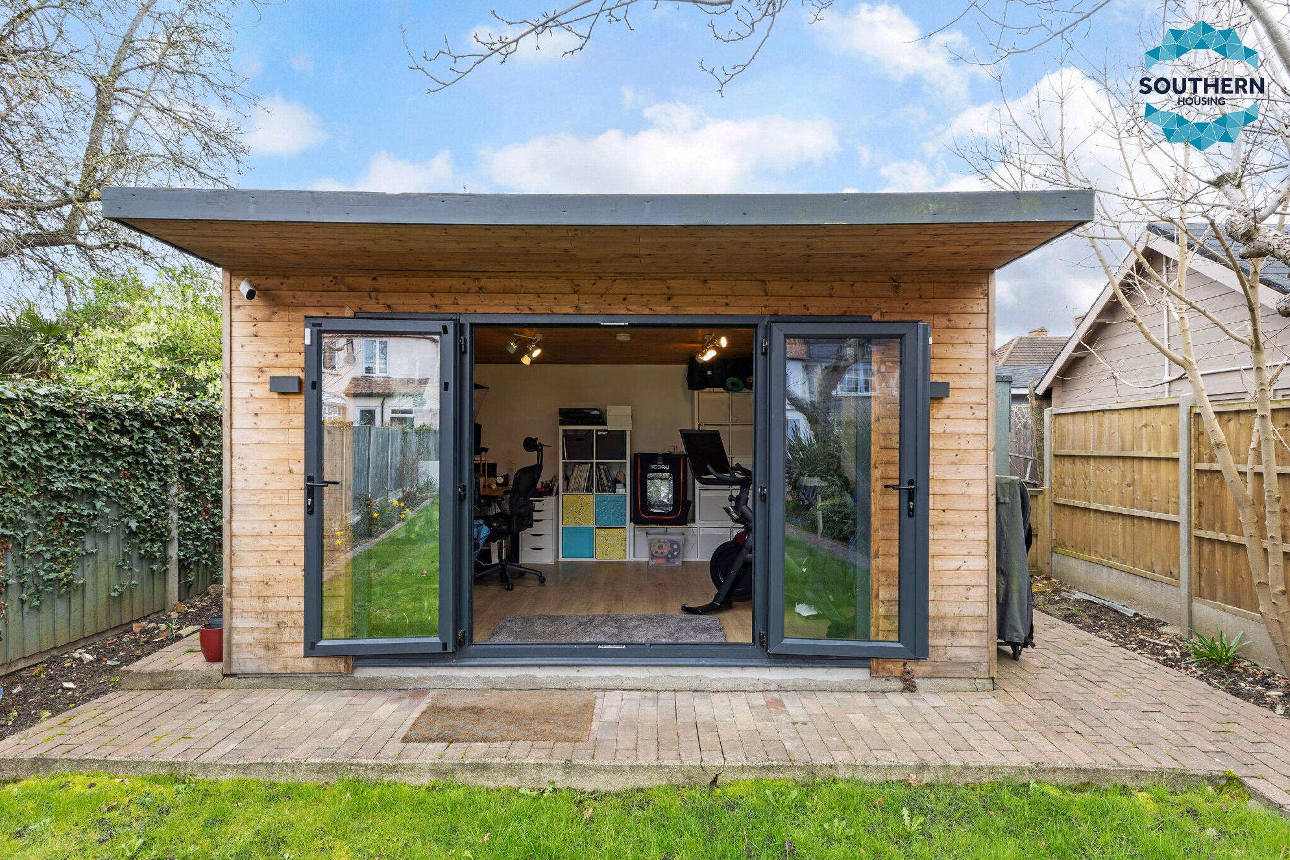 The outdoor space is a standout feature of this home. The spacious garden provides ample room for relaxation, play, and entertaining, while the modern garden room-complete with electricity-offers a versatile additional space ideal for use as a home office, gym, or studio.