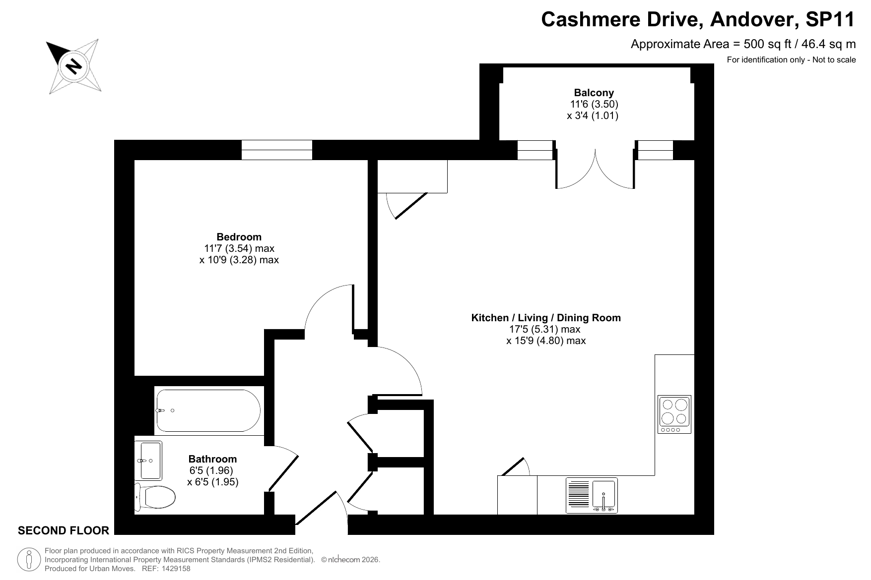 This flat is on the top (second) floor of a recently-constructed development and has a reception room with an attractive, open-plan kitchen area and double doors that lead out onto a balcony. There is a good-sized bedroom, a simple, modern bathroom and a pair of built-in storage/utility cupboards have been provided in the entrance hallway. Well insulated walls and roof, high performance glazing and gas central heating all contribute towards a very good energy-efficiency rating. The property comes with use of an allocated, off-street parking space and Andover town centre is only a brief drive or cycle ride away. The A303, that skirts the southern edge of the town, also allows for easy travel further afield and the surrounding area is famous for its picturesque countryside, ancient sites and other places of interest.