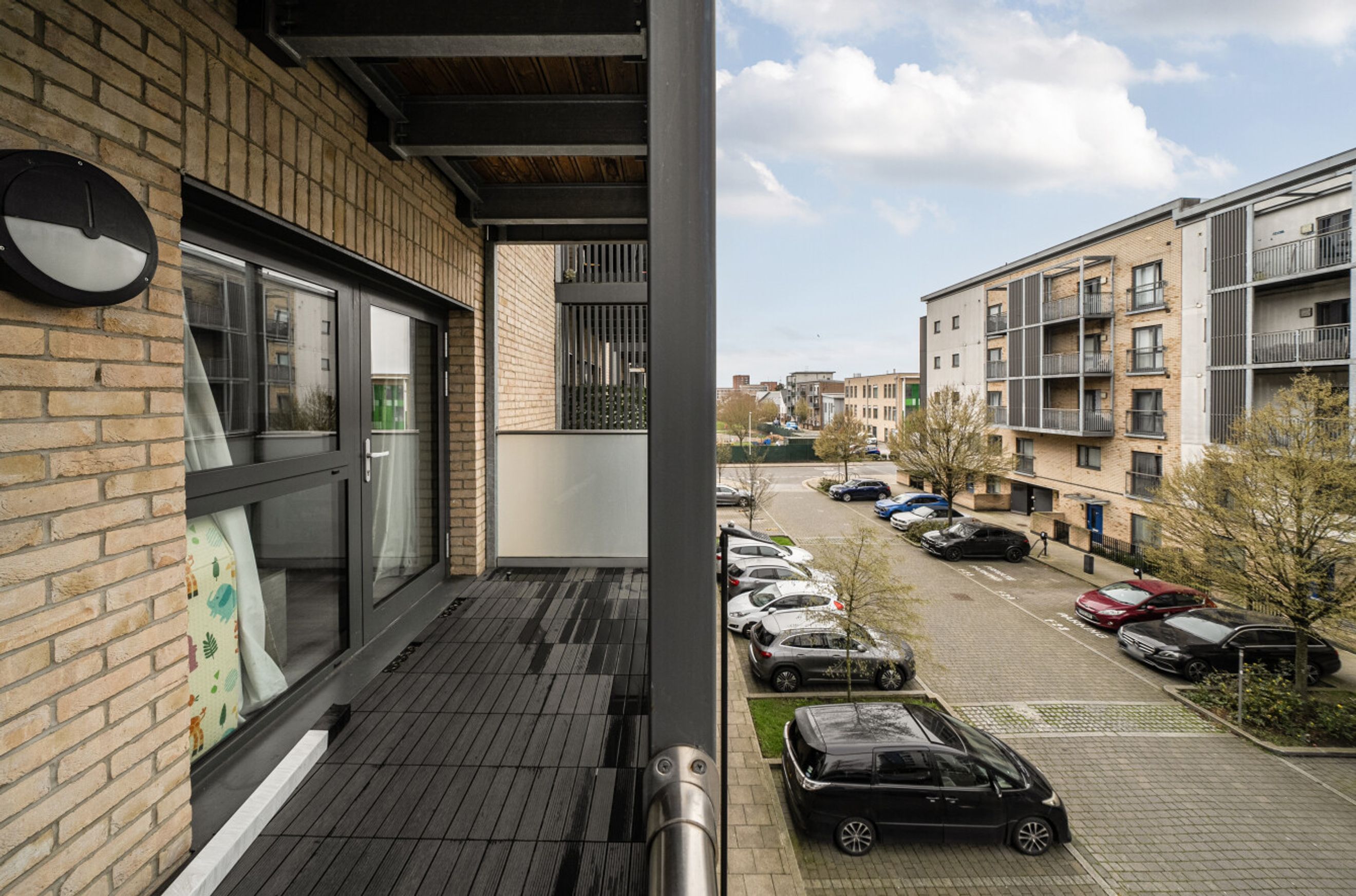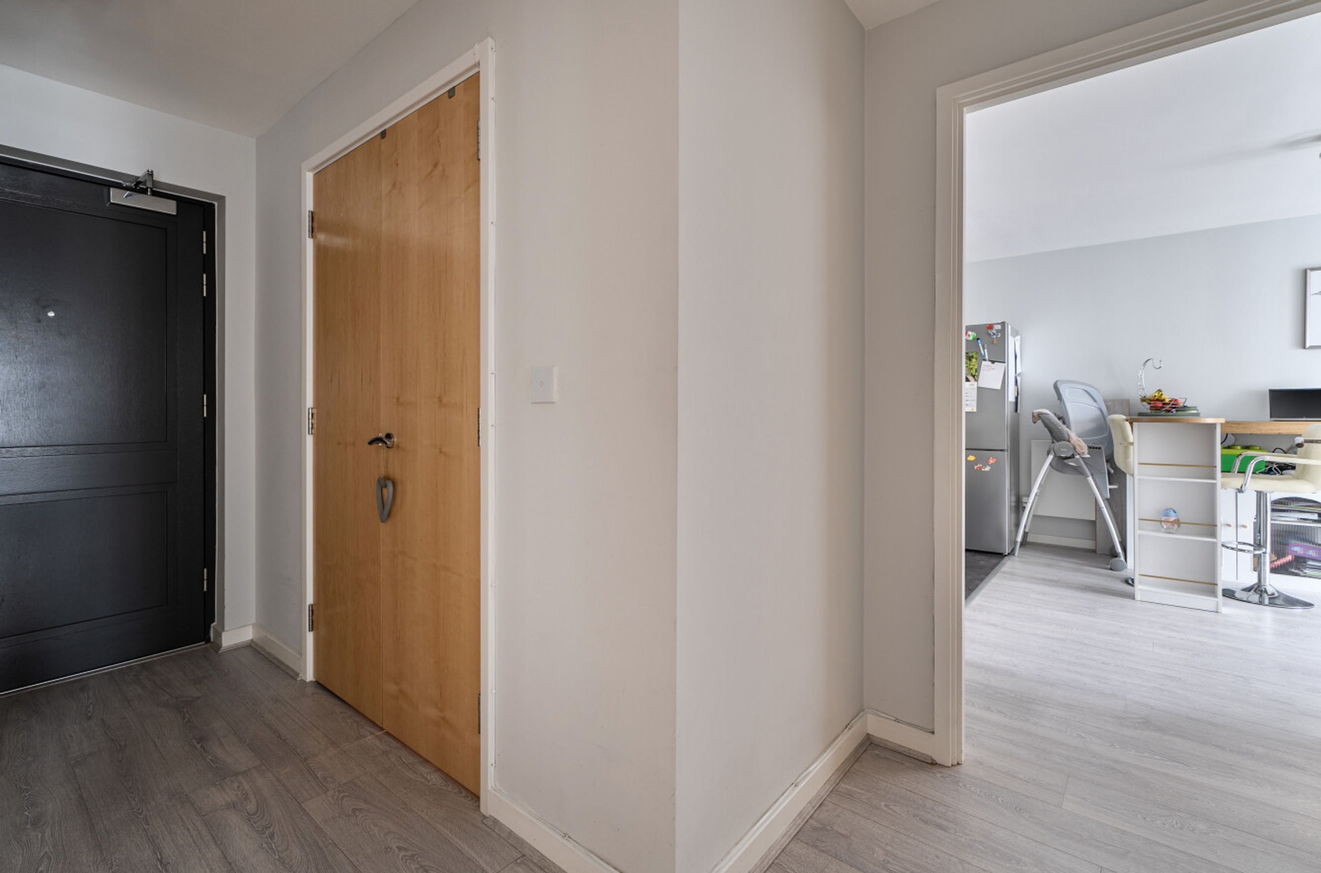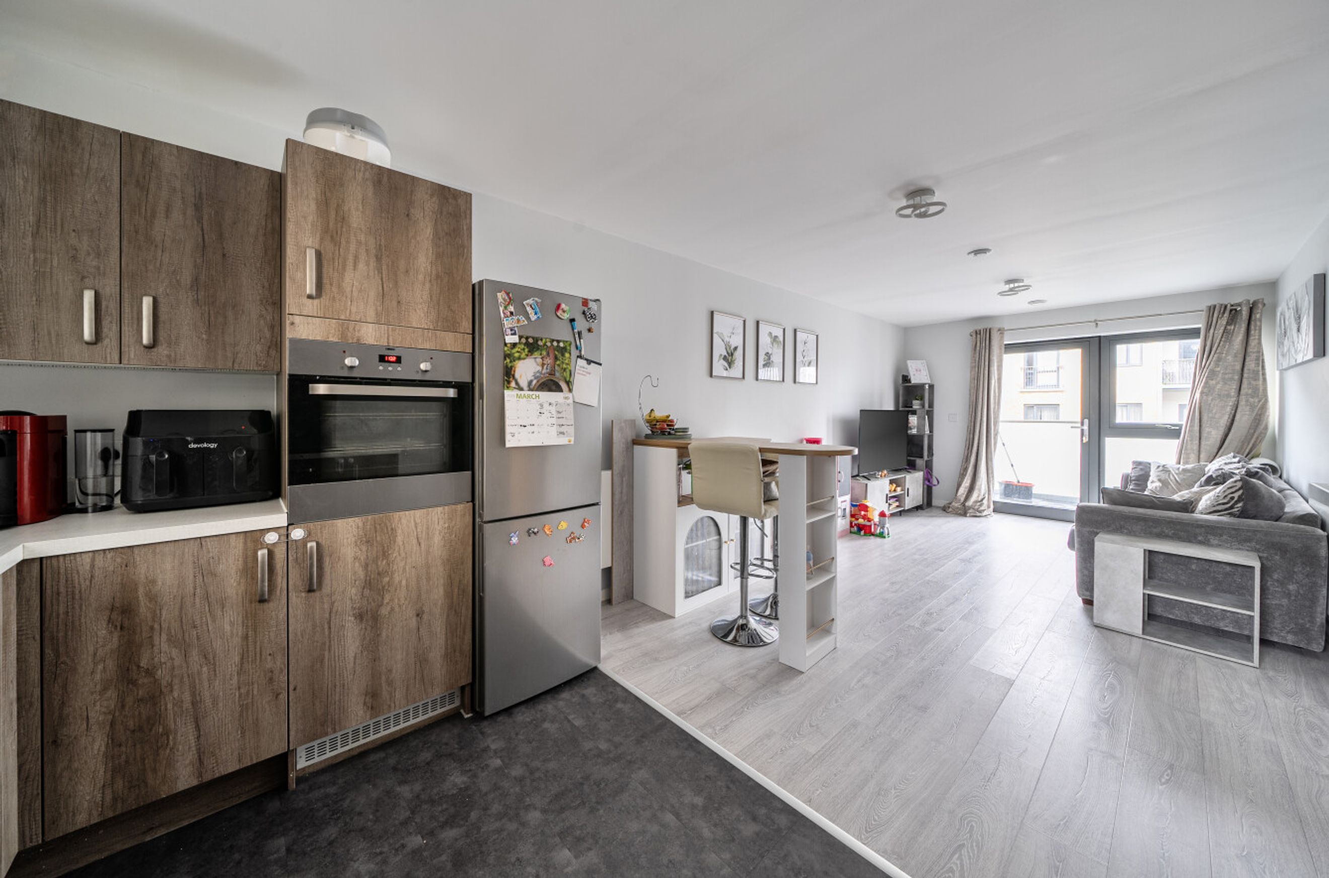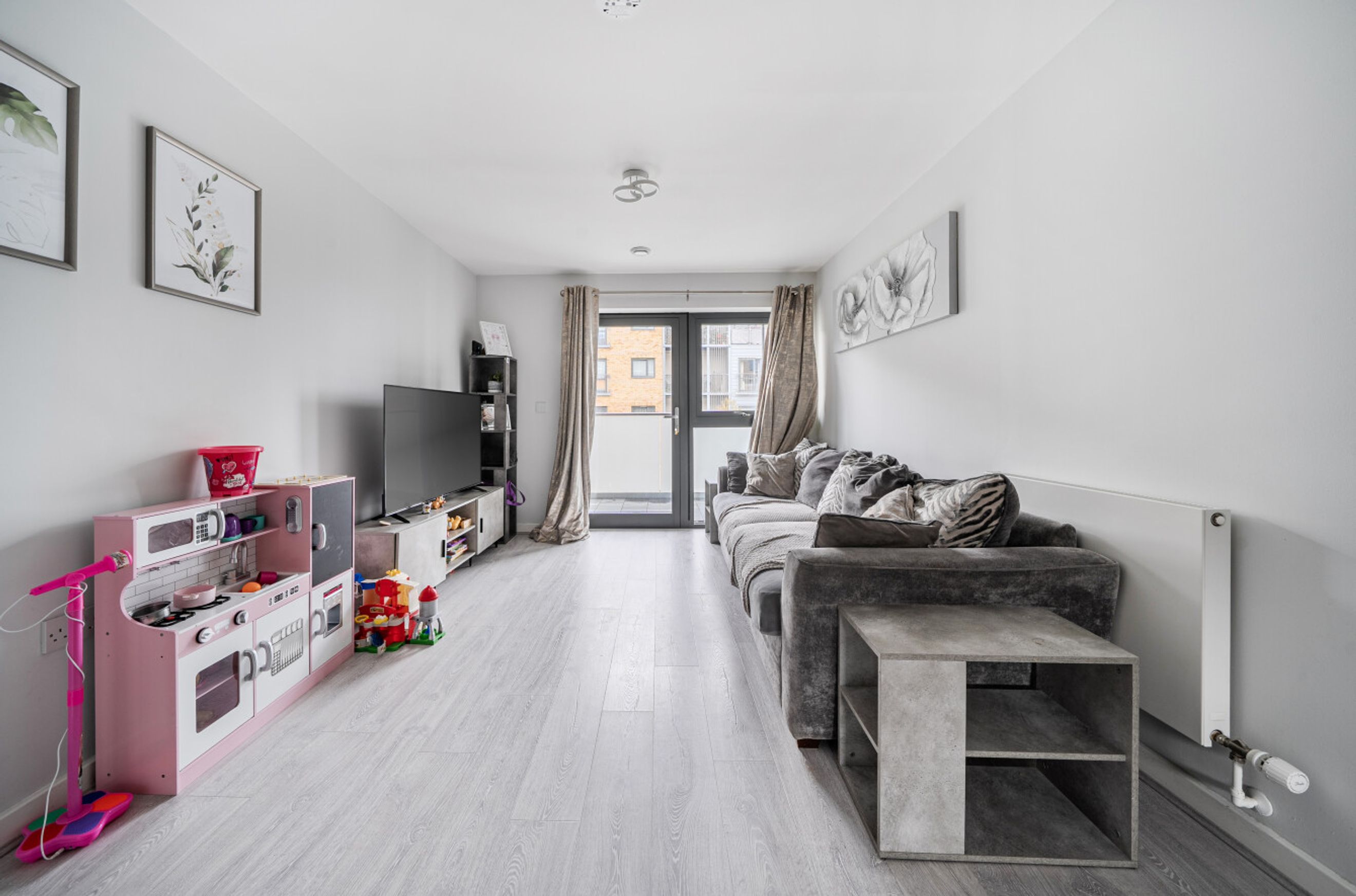 This well-presented apartment is on the second floor of a recently-constructed development and has a twenty-six-foot reception room with a balcony at one end and an open-plan kitchen, featuring attractive, walnut-style units, at the other. The two bedrooms are good-sized doubles and there is a simple yet stylish and naturally-lit bathroom. A large storage/utility cupboard has been provided in the entrance hallway and modern insulation standards combined with high performance glazing and a communal heating/hot water system have resulted in a very good energy-efficiency rating. The apartment comes with a parking space and the A13 offers a direct route into central London or out to the M25. Rainham town centre or railway station can also be easily reached by bus or bike. Blueberry Court has a communal courtyard plus nearby Beam Parklands Country Park offers many acres of outside space to explore. Newtons Primary School, which is very close by, is Ofsted-rated 'Good' and there are several other well-thought-of schools in the local area.