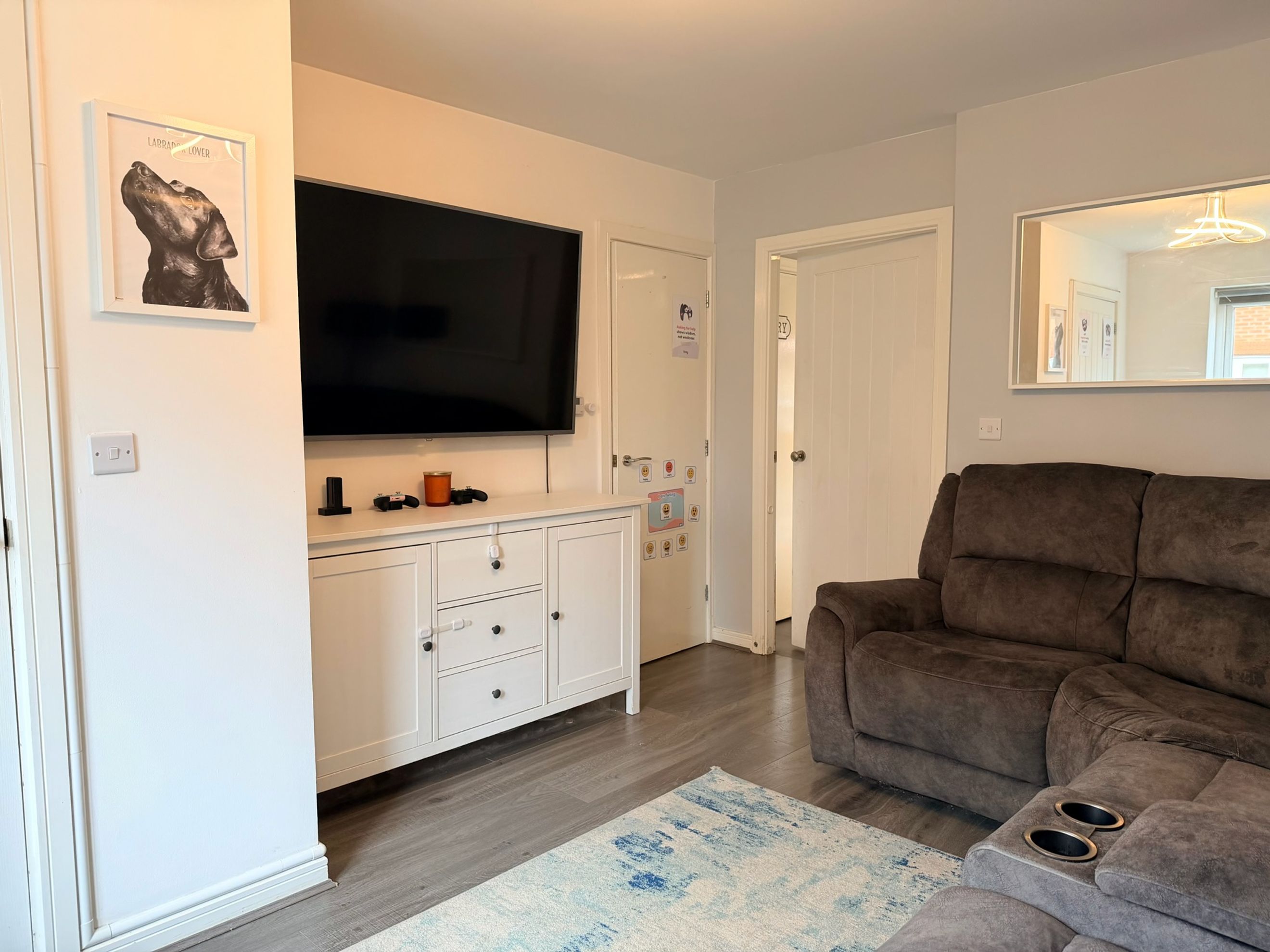 Outside, the home benefits from a generous rear garden with a large patio and decking area, ideal for relaxing or entertaining. A private driveway provides off-road parking for two cars, with EV charger wiring already installed. With plenty of open green spaces, parks and a local shop nearby, this home is a rare opportunity to purchase a two-bedroom semi-detached property with parking in a sought-after community.