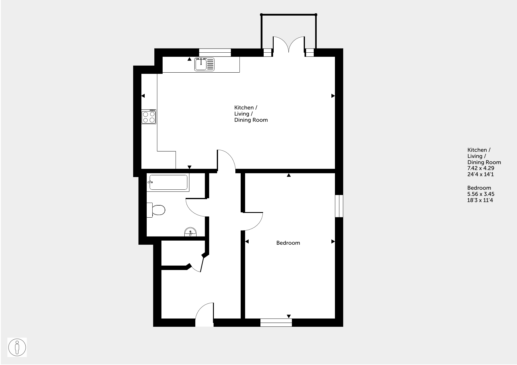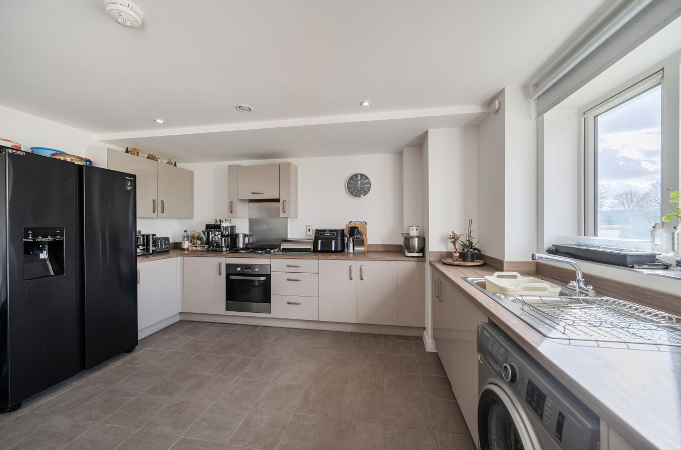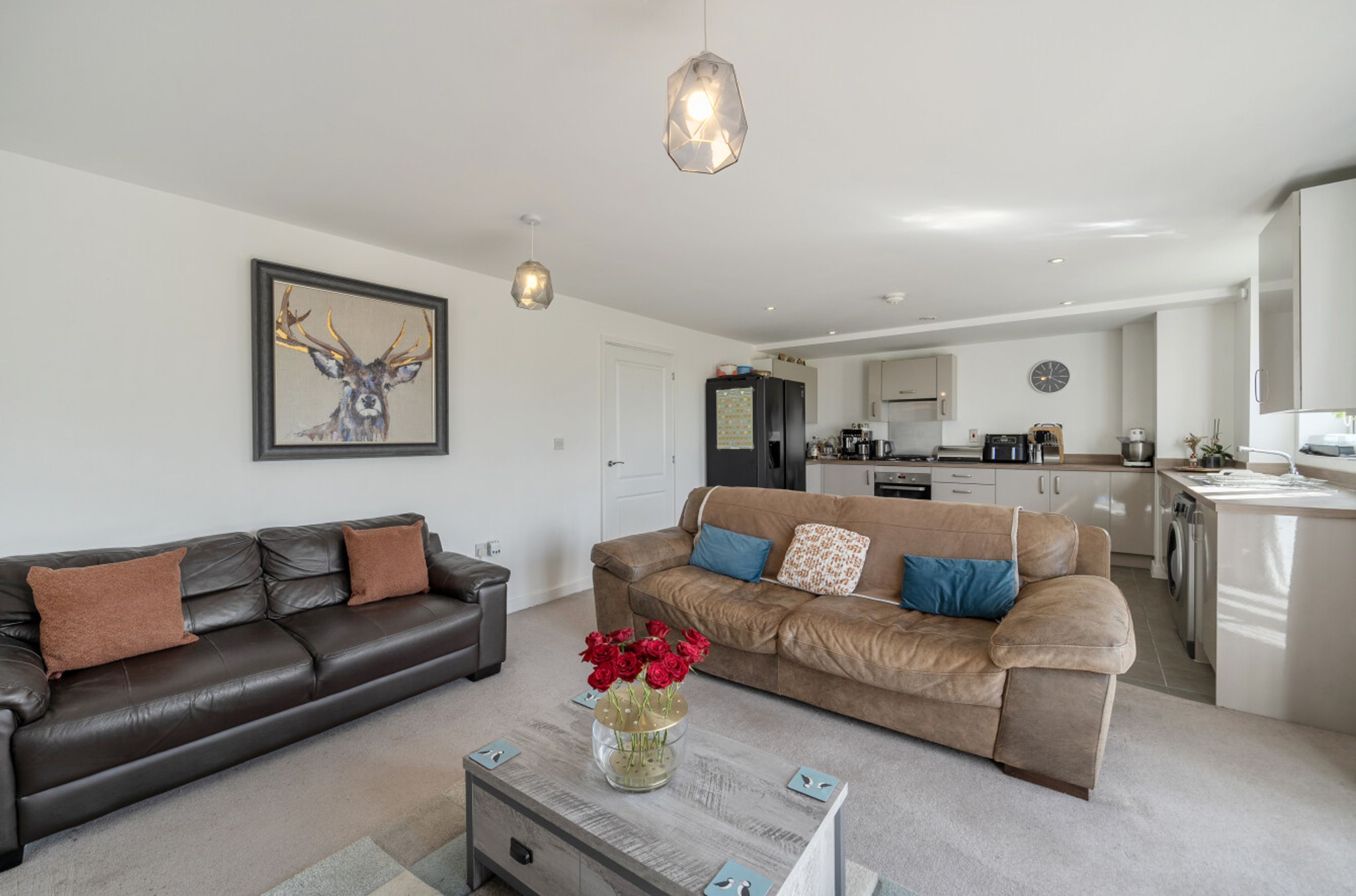 Featuring an open-plan living area with doors leading out onto your balcony. The kitchen has an integrated oven, hob and hood.