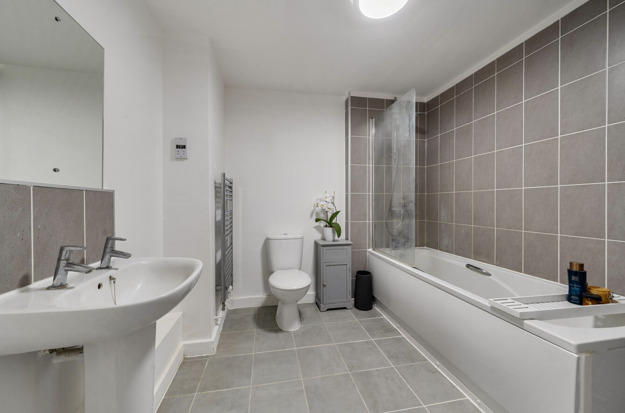 There is one double bedroom. The bathroom has a modern, white suite. You'll also have an allocated parking space.