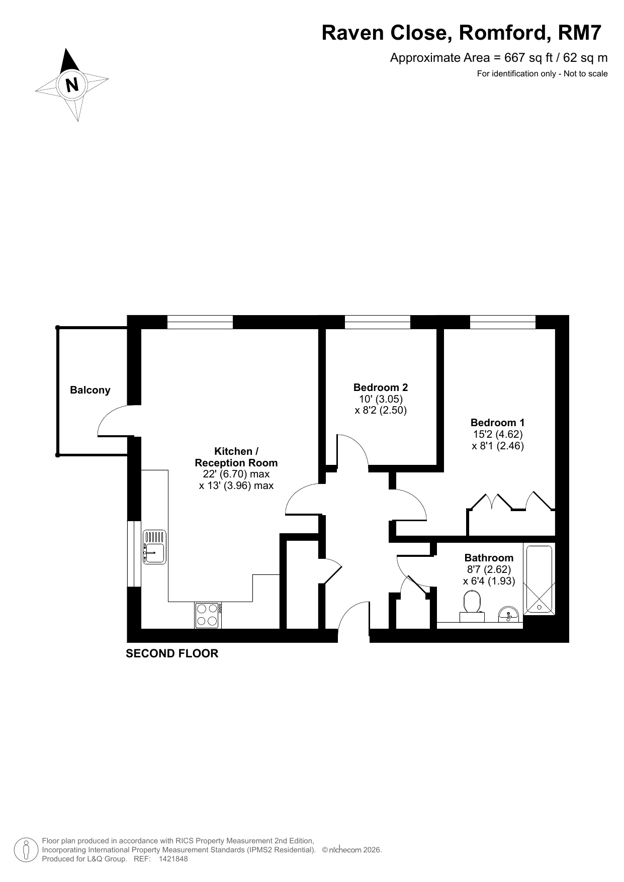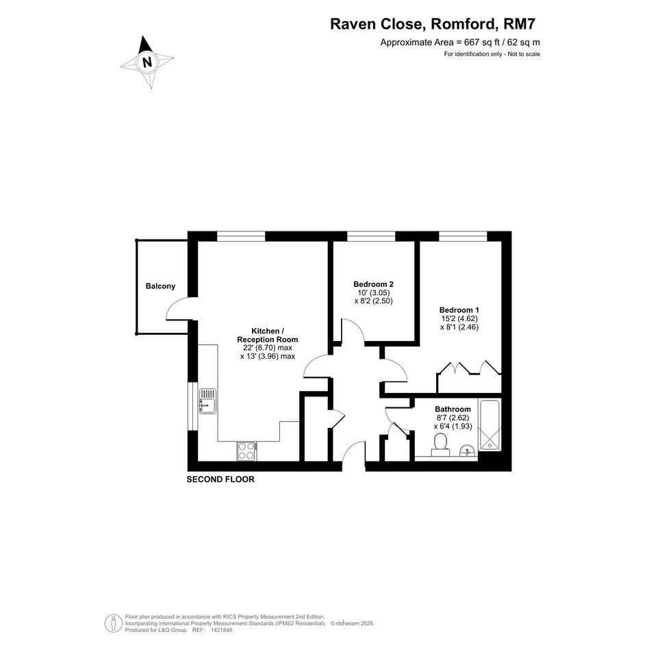 2 bedroom flat. Located in Romford