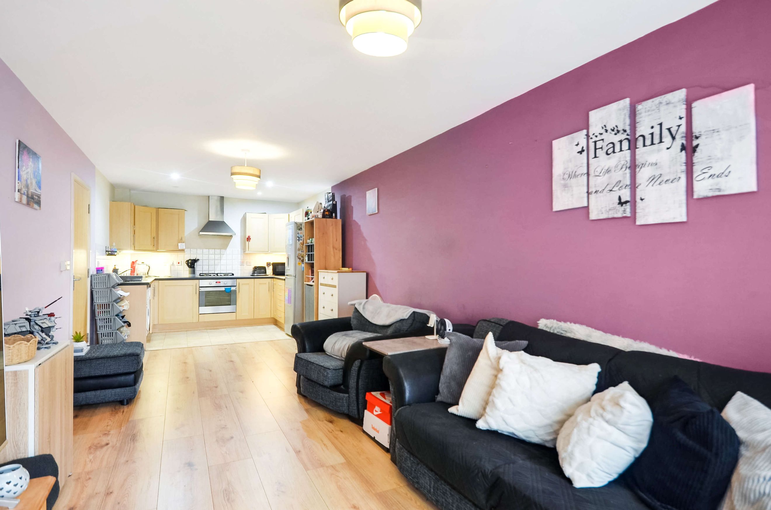 A modern 1-bedroom apartment with access to communal gardens in Feltham. Available through Shared Ownership from £77,000 for a 35% share of £220,000.