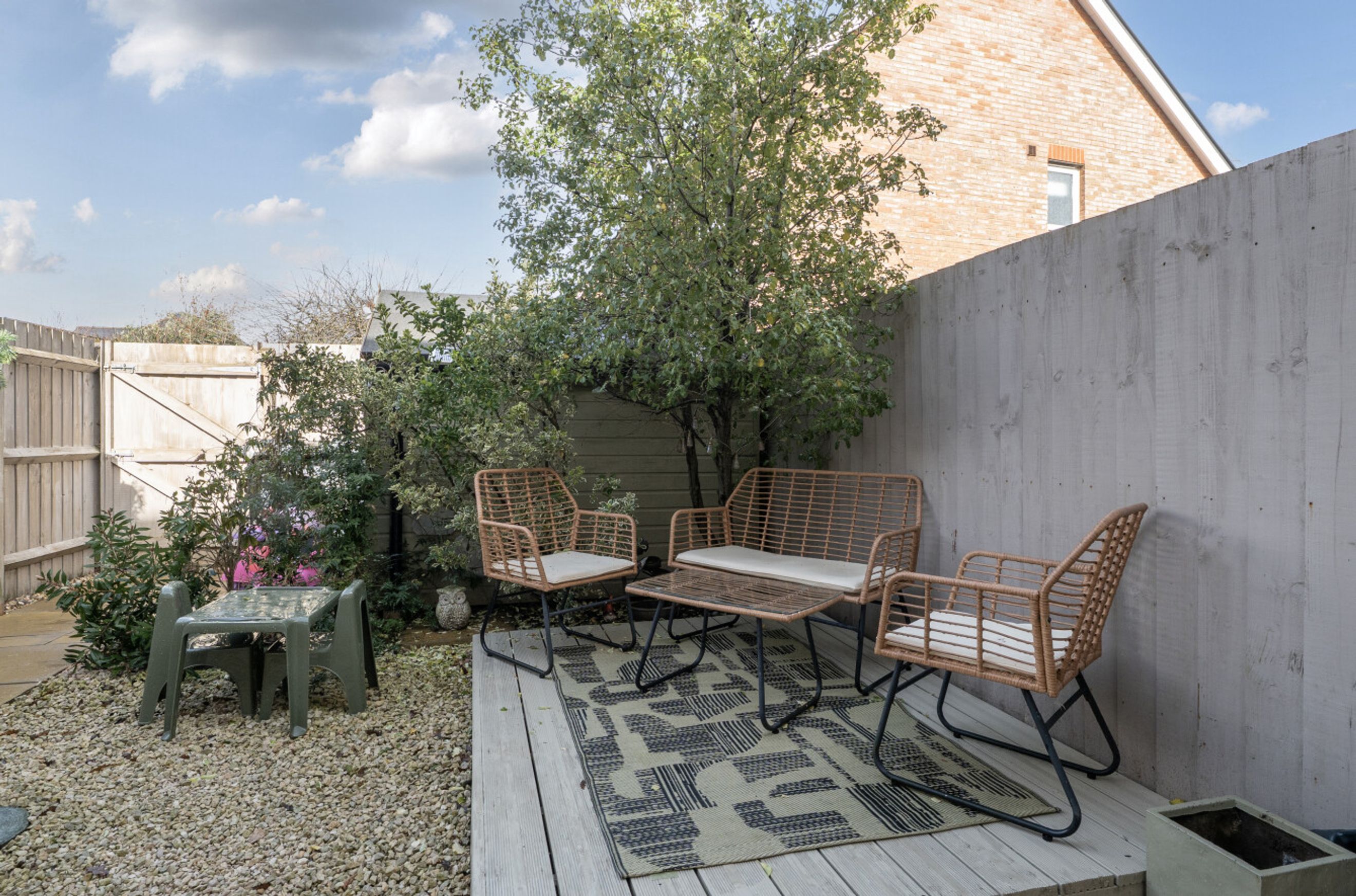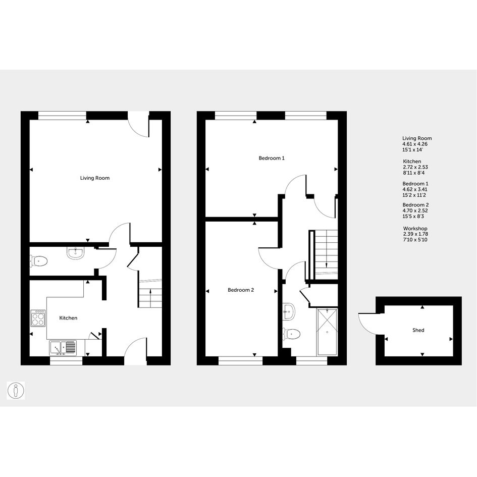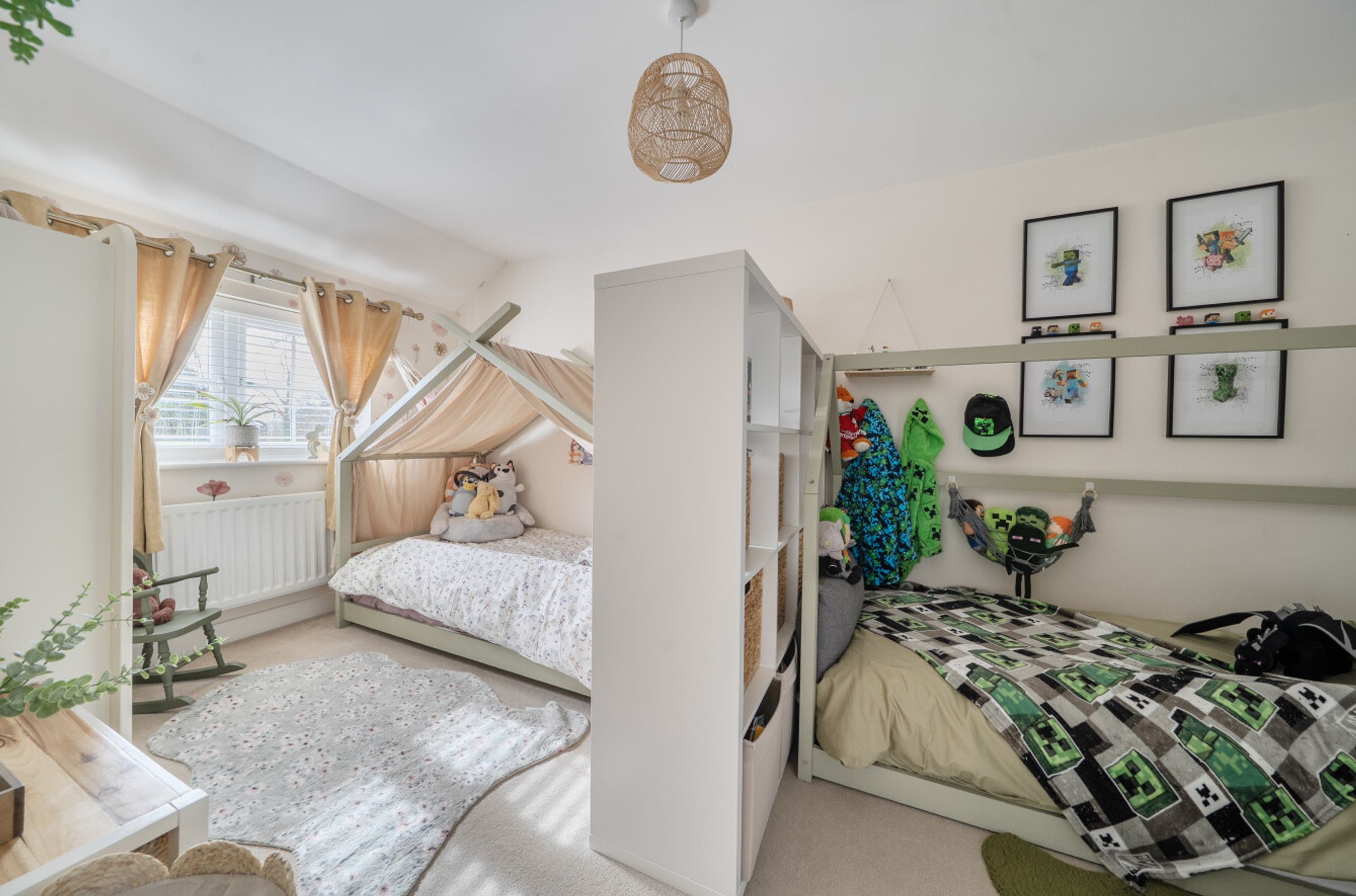 Upstairs, there are two double bedrooms. The bathroom has a modern, white suite.