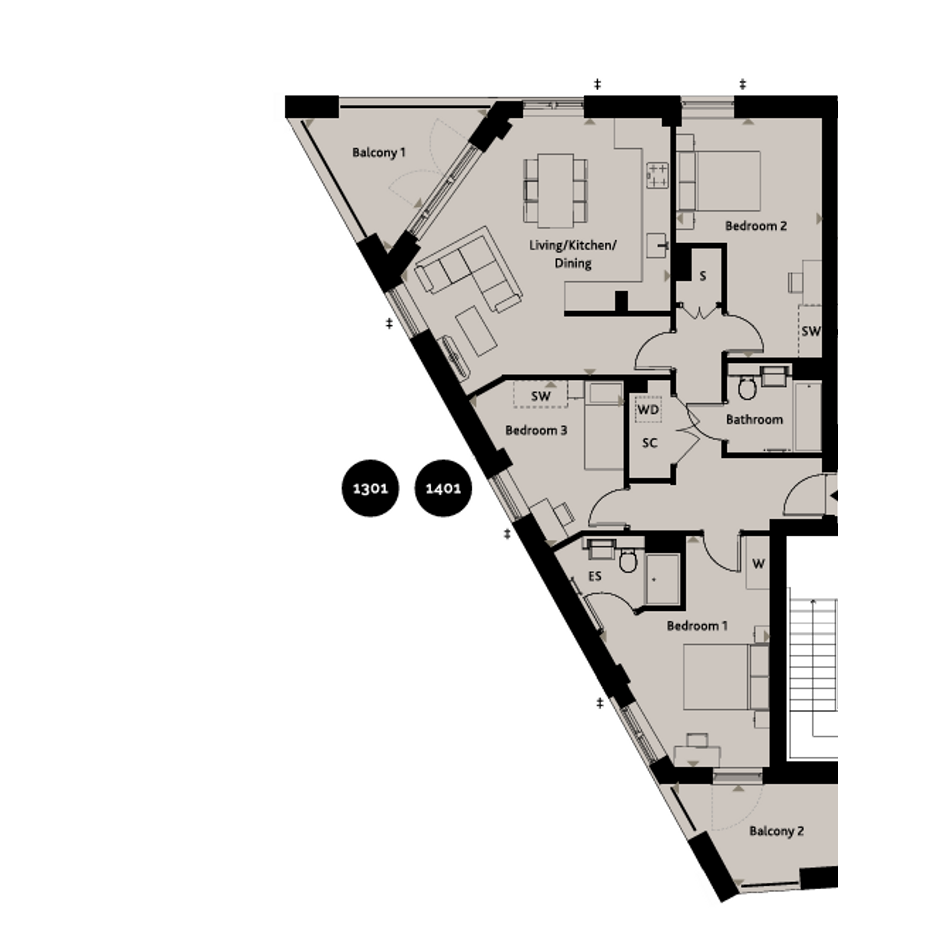 From £17,500 deposit this stunning three bedroom, two bathroom 13th floor apartment with two private balconies could be your next home.