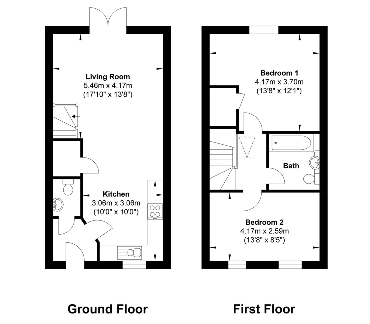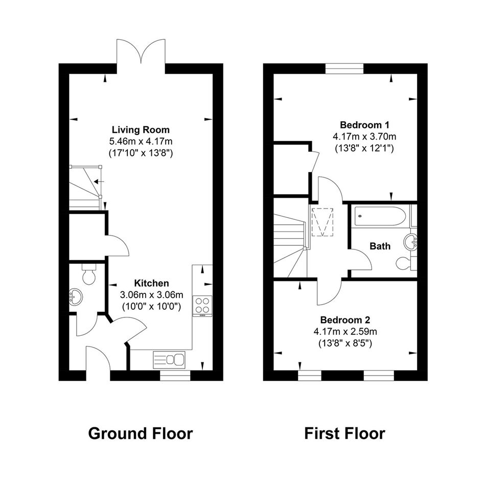 To the first floor are two well-proportioned double bedrooms, both offering comfortable and versatile accommodation. A stylish modern family bathroom completes the upstairs accommodation.