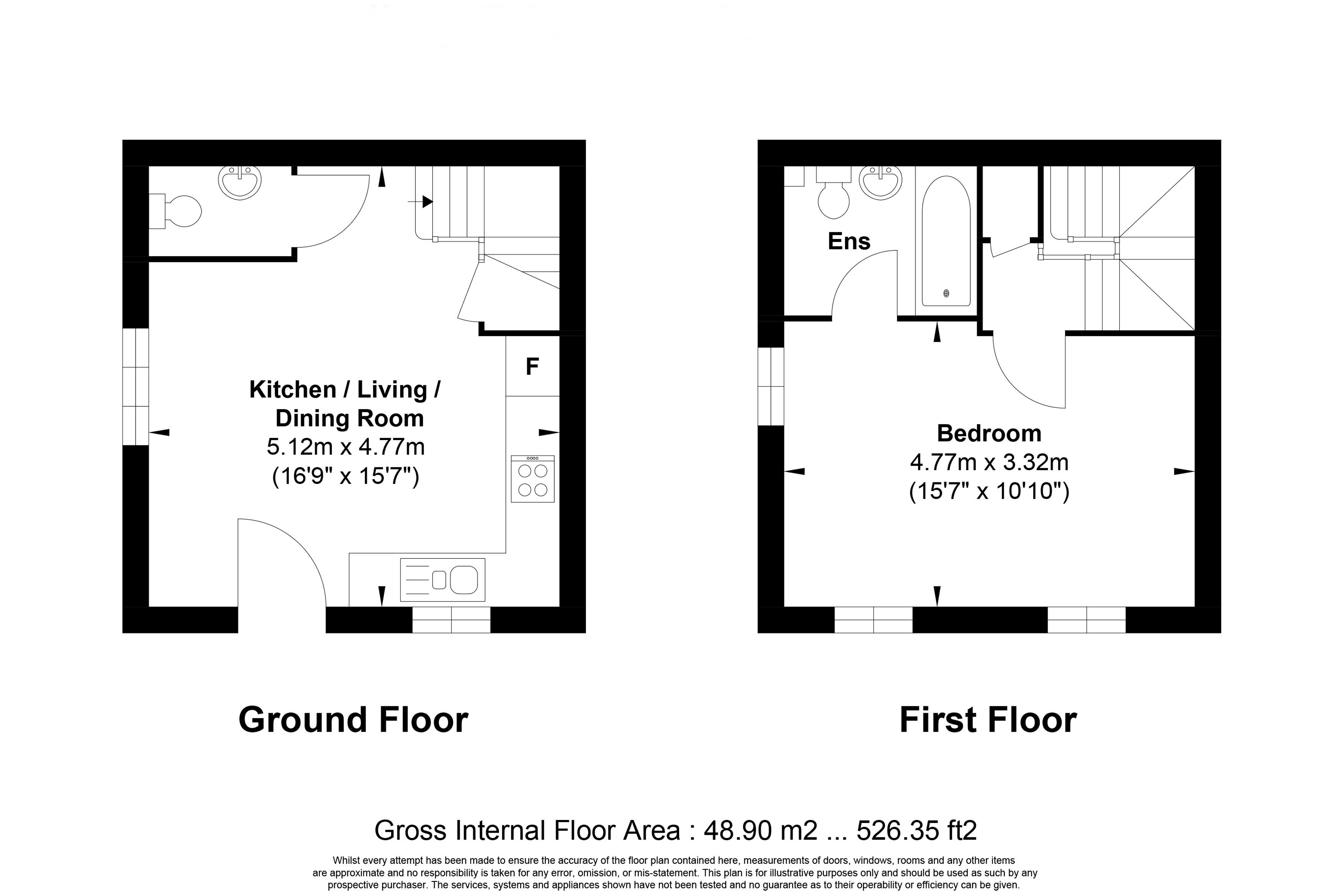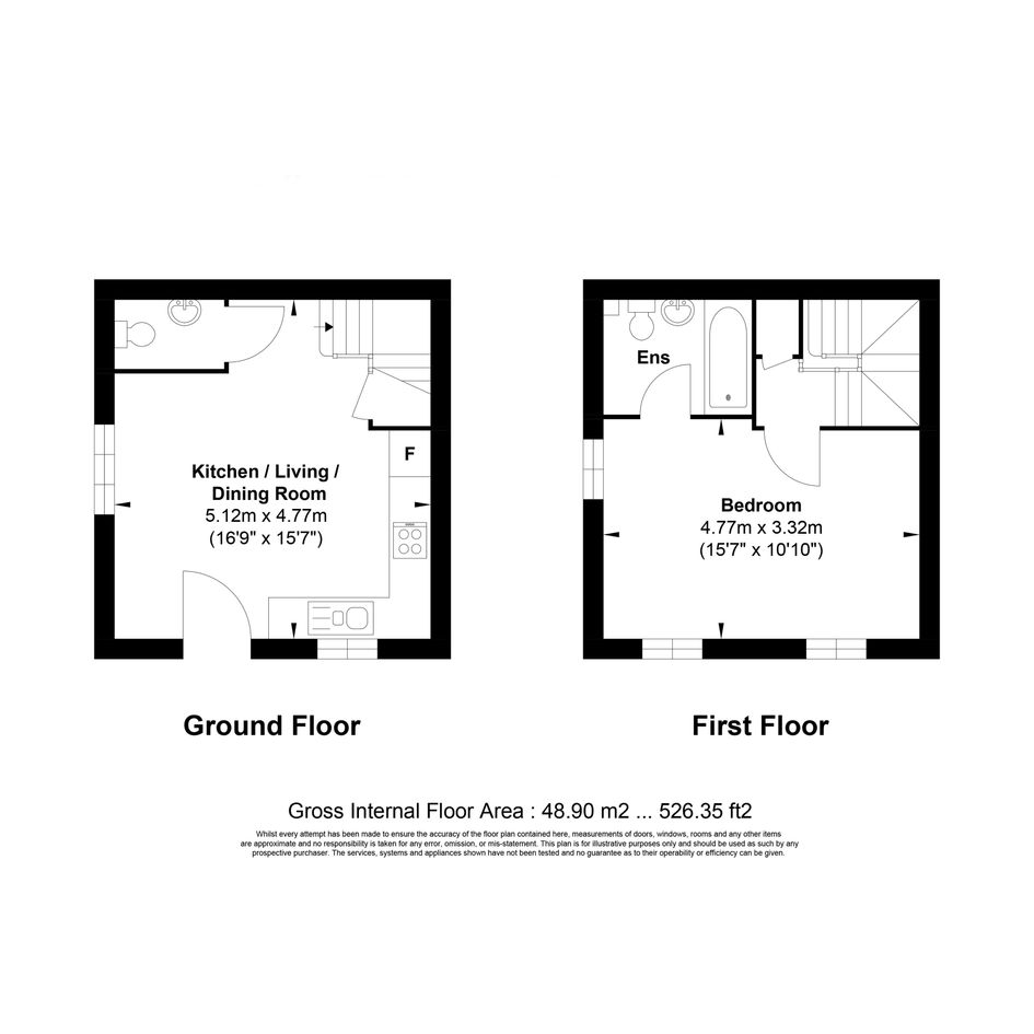 A modern, comfortable one-bedroom home. Stepping through the front door, you enter the main room featuring a bright kitchen combined with the Living room to maximize the space. A practical downstairs WC completes the ground floor.