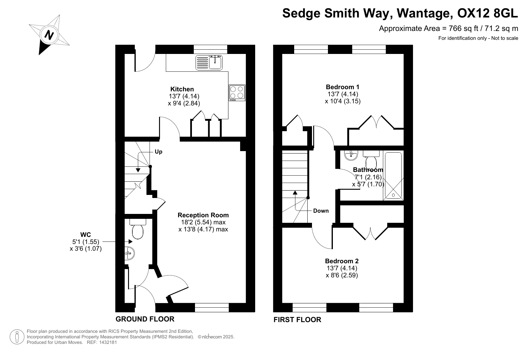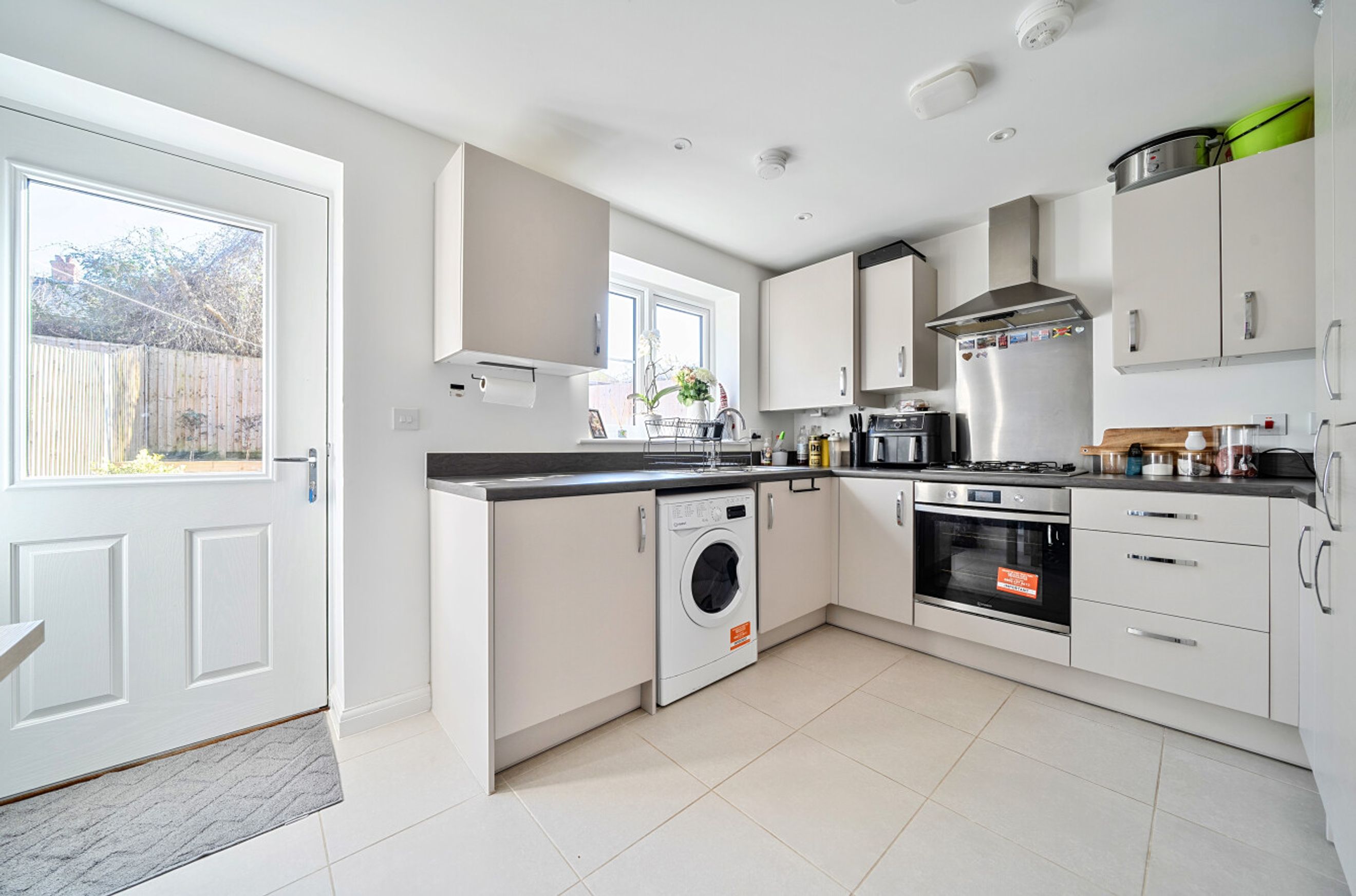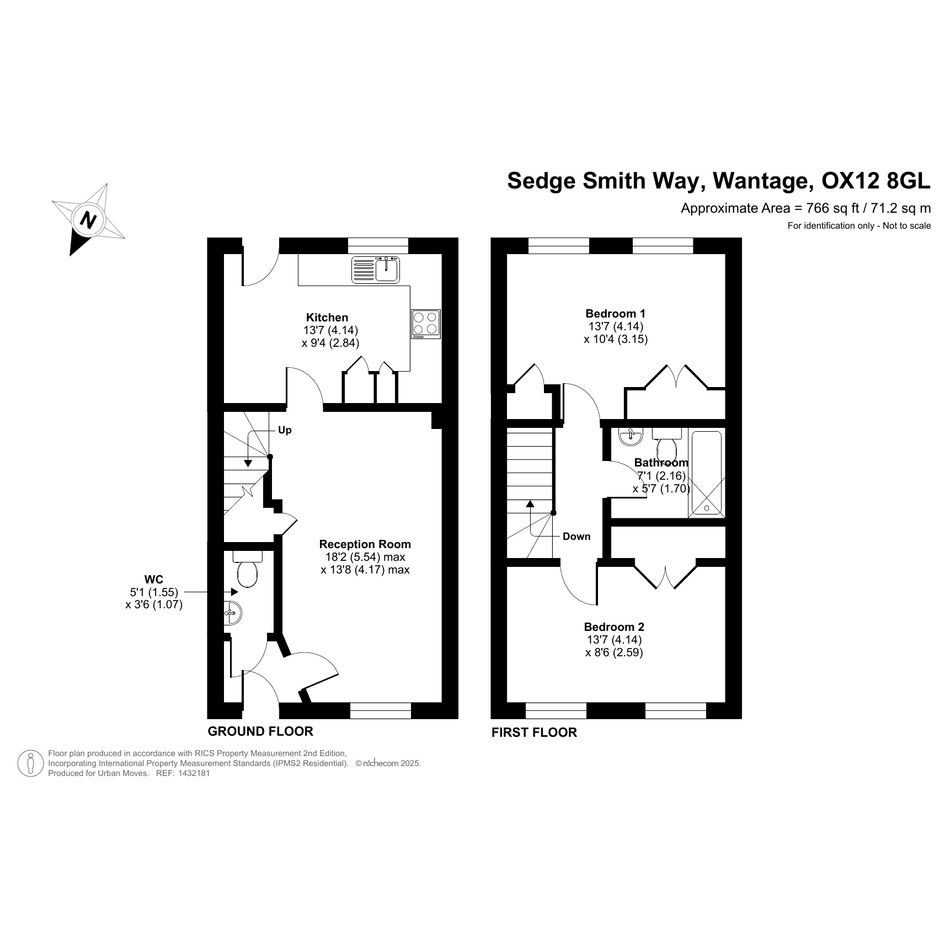 A smartly-presented, mid-terrace house which forms part of a recently-built development on the east side of Wantage. The property has a cloakroom/WC just off the entrance hall and a spacious reception room. At the rear is a kitchen/dining room with a door that leads out to a south/south-east-facing garden with patio and raised beds. On the first floor of the house are two good-sized double bedrooms. The slightly smaller of the two is currently used as the 'main' bedroom and features attractive wood-panelling and wall-mounted bedside lights. Both bedrooms include built-in storage and there is a simple yet stylish bathroom. Well insulated walls, roof and floor, high performance glazing and a modern gas central heating system all contribute towards a very good energy-efficiency rating. The property comes with the use of two parking spaces and is also within easy walking distance, or a very brief cycle ride of the town centre. Ofsted list five schools (four primaries and a secondary) within a one-mile radius, all rated either 'Good' or 'Outstanding'.