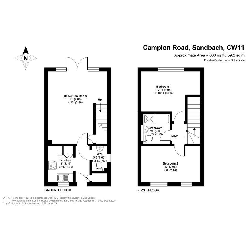 This recently-constructed property forms one end of a short, three-house terrace. At the front is a stylish kitchen with integrated appliances, including a double oven, plus a built-in storage/utility cupboard and naturally-lit cloakroom/WC on the opposite side of the entrance hall. The remainder of the ground floor is devoted to a reception room with attractive flooring and patio doors that lead out to the rear garden. The garden can also be accessed via a side gate. Upstairs, on the first floor of the house, are two good-sized double bedrooms and a smart, modern bathroom. Well insulated walls, roof and floor, high performance glazing and gas central heating all contribute towards a very good energy-efficiency rating. The property comes with two parking spaces and Sandbach Railway Station or the town centre can also be reached by brief bike ride. Junction 17 of the M6 is less than a ten-minute drive (Google Maps estimate) if travelling further afield. Ofsted list five primary schools and two secondaries within a mile radius of Campion Road, all rated 'Good'.