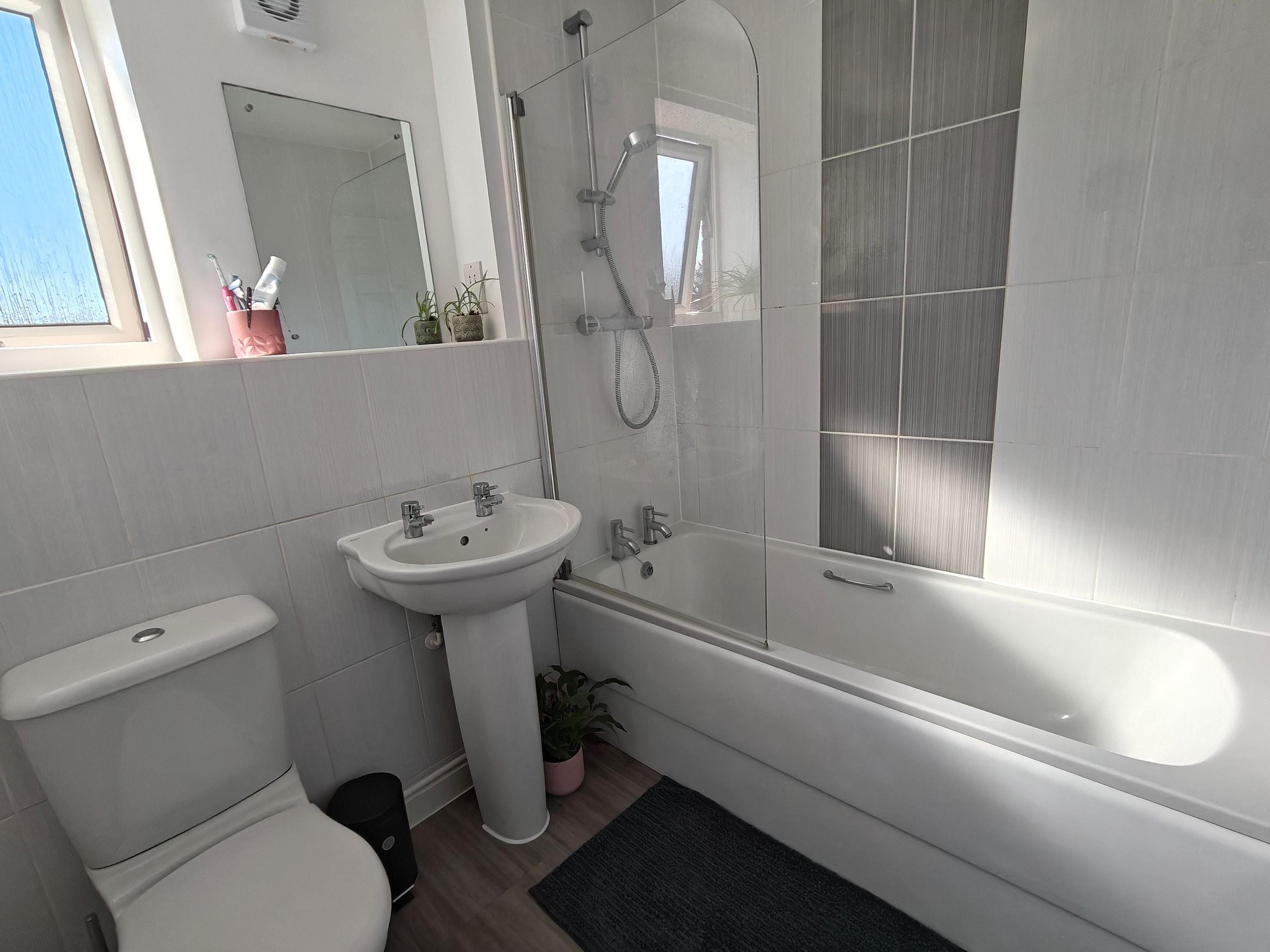 Upstairs there are two generous double bedrooms and a family bathroom with a bath and shower. There is also an airing cupboard with lots of storage and a large storage cupboard. There is a built in double wardrobe in the primary bedroom.