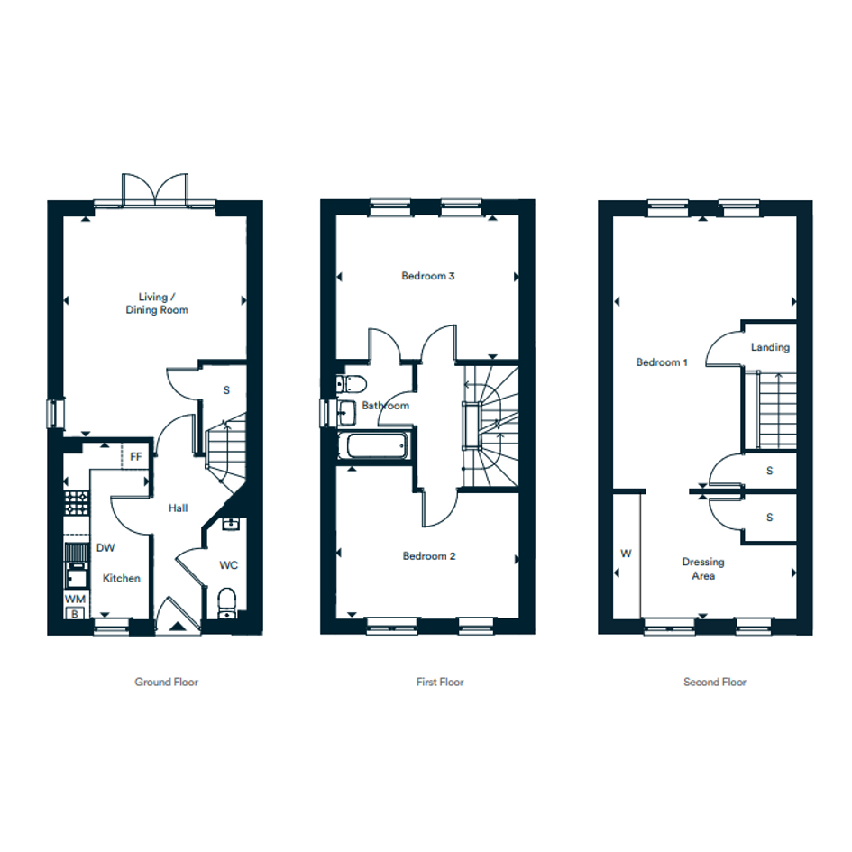 Plot 97 is a stunning 3 bedroom detached townhouse with a separate kitchen and integrated appliances fitted as standard. Offering a light and airy living/dining room leading out to the garden. Three generously sized carpeted bedrooms with a fitted wardrobe and dressing area in bedroom one. Ample storage space throughout with lighting. This home includes solar panels.