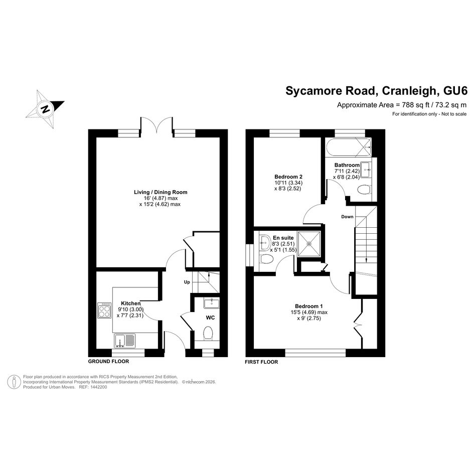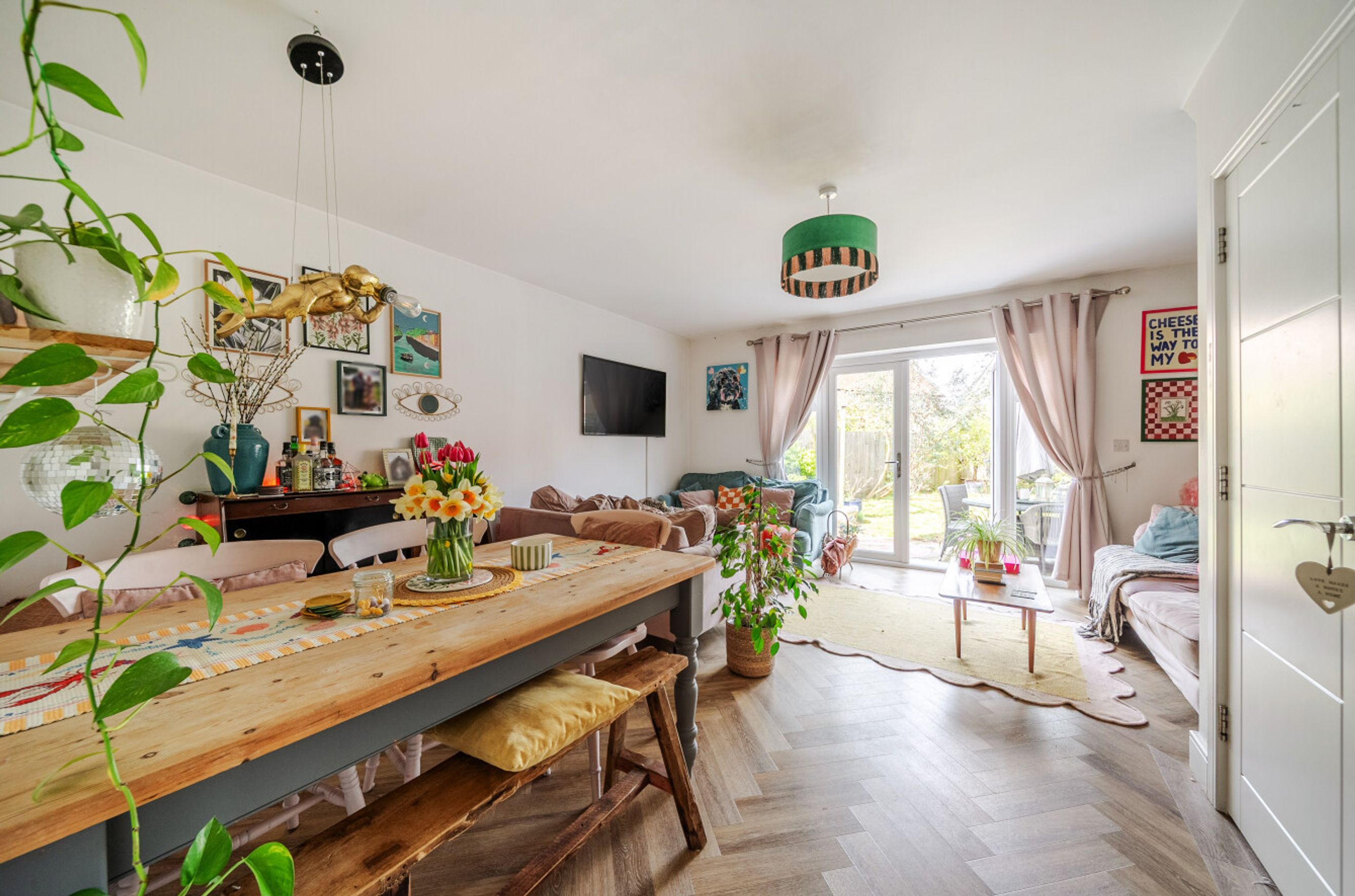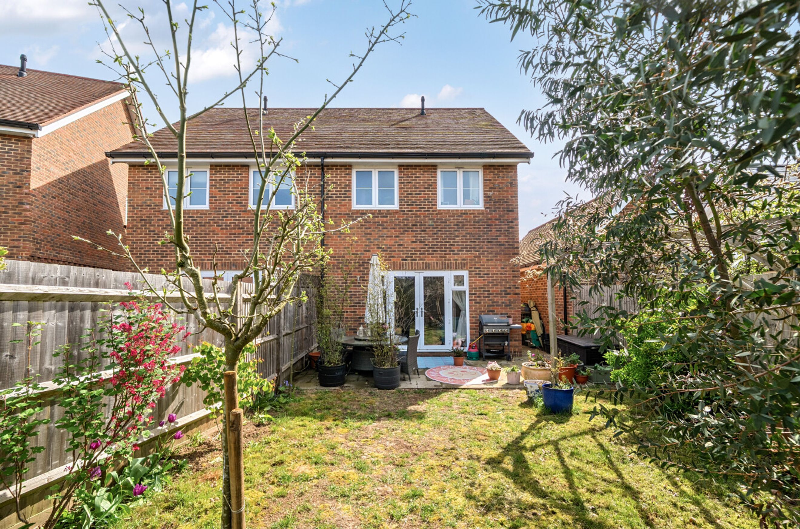This attractive, semi-detached property has a conventional, modern layout with a ground-floor cloakroom and good-sized kitchen at the front while at the rear is a spacious reception/dining room with herringbone-style flooring. Double doors open onto a pleasant rear garden with patio and lawn. The garden can also be accessed via a side gate. On the first floor of the house is a main bedroom with built-in wardrobe and en-suite shower room plus a second double bedroom and a sleek, naturally-lit bathroom. Well insulated walls, roof and floor, high performance glazing and gas central heating all contribute towards a very good energy-efficiency rating. The property comes with two forecourt parking spaces and is also just a brief bike ride from Cranleigh High Street. The village, considered by some to be the largest in Britain, has an arts centre and leisure centre, along with a range of shops and other amenities. Knowle Country Park is a recently-developed nature reserve which offers beautiful, outside space to enjoy as well as hosting occasional events. Guildford is approximately nine miles to the north-west, Horsham around fourteen miles south-east.