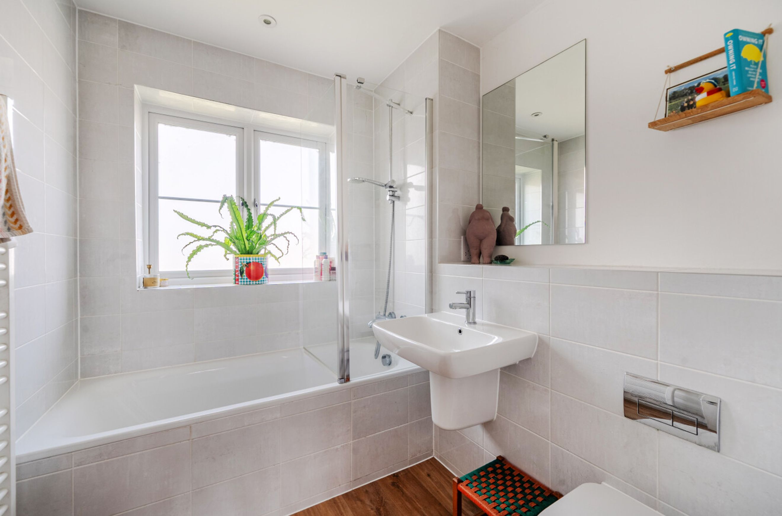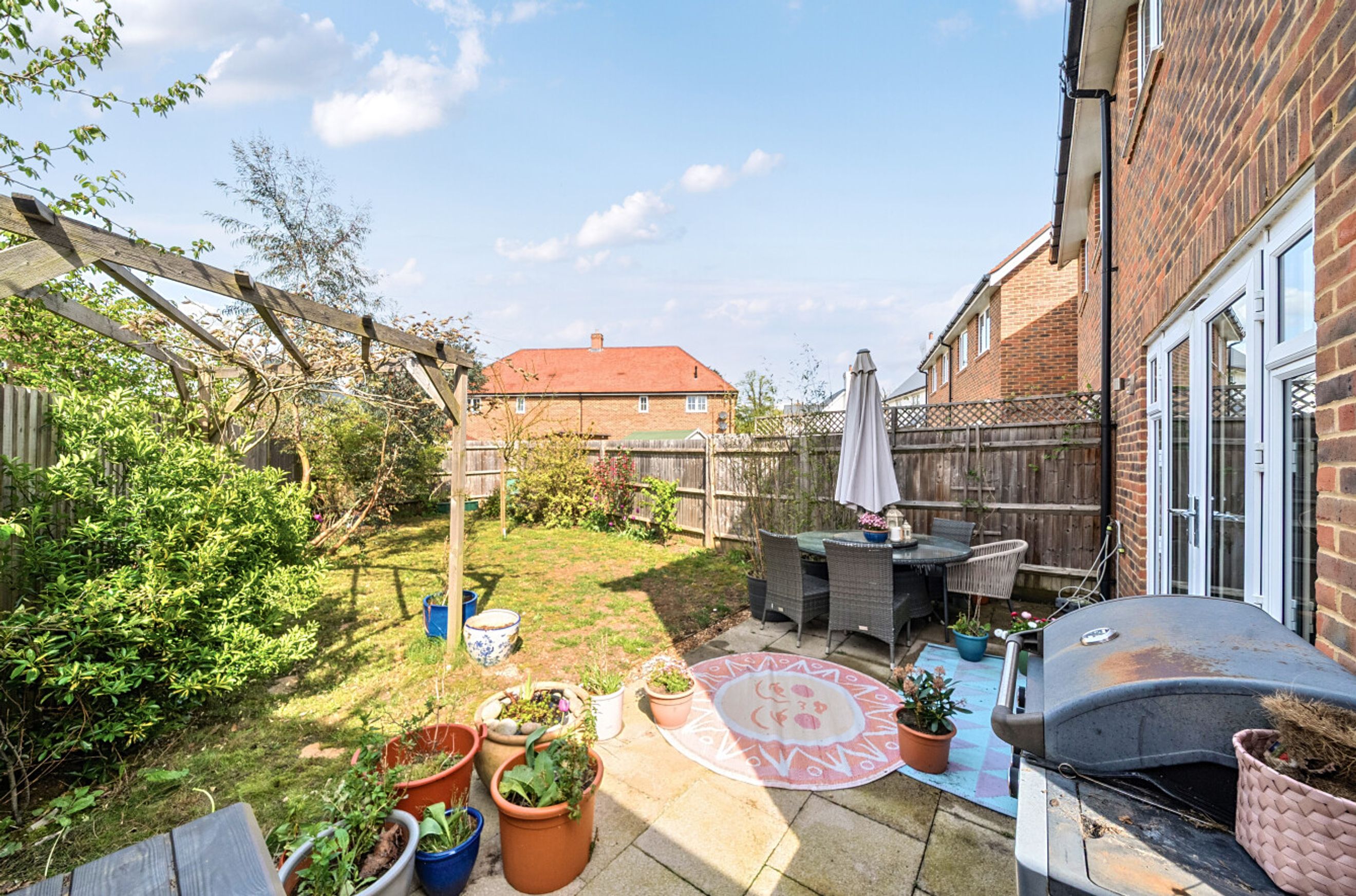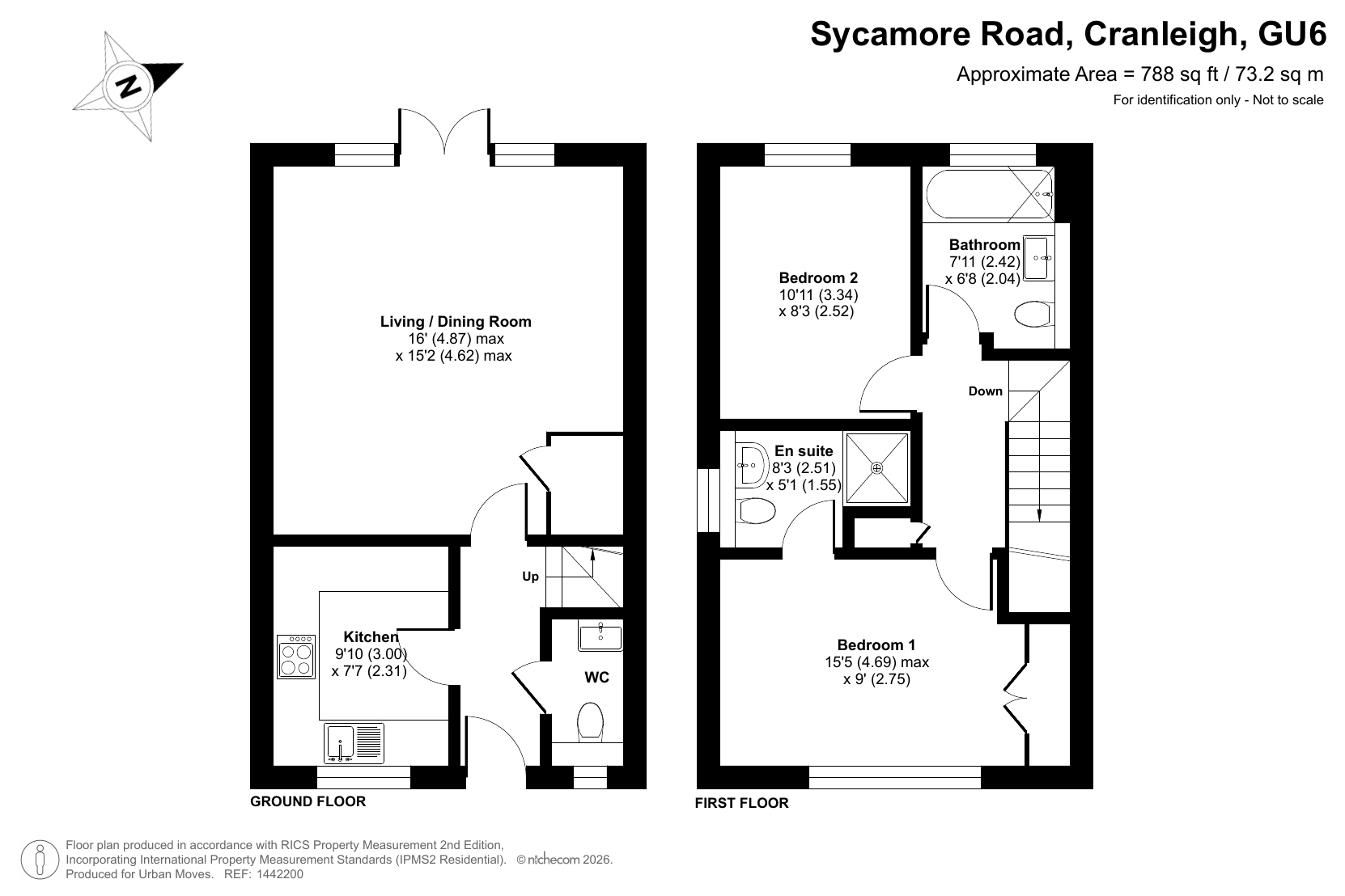 This attractive, semi-detached property has a conventional, modern layout with a ground-floor cloakroom and good-sized kitchen at the front while at the rear is a spacious reception/dining room with herringbone-style flooring. Double doors open onto a pleasant rear garden with patio and lawn. The garden can also be accessed via a side gate. On the first floor of the house is a main bedroom with built-in wardrobe and en-suite shower room plus a second double bedroom and a sleek, naturally-lit bathroom. Well insulated walls, roof and floor, high performance glazing and gas central heating all contribute towards a very good energy-efficiency rating. The property comes with two forecourt parking spaces and is also just a brief bike ride from Cranleigh High Street. The village, considered by some to be the largest in Britain, has an arts centre and leisure centre, along with a range of shops and other amenities. Knowle Country Park is a recently-developed nature reserve which offers beautiful, outside space to enjoy as well as hosting occasional events. Guildford is approximately nine miles to the north-west, Horsham around fourteen miles south-east.