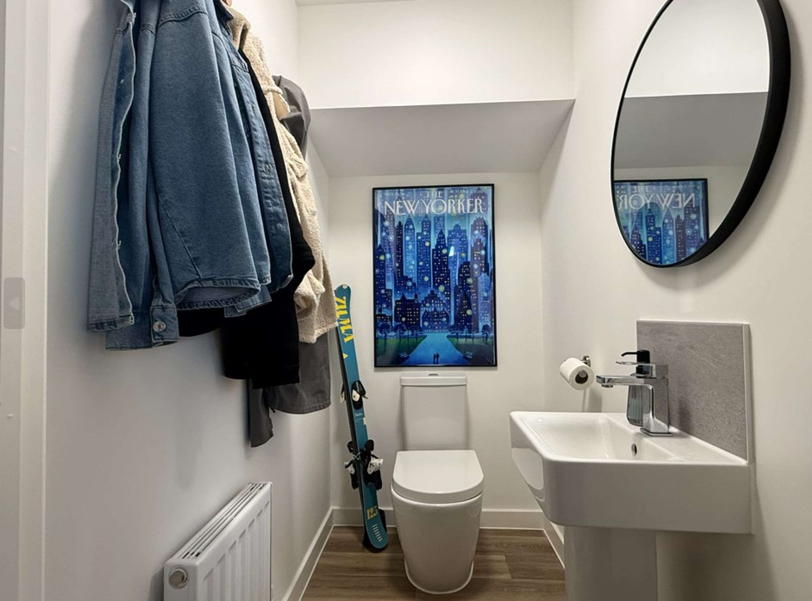 A beautifully presented two‑bedroom semi‑detached home set in a quiet cul‑de‑sac with no through traffic, ideally suited to families and commuters. The property opens into a welcoming entrance hall leading to a spacious living room with useful understairs storage, and a separate kitchen/dining room offering ample cupboard space, an oven, hob, extractor, and room for a washing machine and fridge freezer, with doors opening onto the private rear garden. A downstairs cloakroom completes the ground floor.