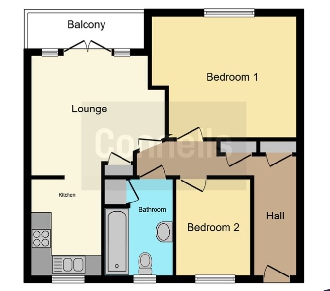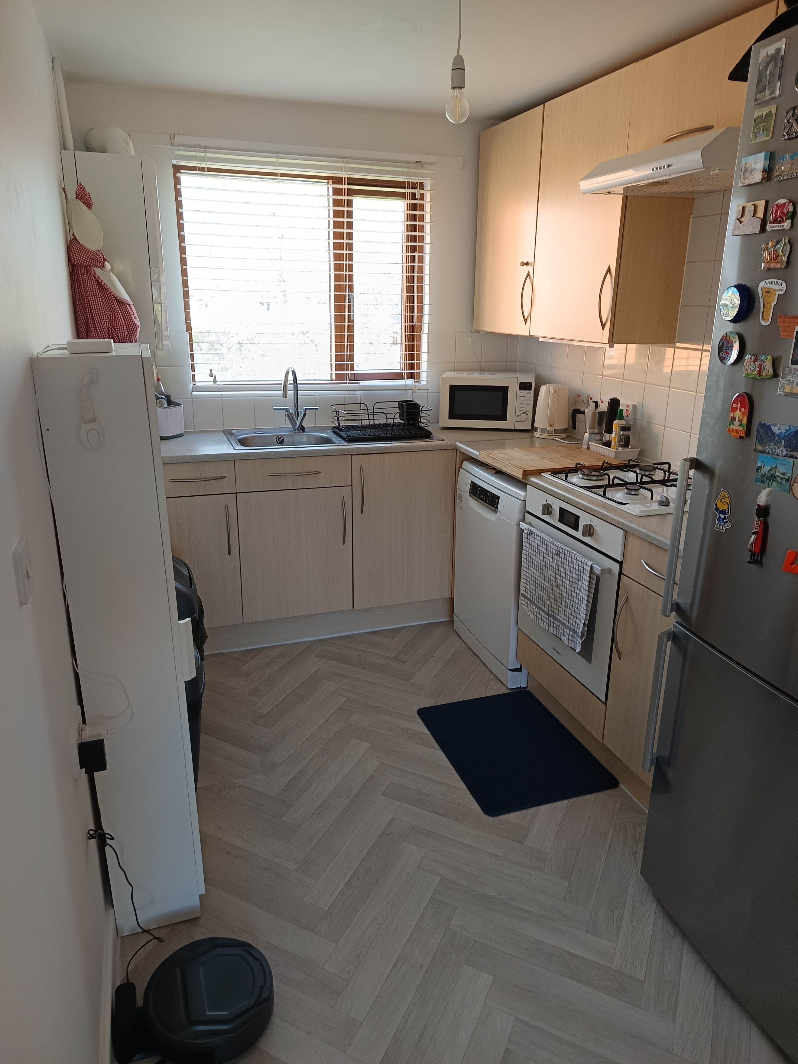 This well‑proportioned two‑bedroom first‑floor flat in Basingstoke offers spacious living in a highly convenient location. The property opens into an entrance hall with two useful storage cupboards, leading into a bright and airy open‑plan lounge and kitchen. This generous living space includes an additional storage cupboard and access to a private balcony, perfect for relaxing outdoors. The kitchen is fitted with an oven, hob and extractor, with designated space for your own washing machine and fridge freezer. There are two bedrooms—one comfortable double and one single—alongside a family bathroom featuring a three‑piece suite with a shower over the bath and an additional storage cupboard.