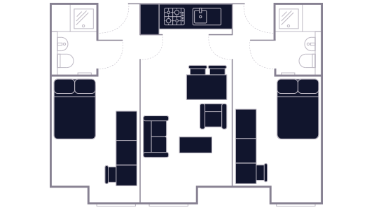 The communal kitchen, dining and lounge areas have everything you need (fridge, freezer, oven, storage space) and are great social spaces to enjoy with friends.