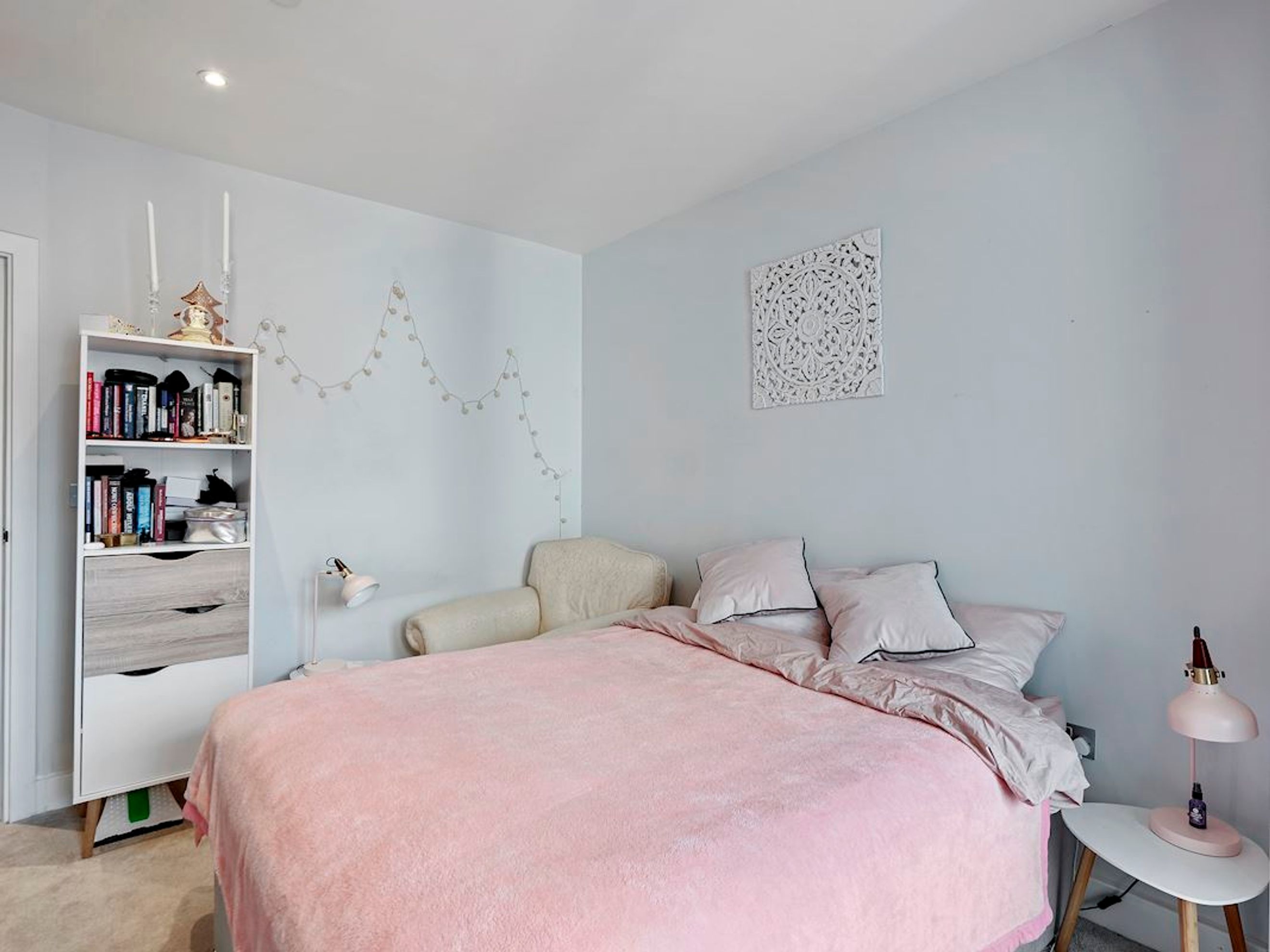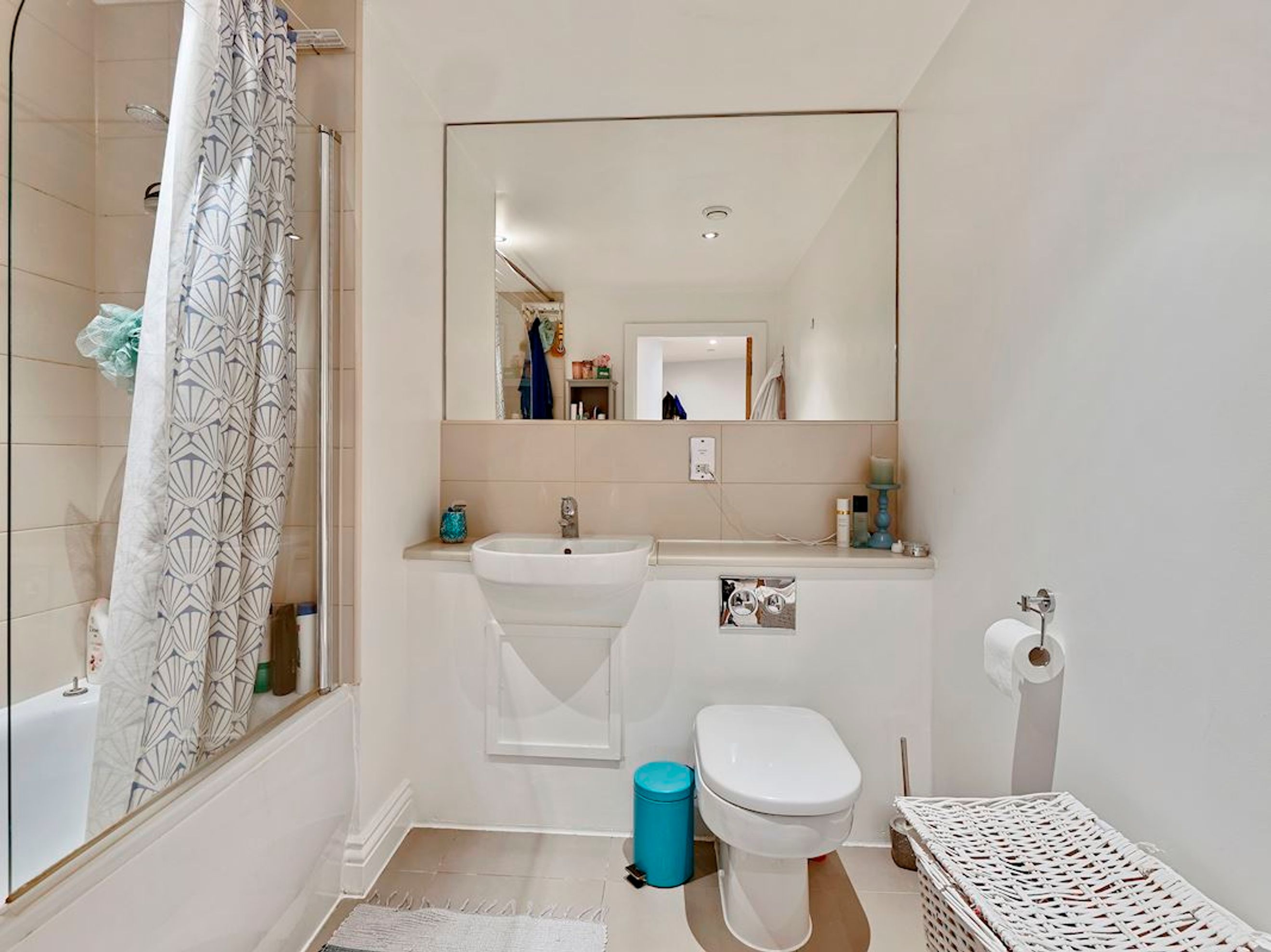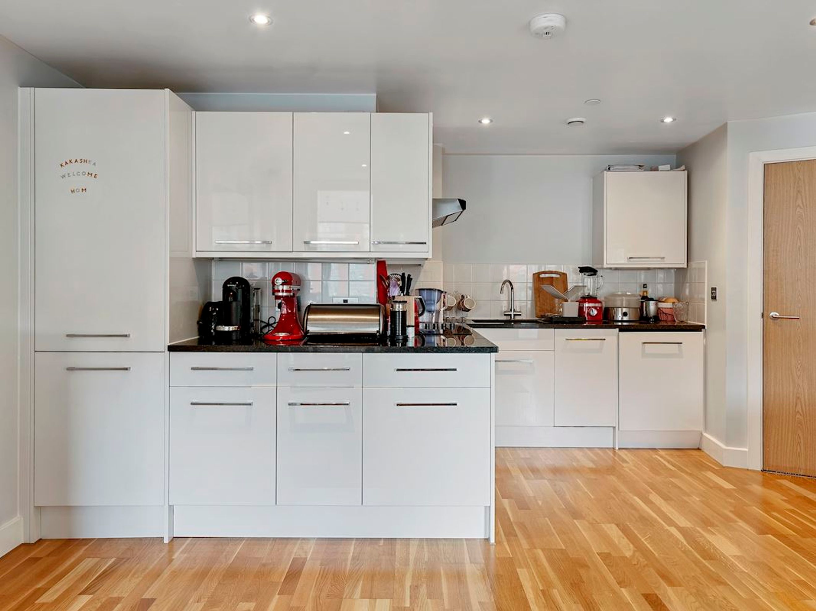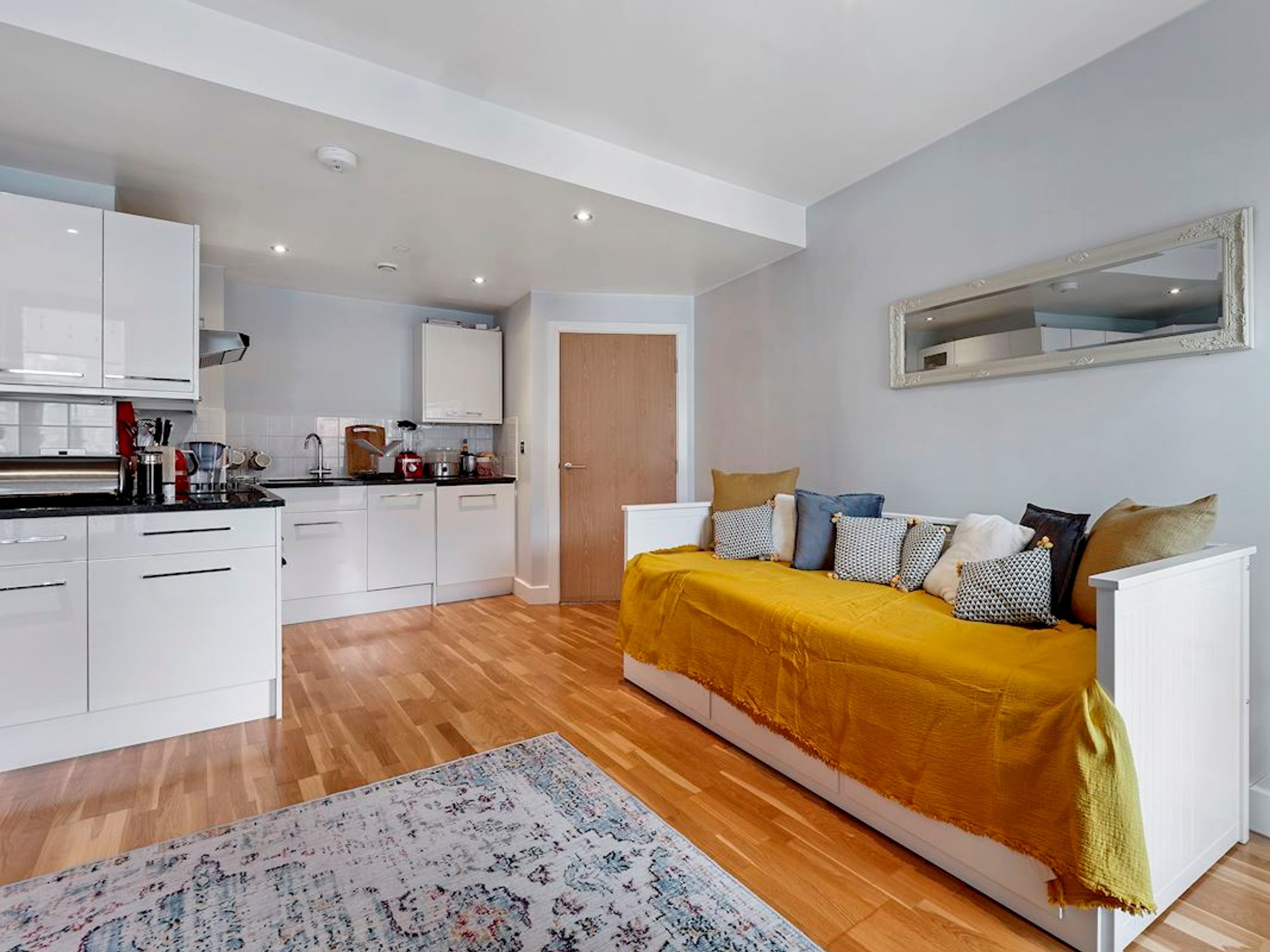 Hallway, bathroom, bedroom, kitchen/lounge.