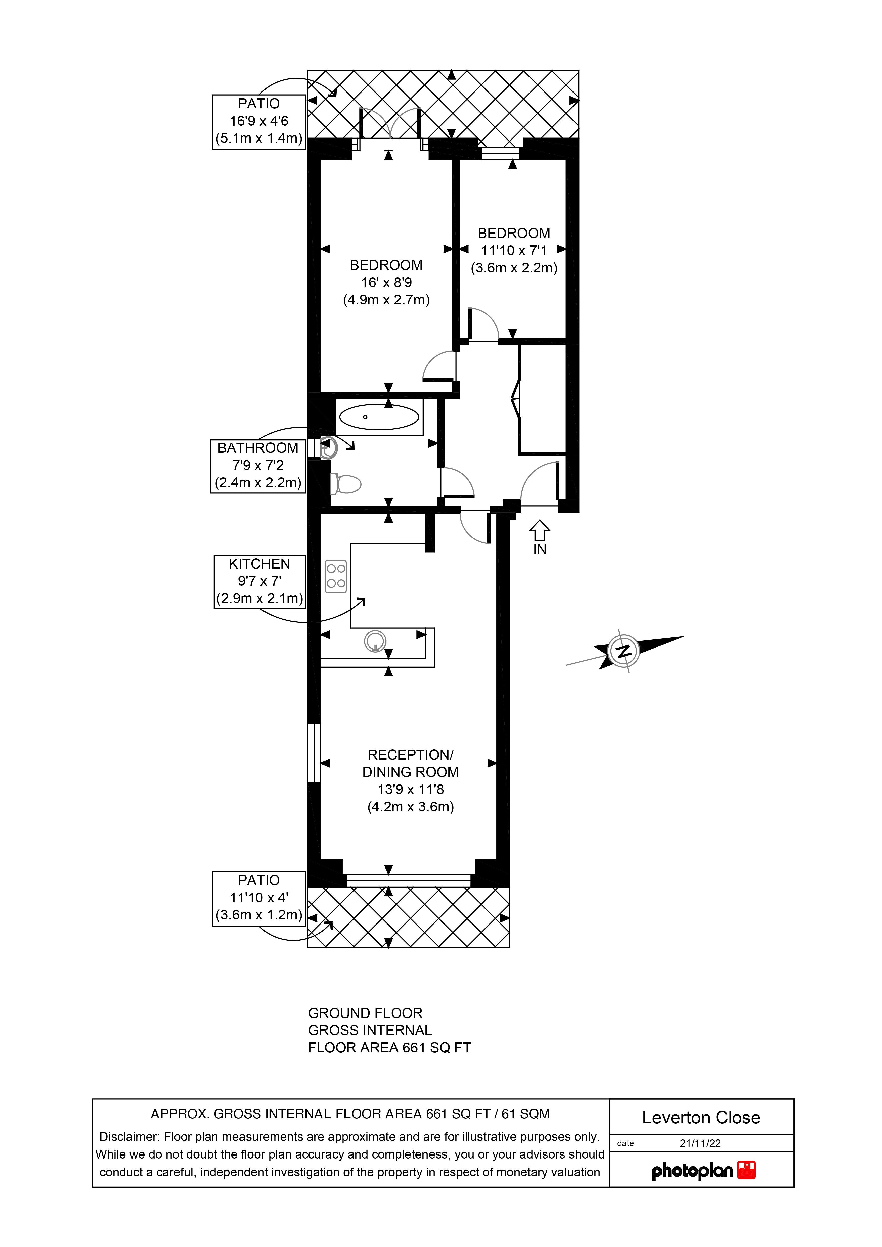 Two-bedroom ground floor flat in Wood Green, Haringey. Offering 60 sqm of internal floor area with double private outdoor space.