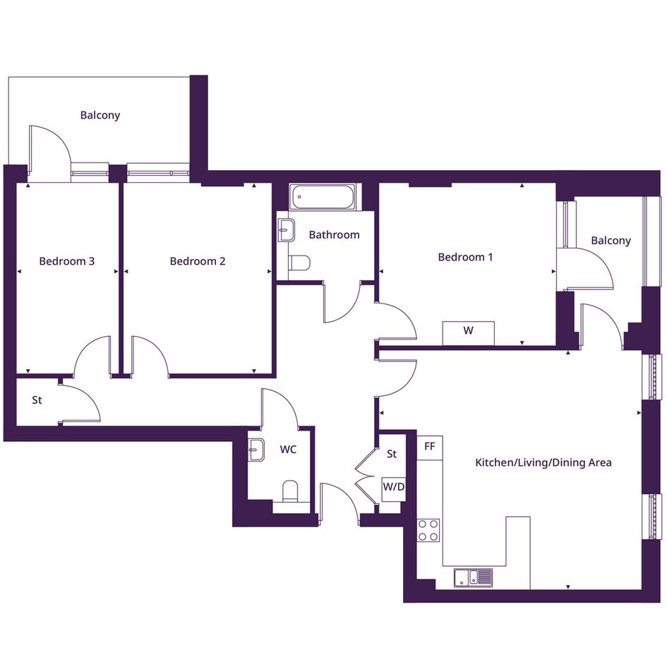 The open plan kitchen/ living room has access out to the private balcony - perfect for socialising with friends and family.